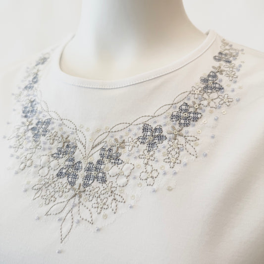 【OUTLET】五分袖 花刺しゅうカットソー MIMO MODA 2542500