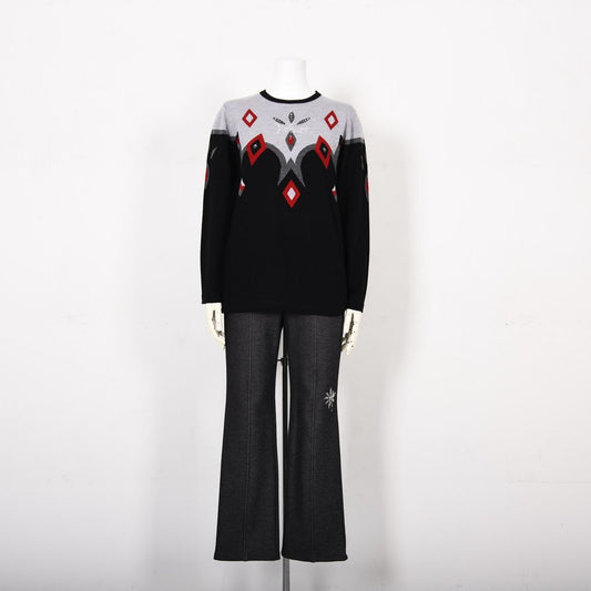 【吸湿発熱】サクラウォーム起毛ベア天 幾何学 Vネックカットソー VALENZA 5152710