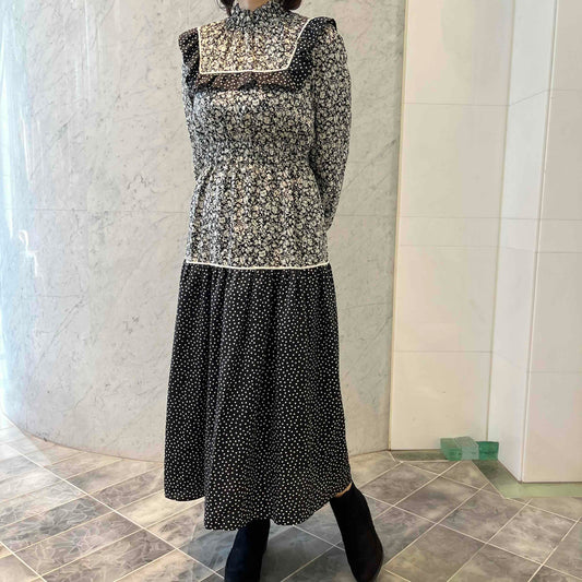【OUTLET】シルデューサテン花柄モノトーンプリント ワンピース Dear Princess 3149000