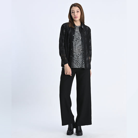 【透け感】【オリジナルプリント】レオパード柄 ブラウス VALENZA 5151604