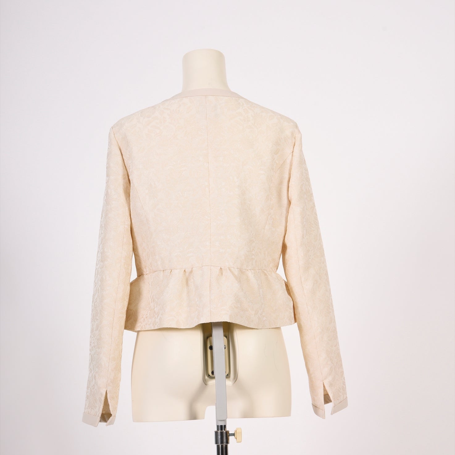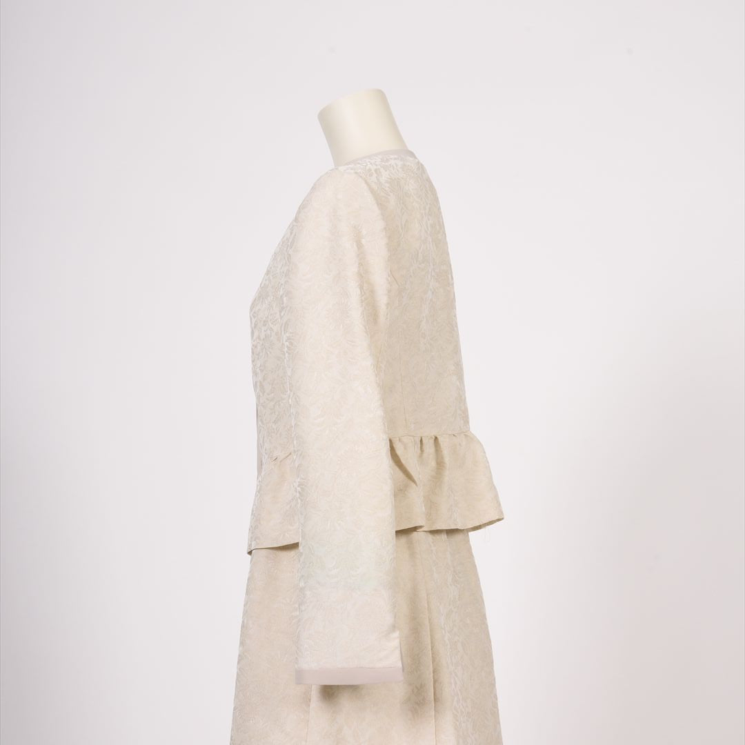ポリエステルでありながらリネンのようにナチュラルな表情を出した薄手のジャカードです。フラワーやリーフを繊細に表現し、ボタニカルな雰囲気に仕上げました。(30dリネンライクJQ)