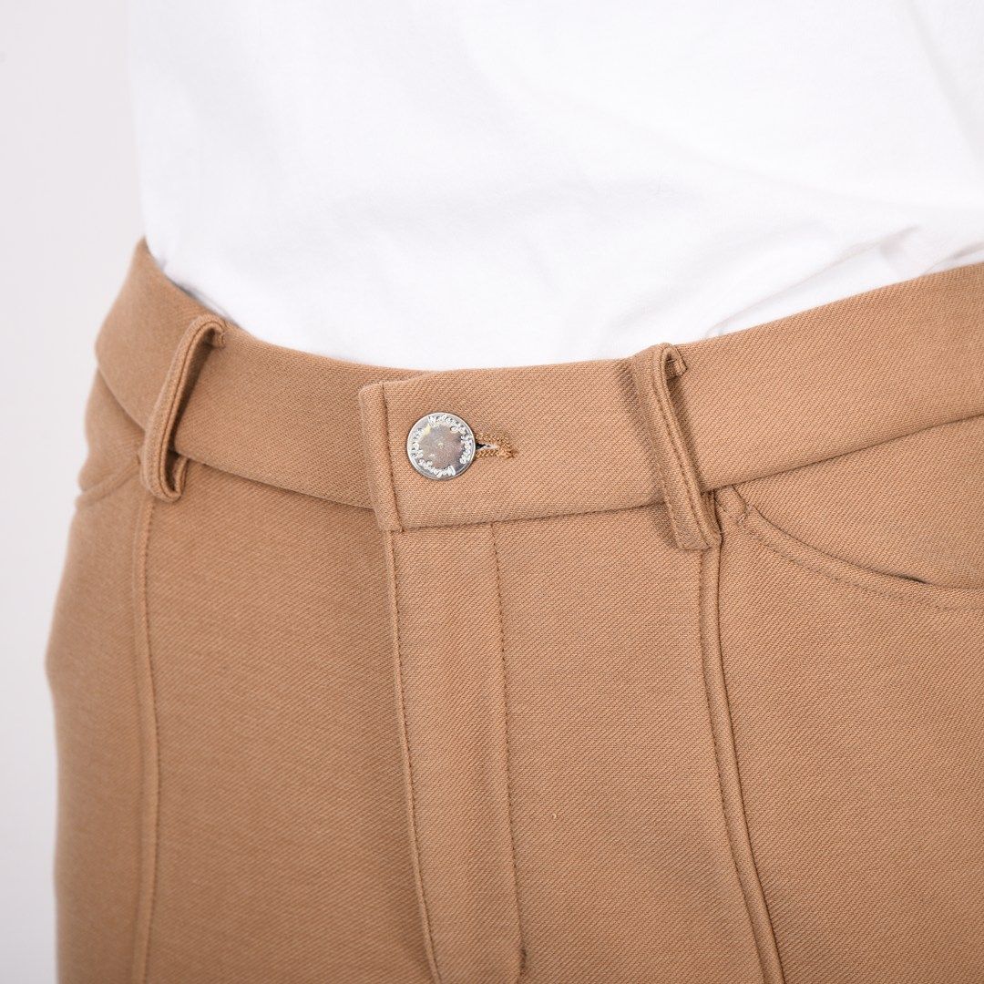 穿くとじんわりあったかくなります。裏起毛のやわらかさも体感できますね。ウエスト後ろがゴムなので前ファスナーでもフィットした着用感でした。ほどよいフィットタイプ。(158cm/40号)