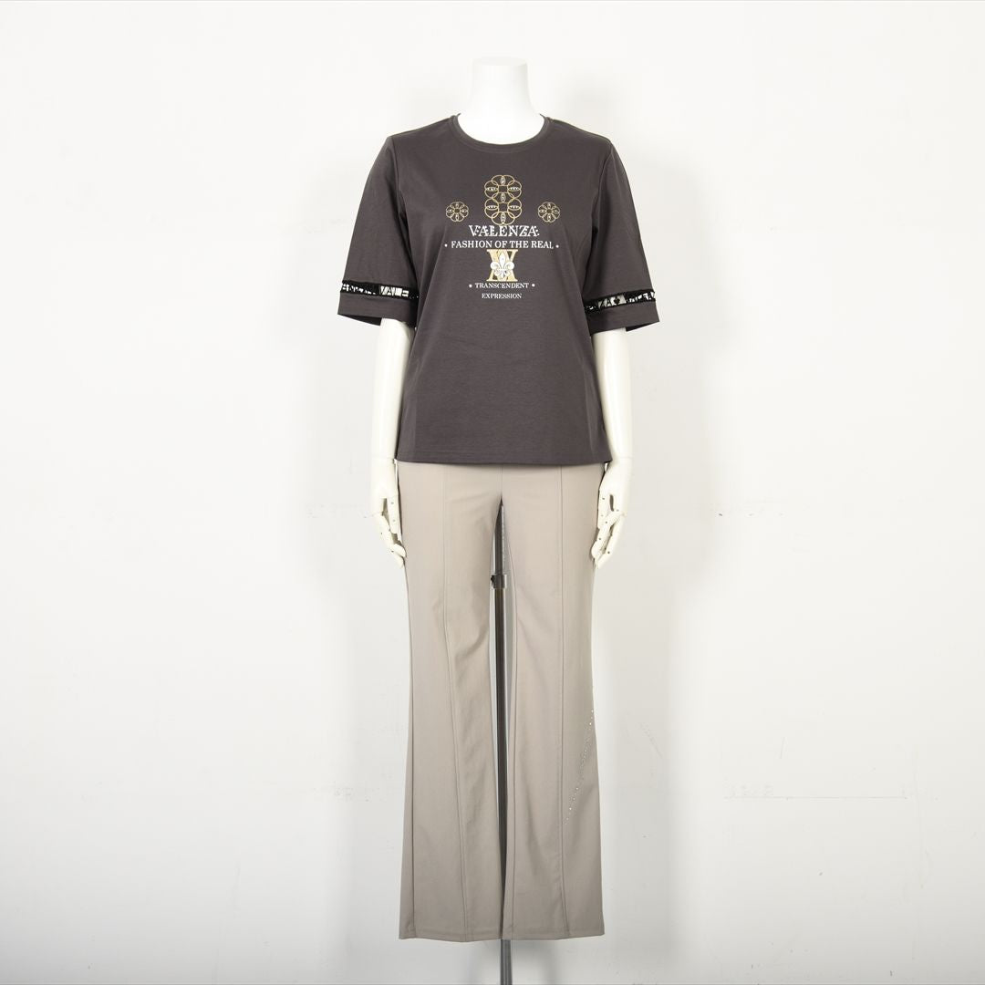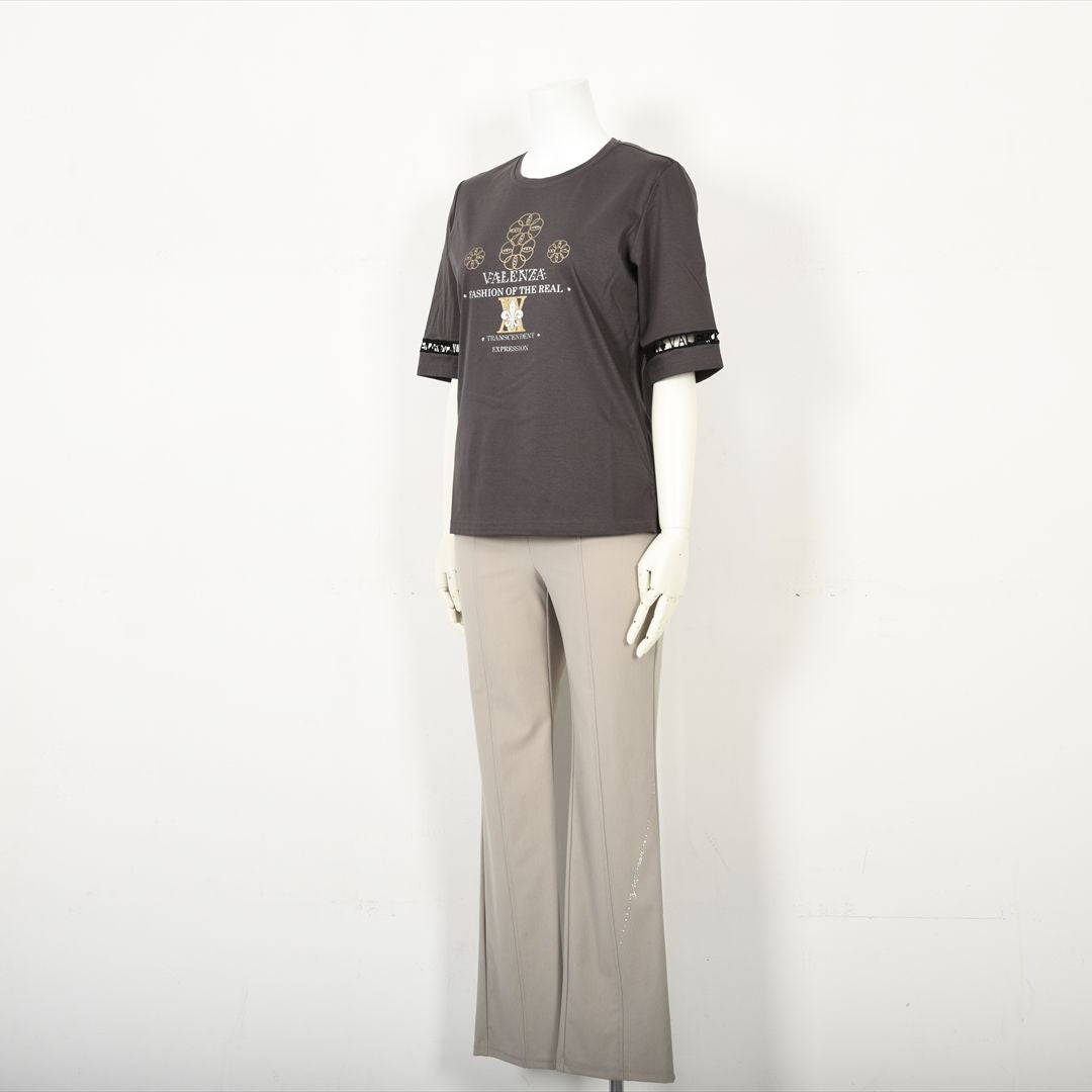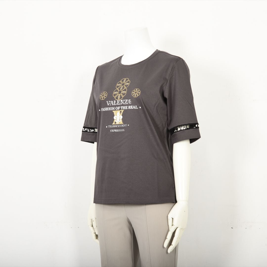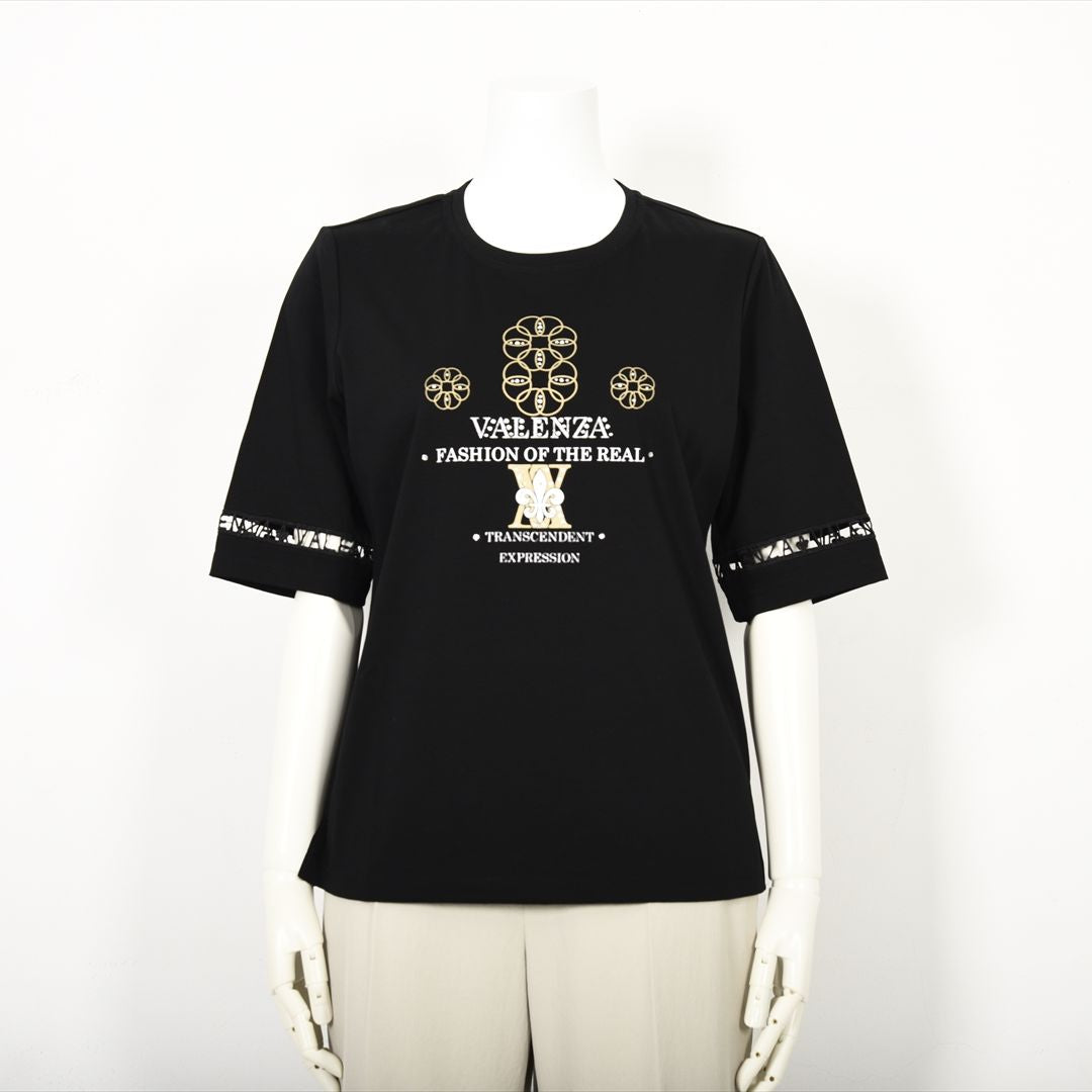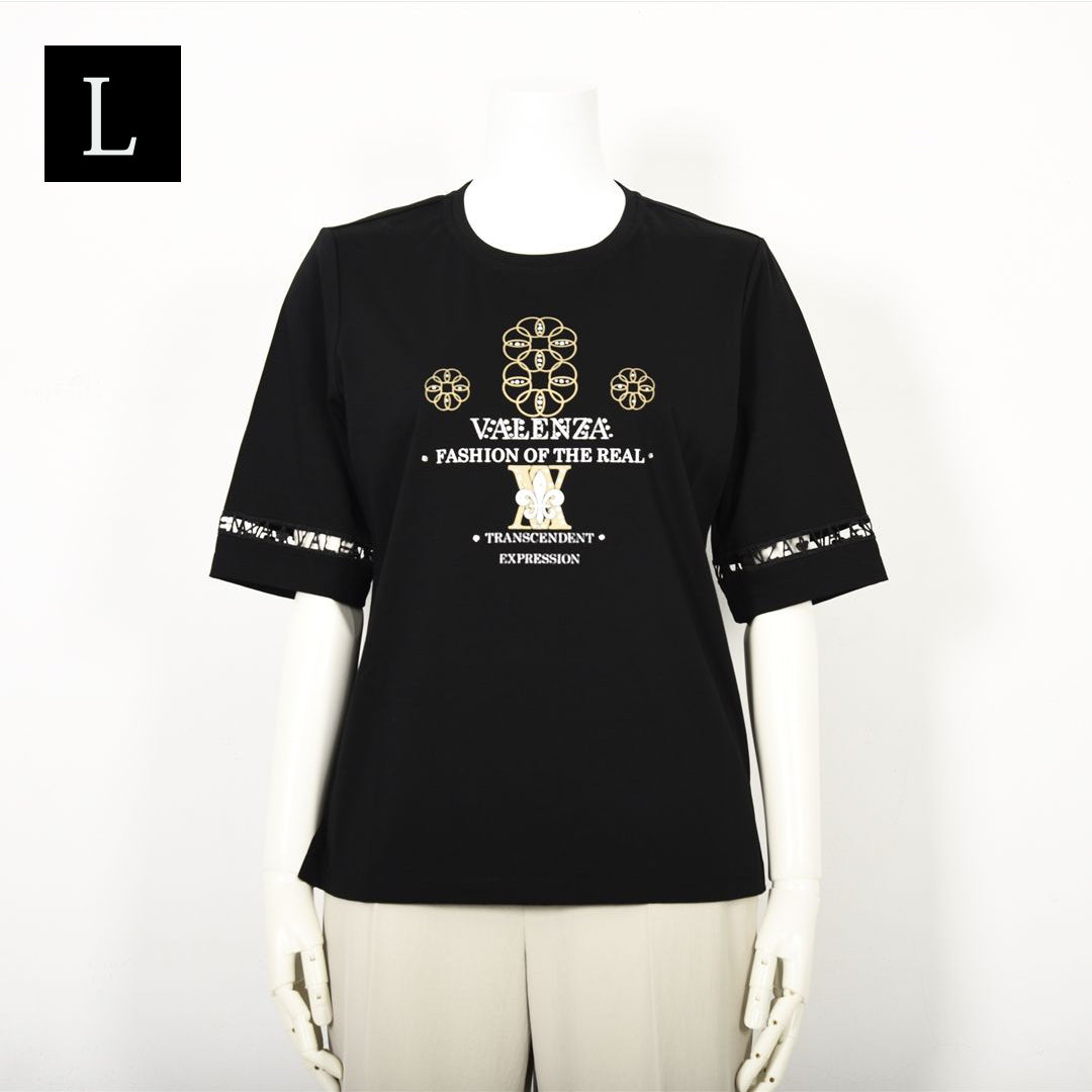 【Lサイズ】【はしごレース】花文様プリント カットソー VALENZA 5552529