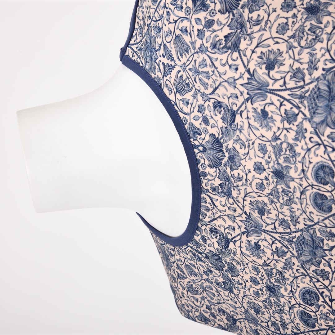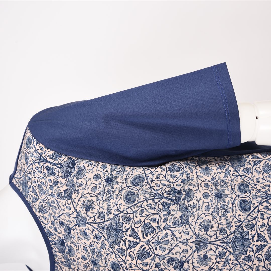 繊細なリバティ柄と無地の配色でコントラストの効いたデザイン。