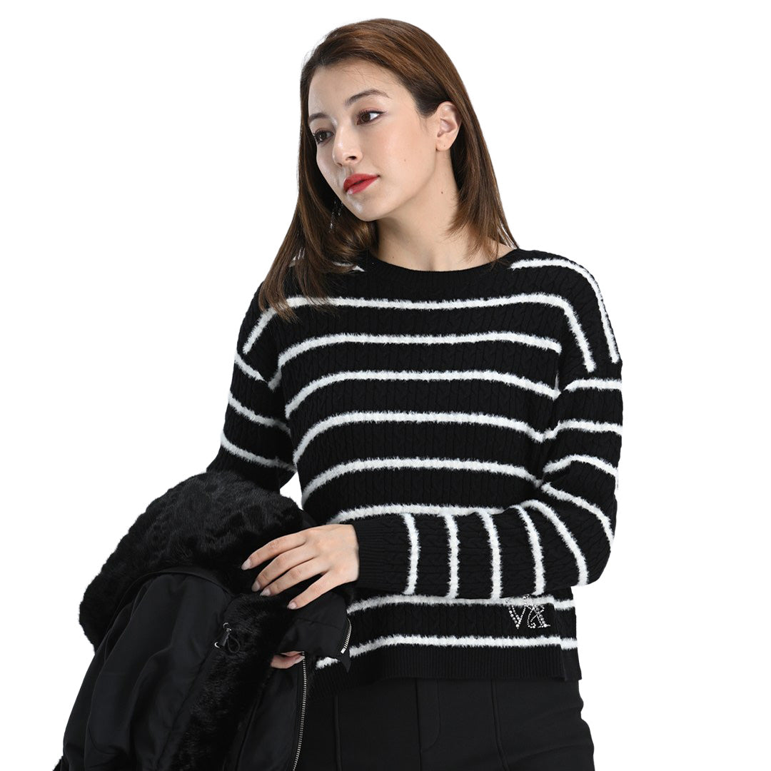 【Lサイズ】ケーブル編み ボーダーニット VALENZA 5553707