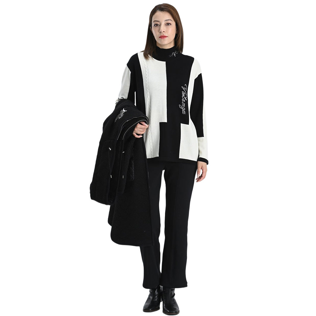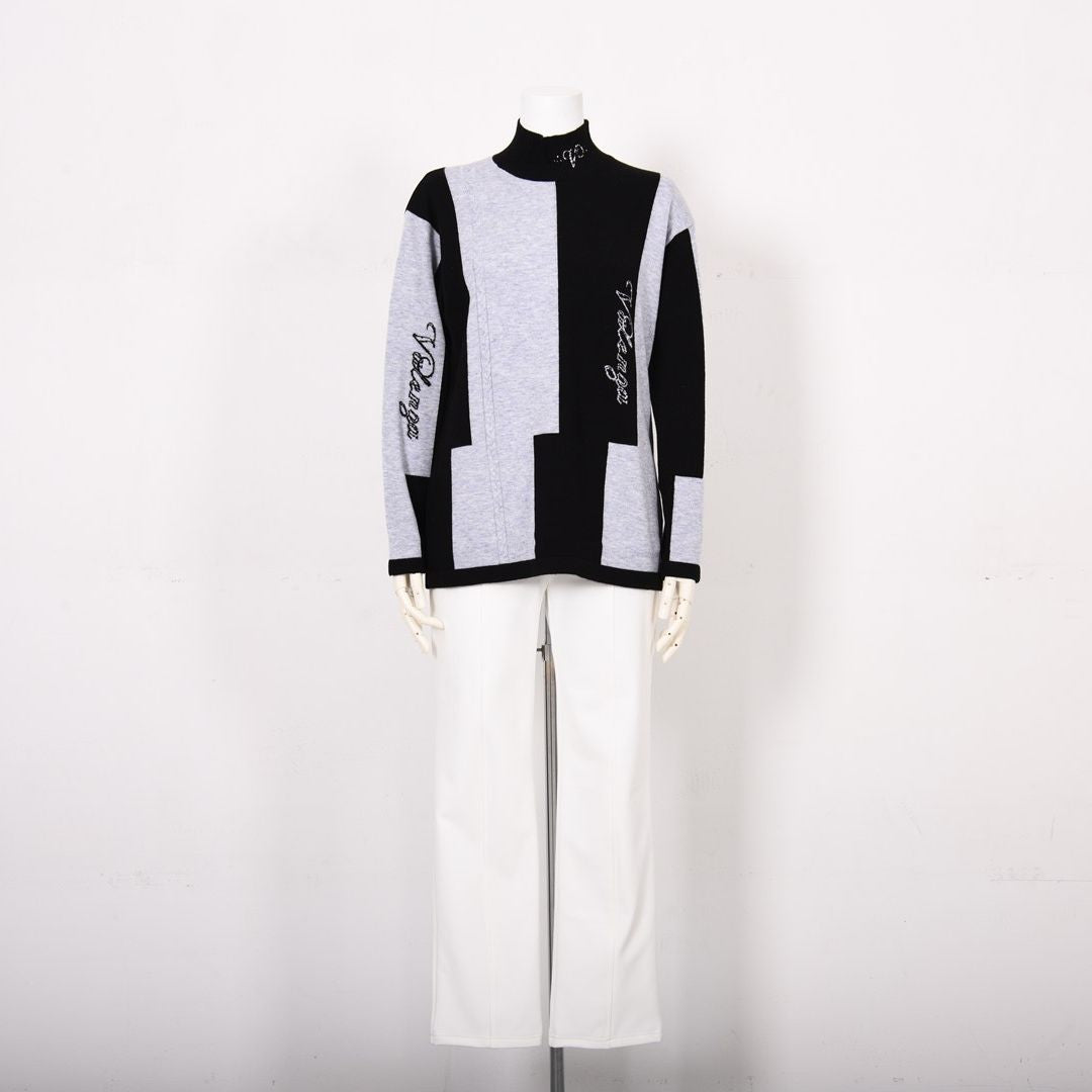 【Lサイズ】ケーブル編み×縦ロゴ ハイネックニット VALENZA 5553708
