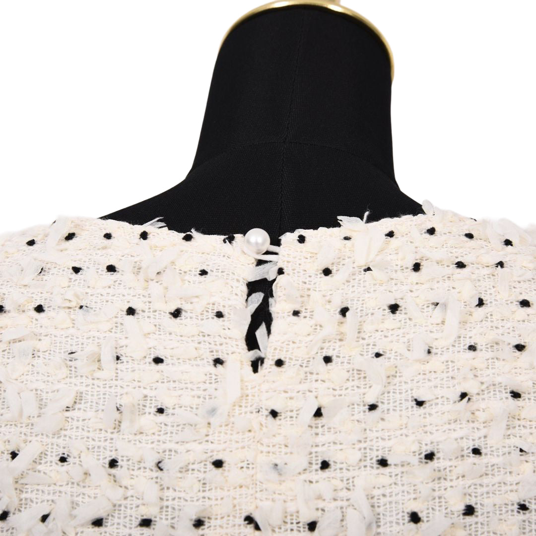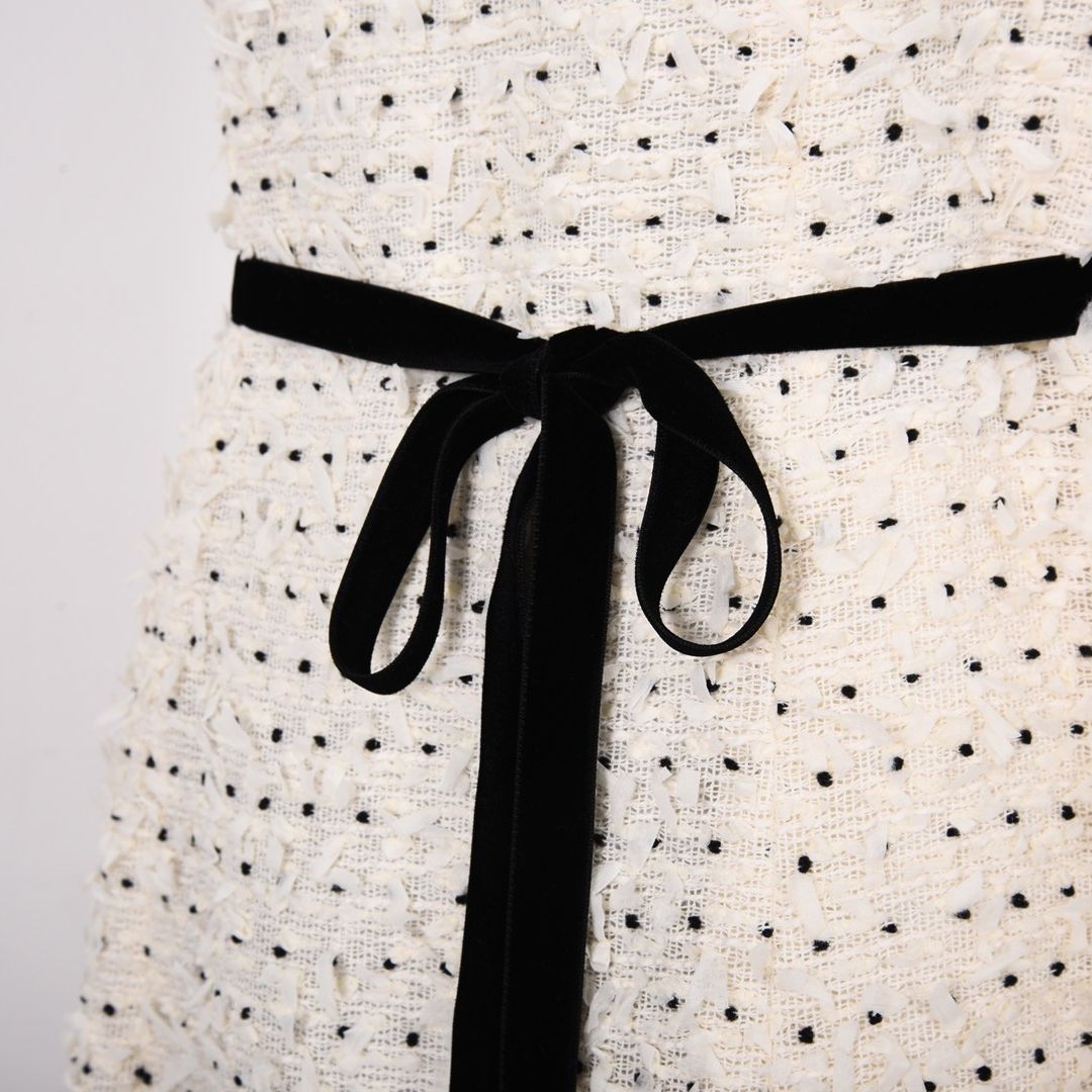 ツイードが高見えするキレイめノースリーブワンピース。