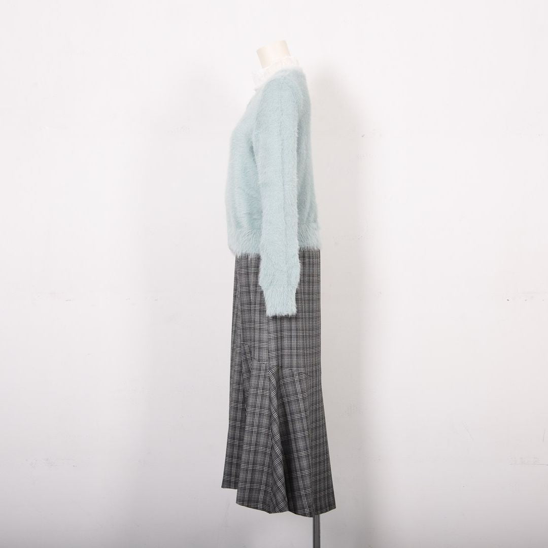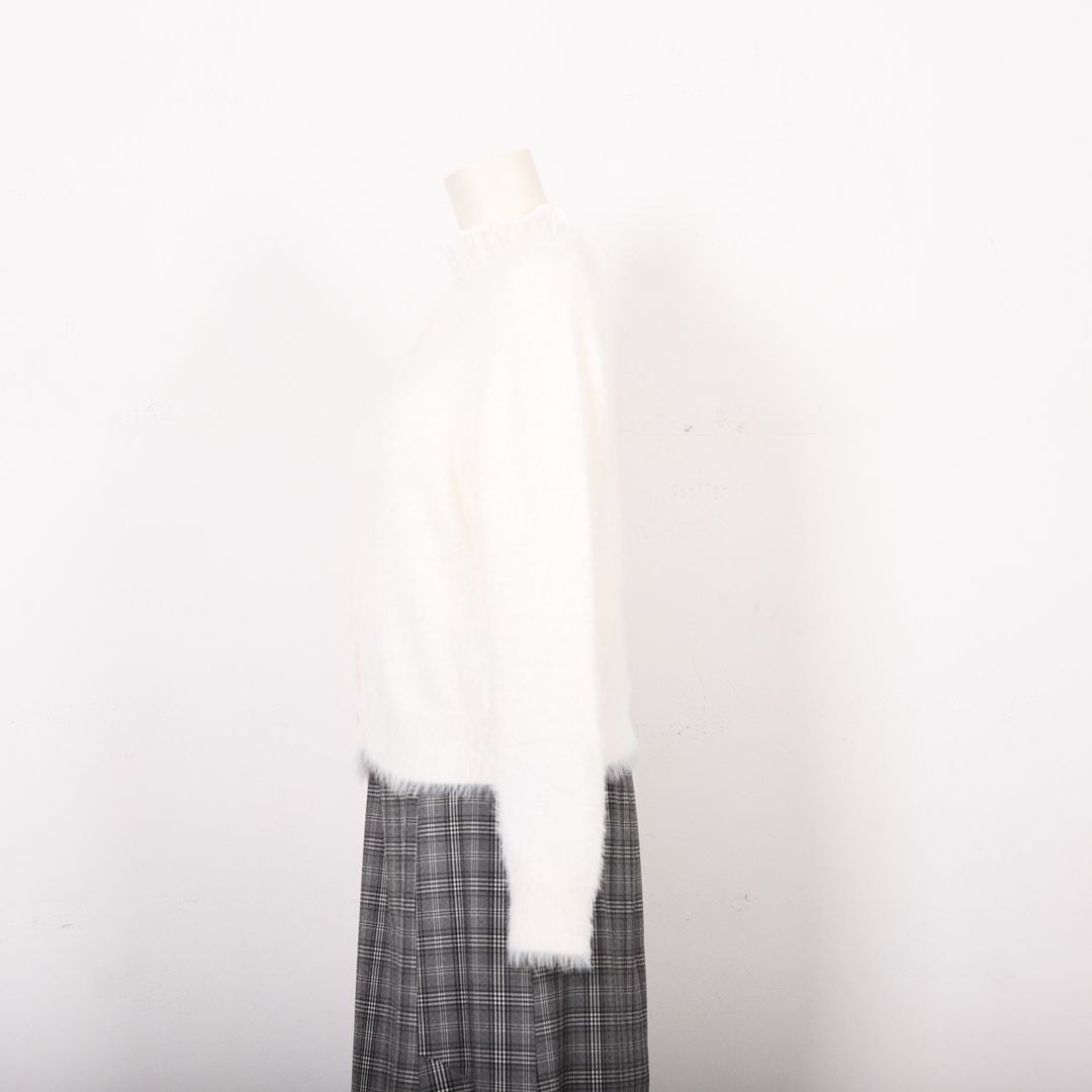 少し詰まったネックと短めの丈感が旬なスタイリングに導きます。