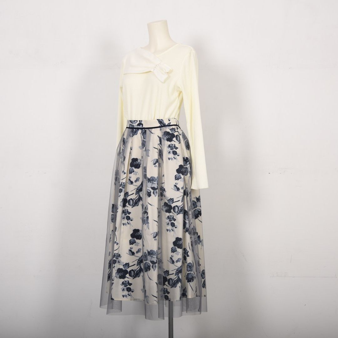 ウエストのリボンテープがアクセントになって、より洗練された華やかさを表現。