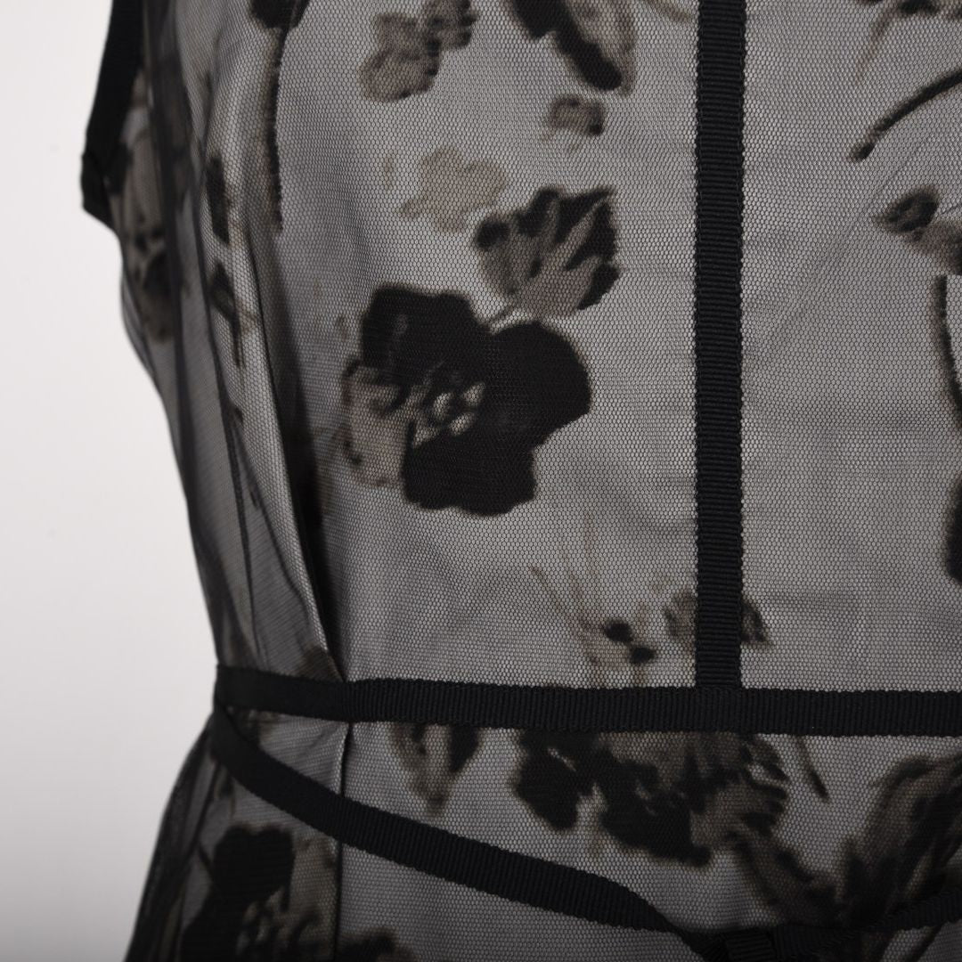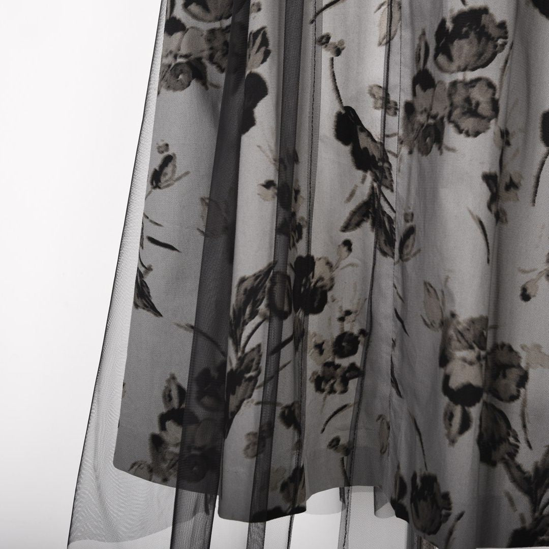 大胆でアートフルな花柄プリントが目を引くワンピース。