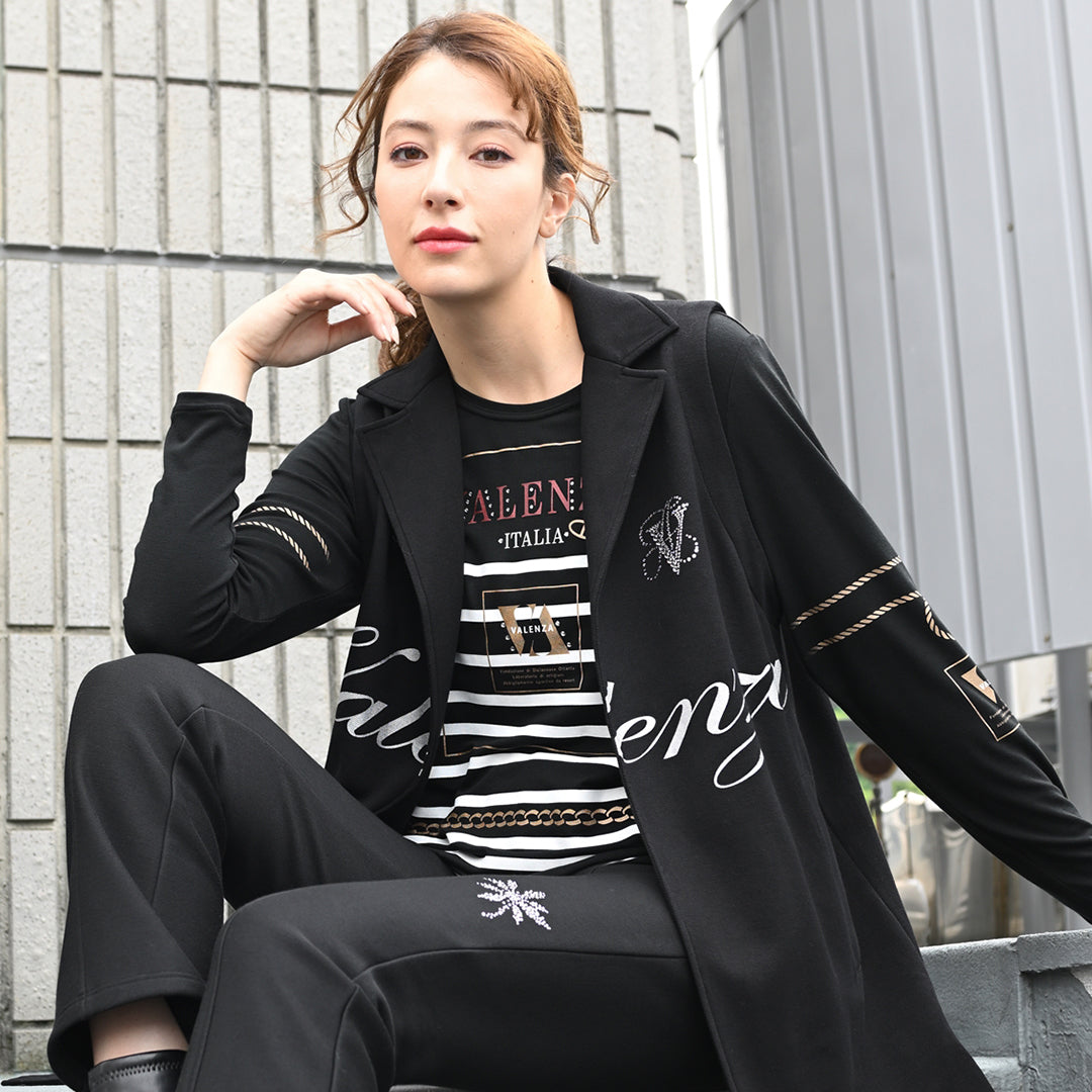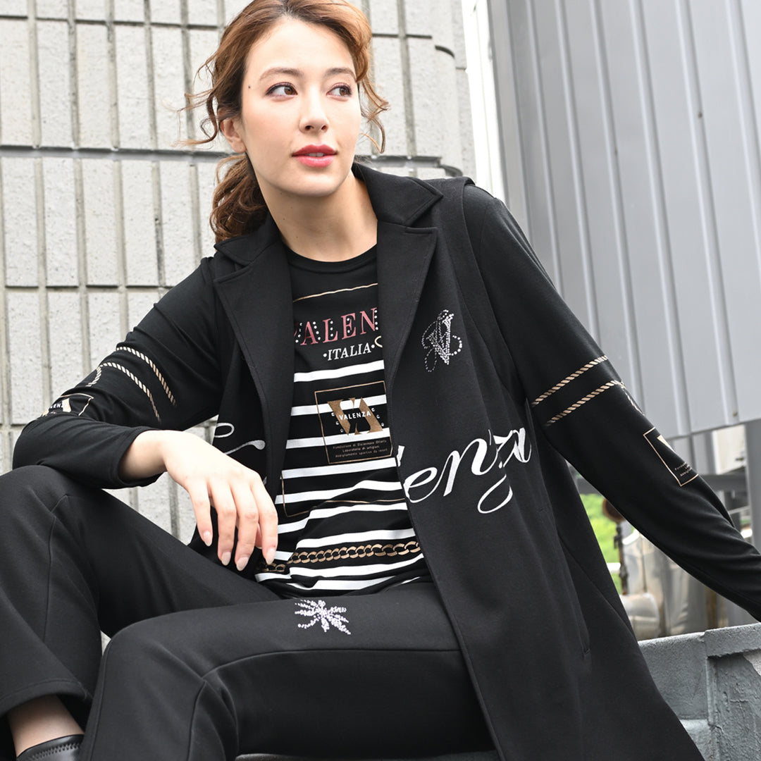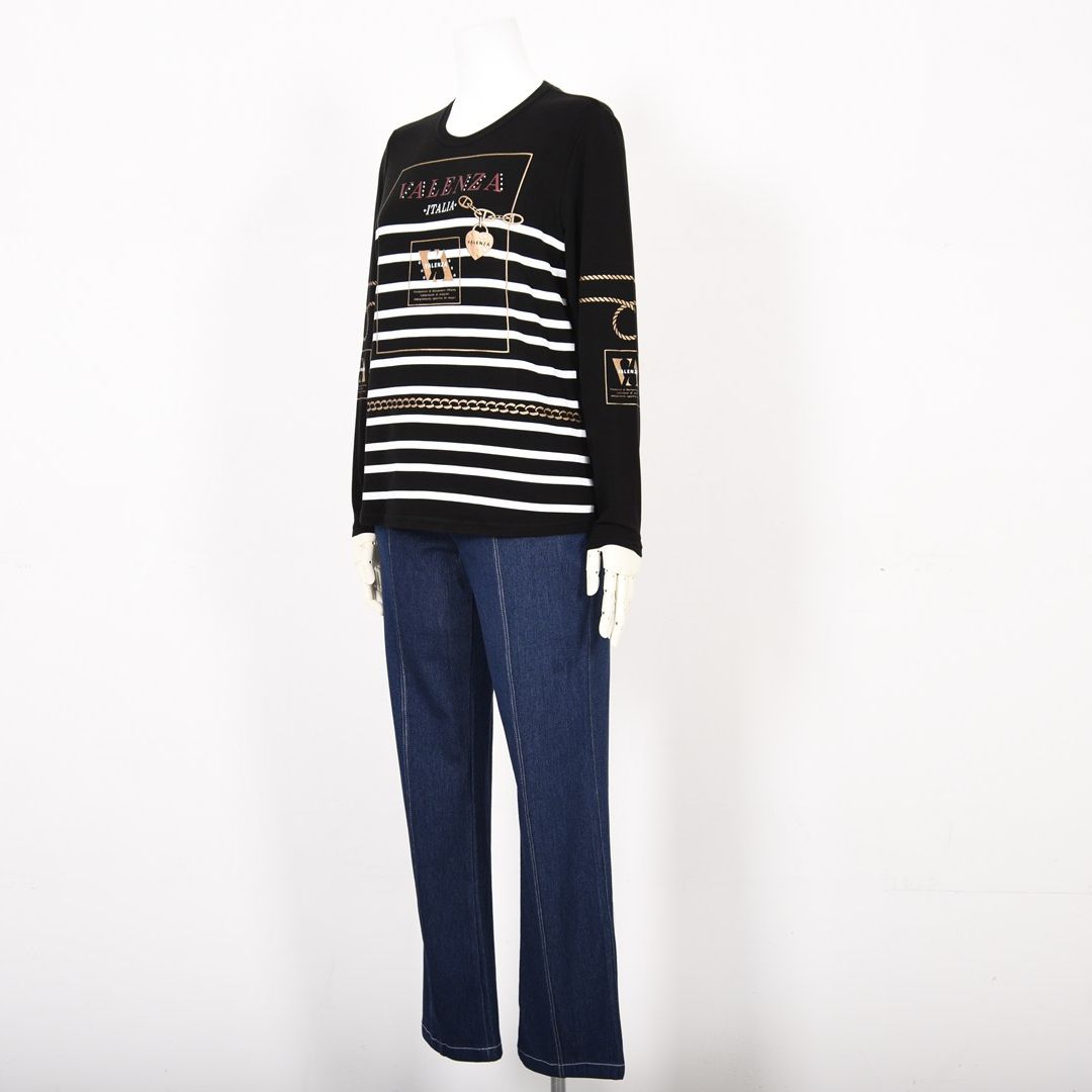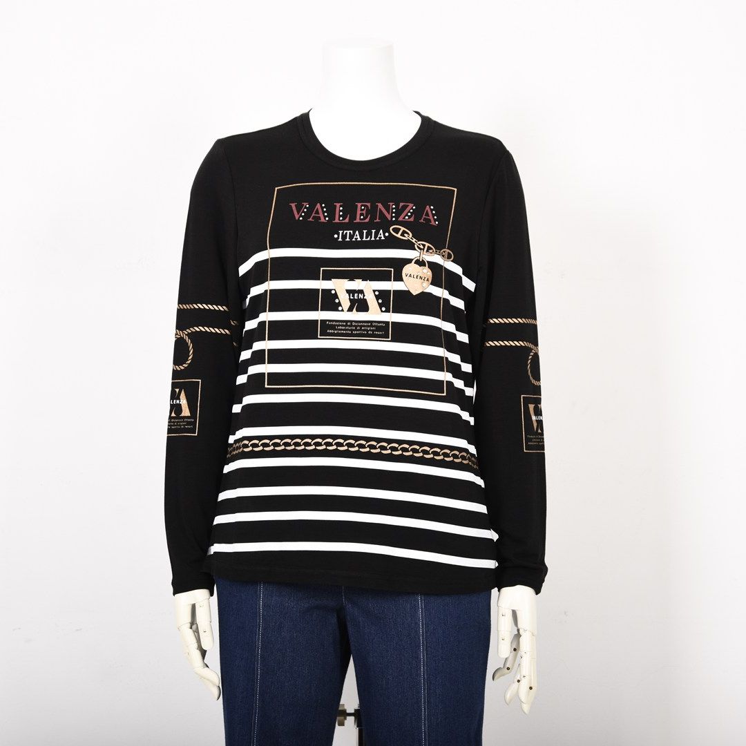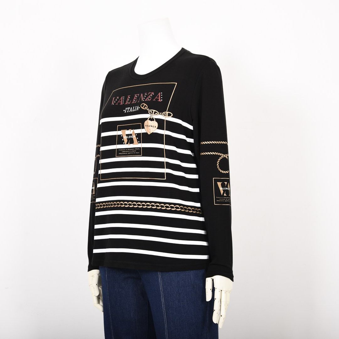 【保温】【吸湿発熱】フロントモチーフ×ボーダー カットソー VALENZA 5152702