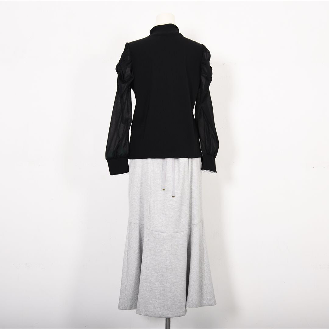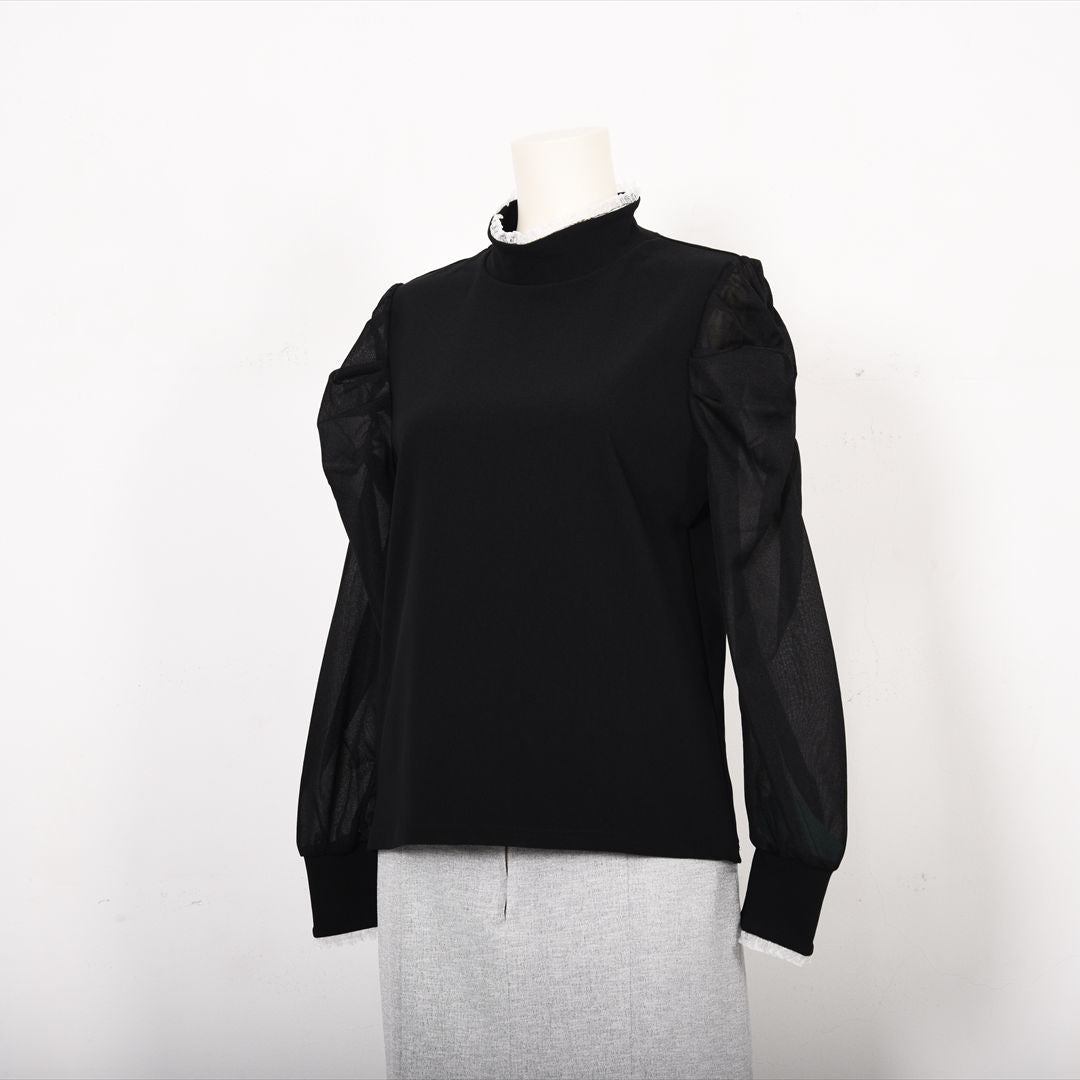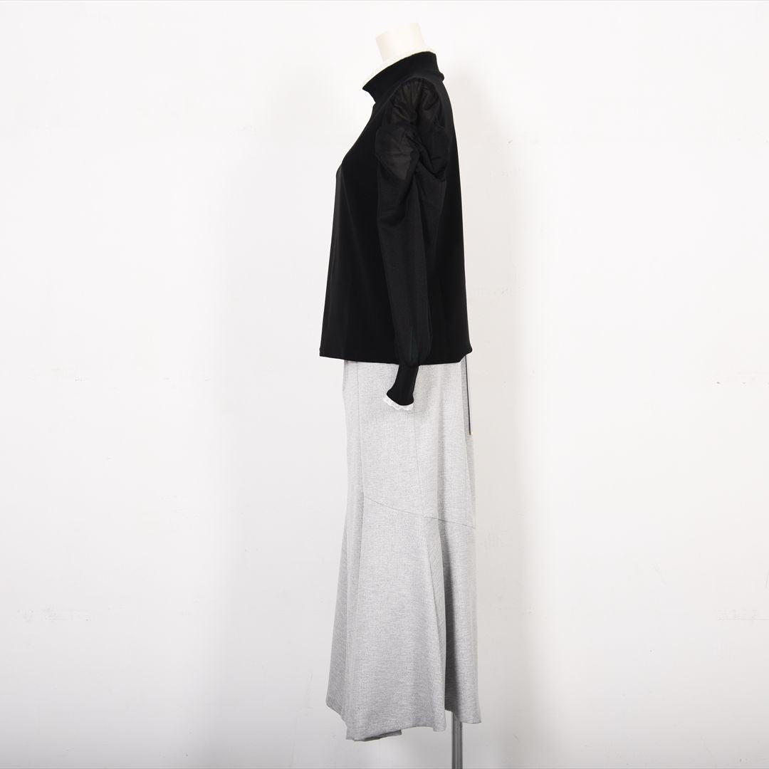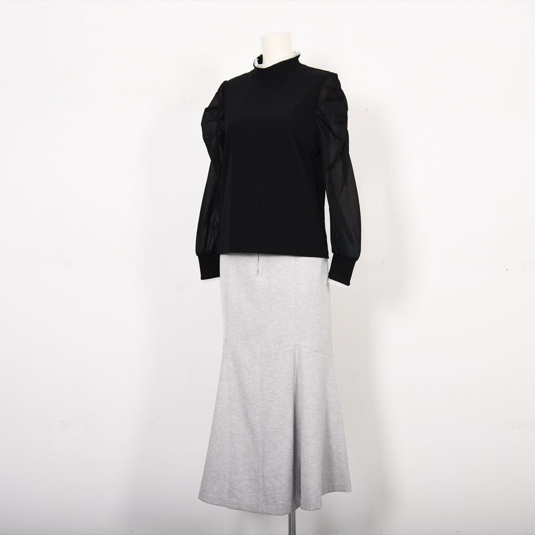 シアー素材で切り替えた袖コンシャスカットソー。
