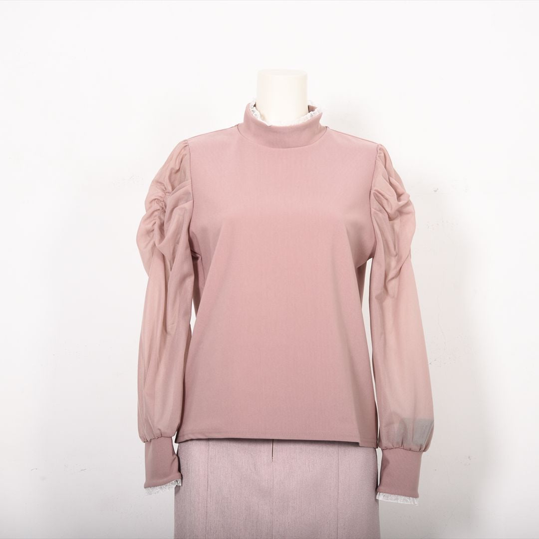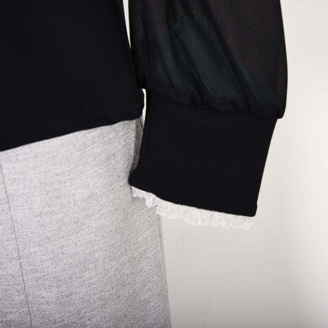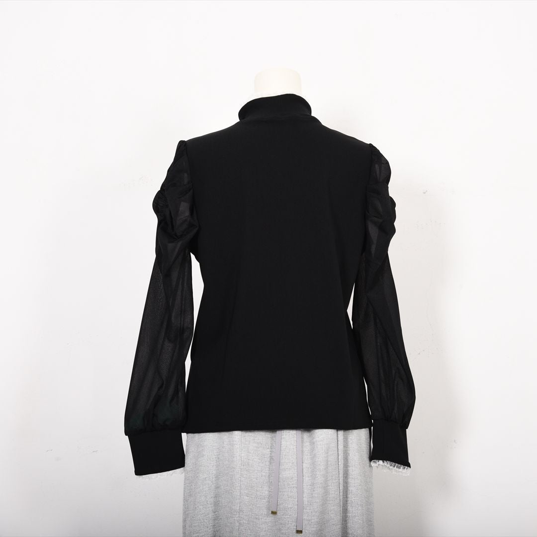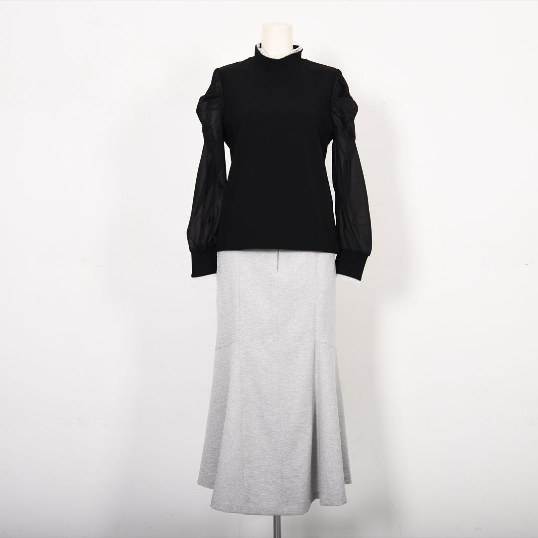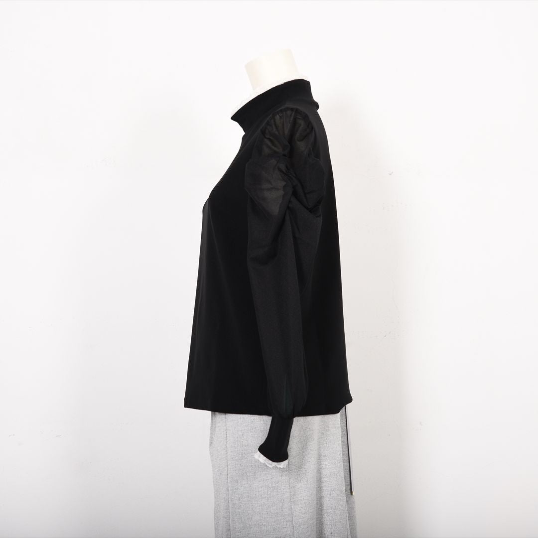 シアー素材で切り替えた袖コンシャスカットソー。