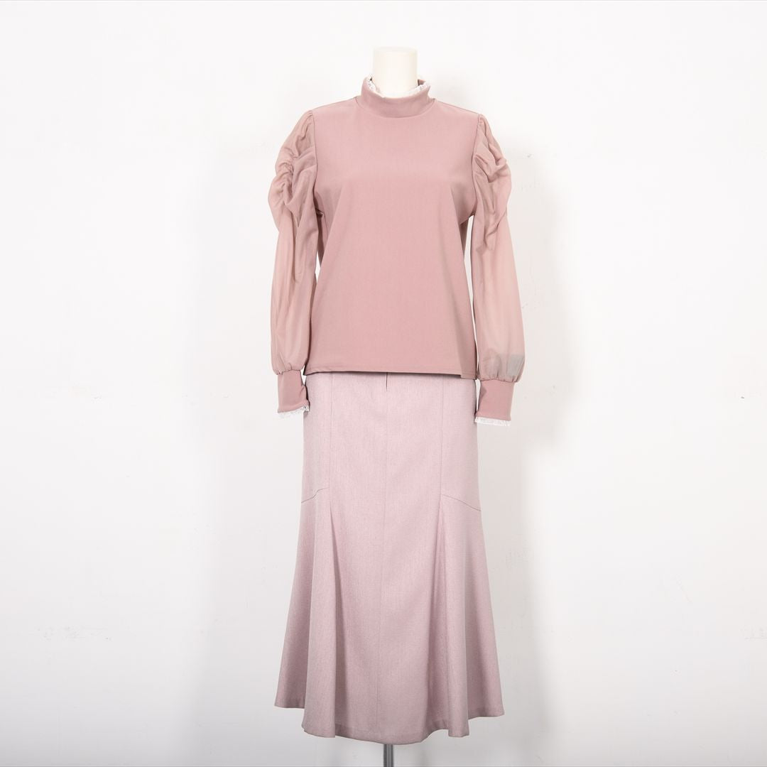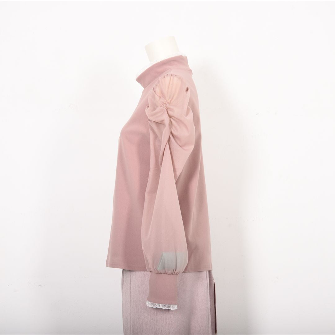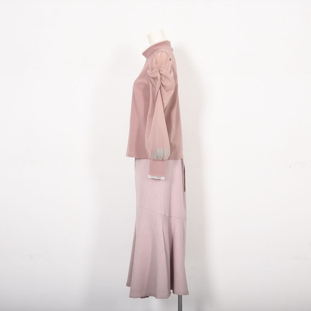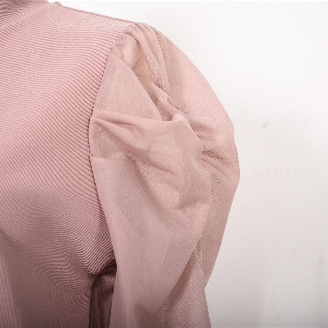 シアー素材で切り替えた袖コンシャスカットソー。