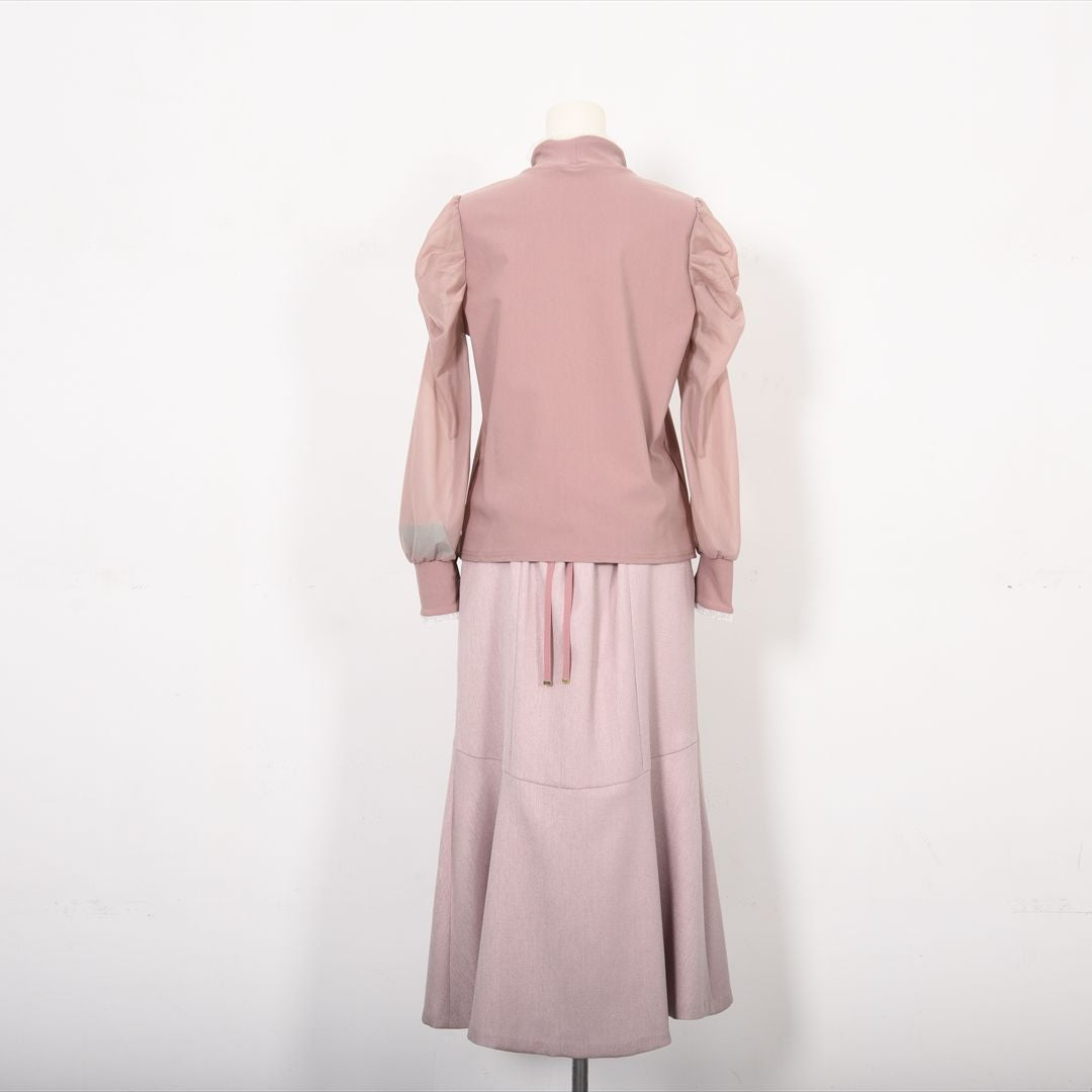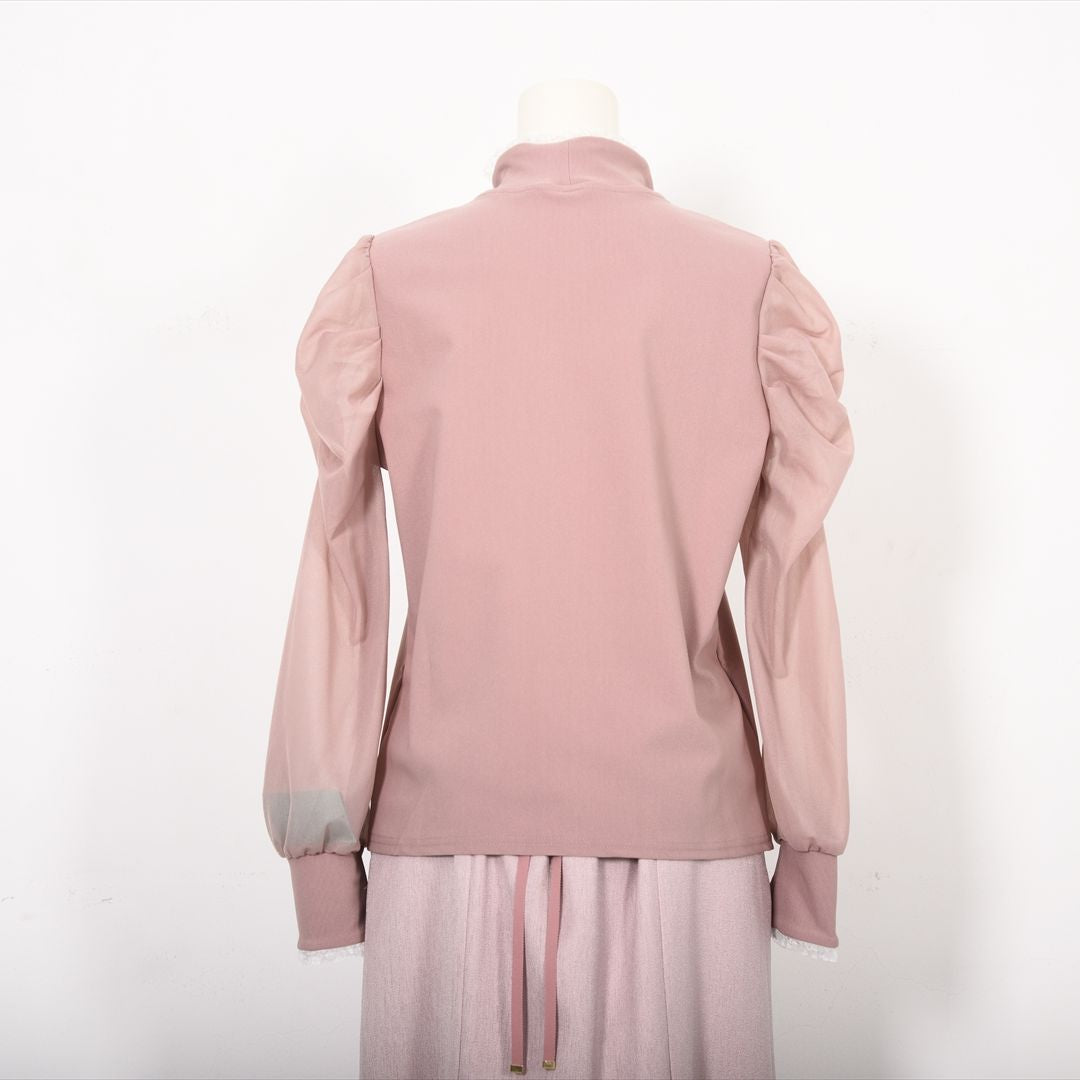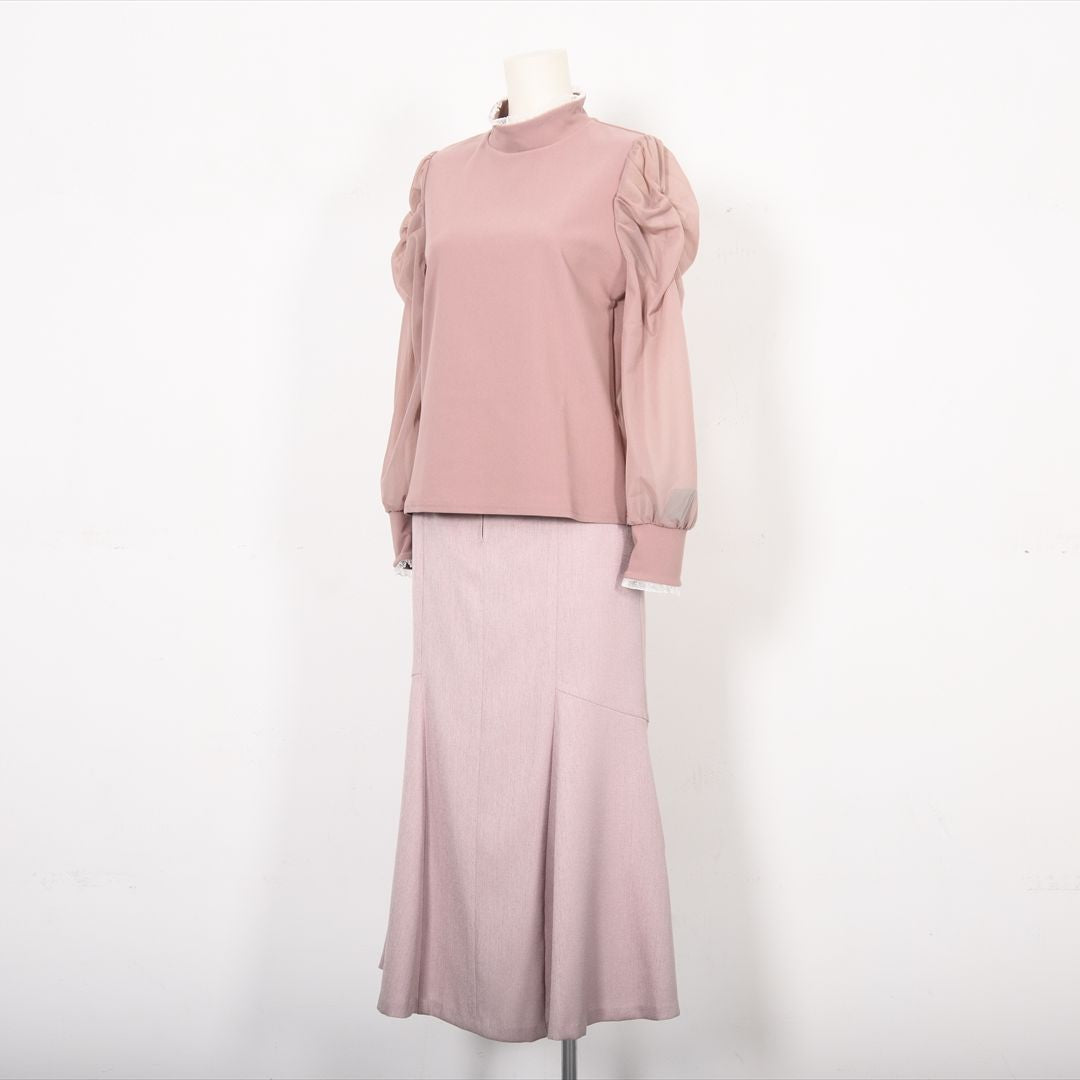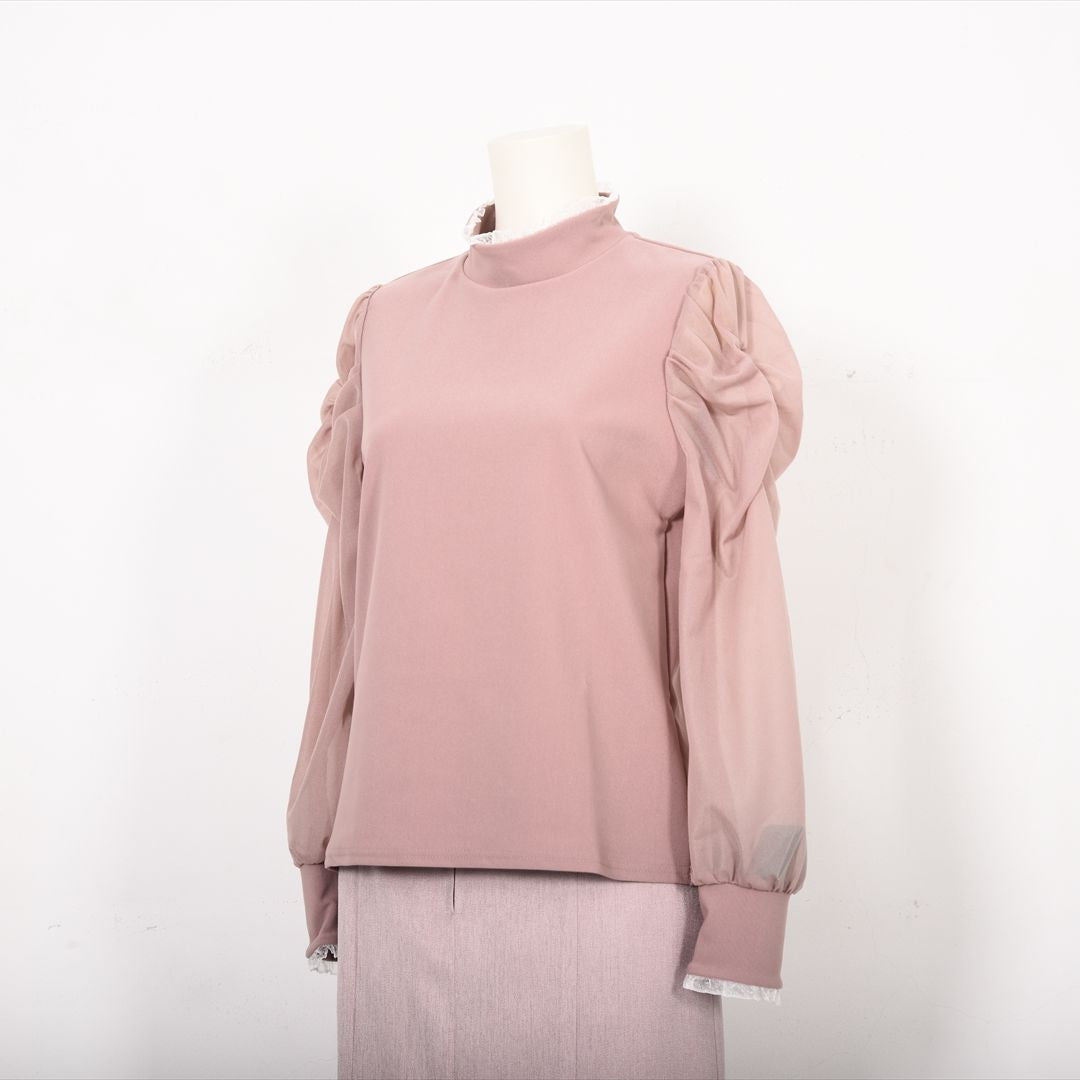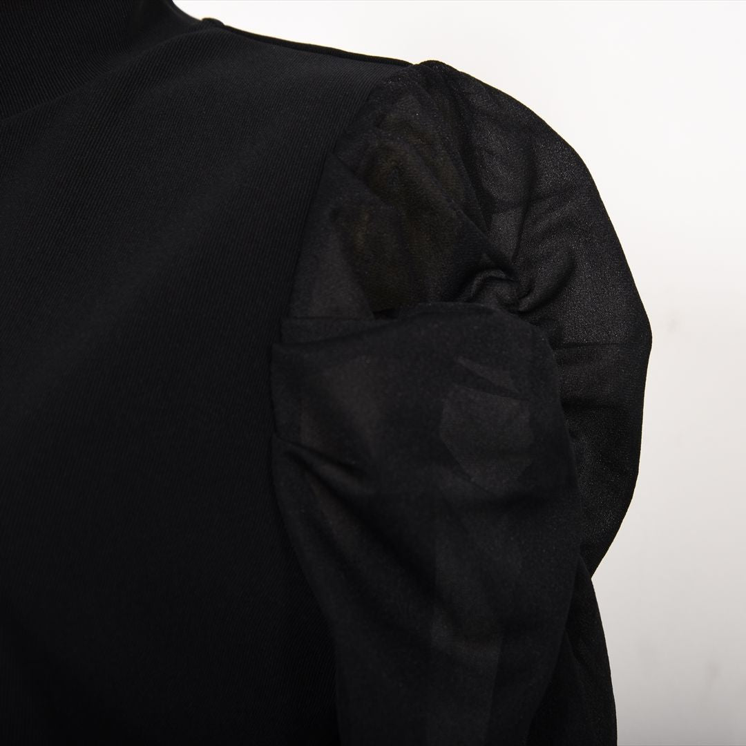 シアー素材で切り替えた袖コンシャスカットソー。