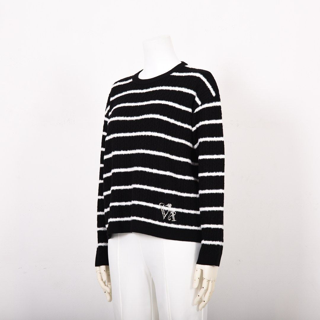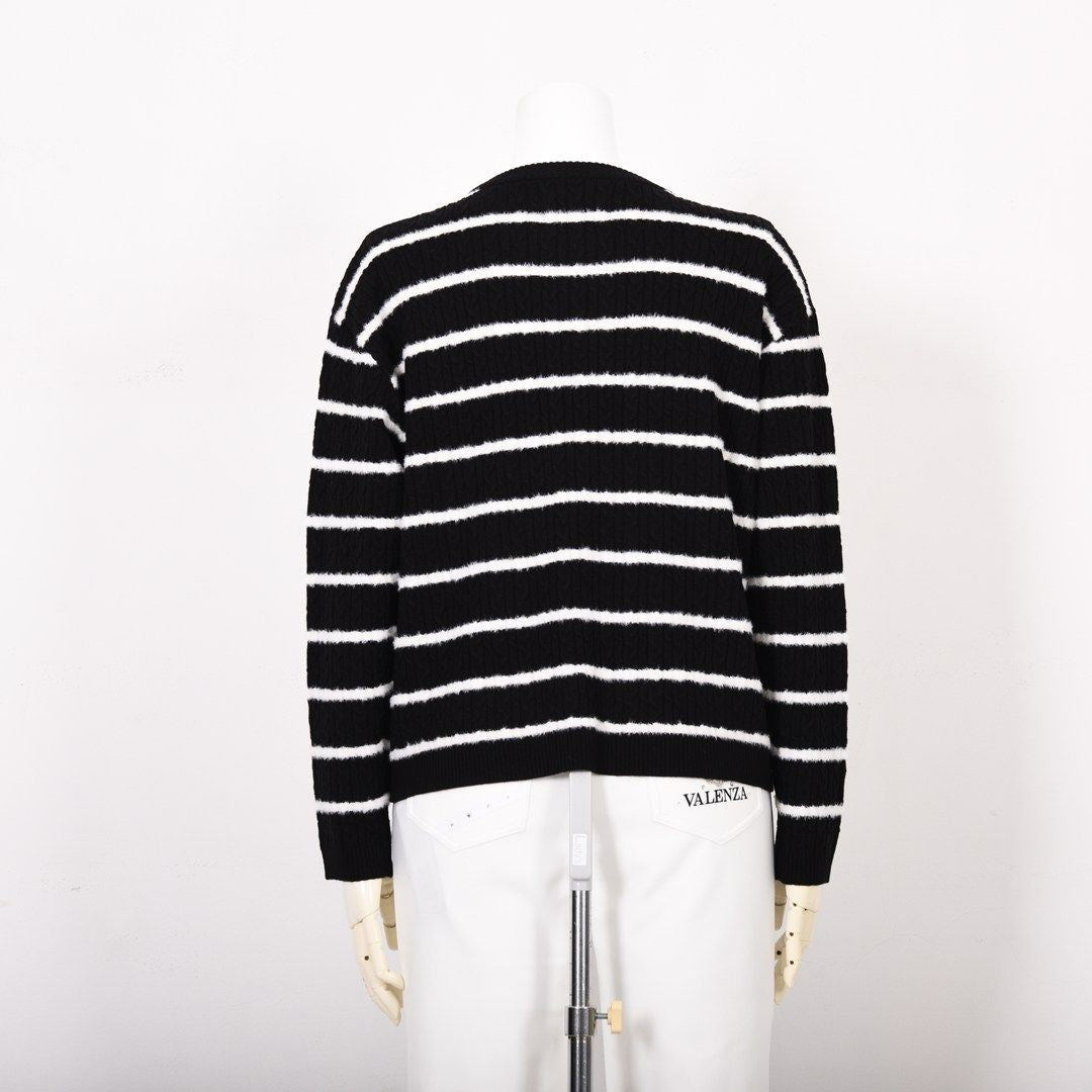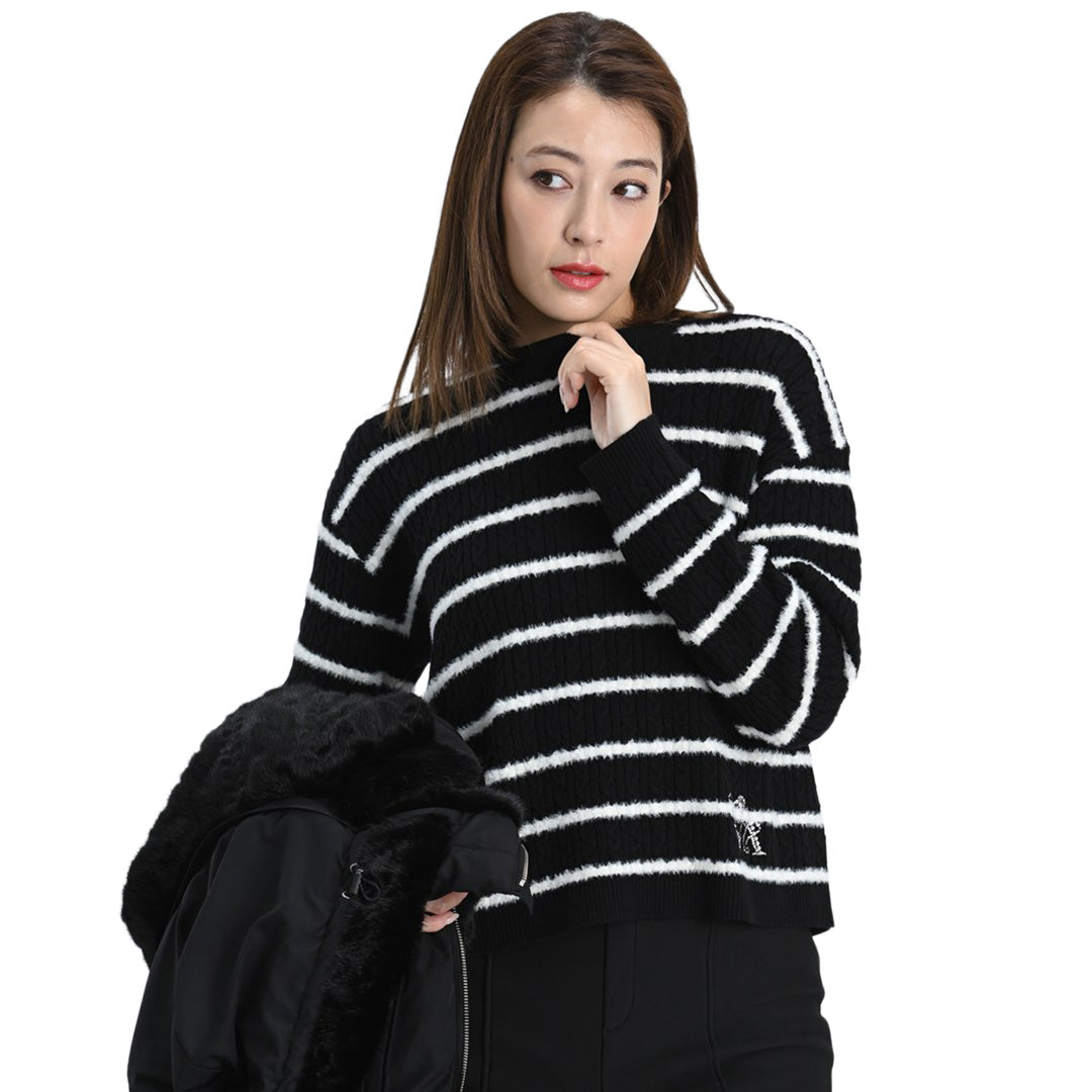 クラシックなケーブル編みのデザインにボーダー柄を合わせてカジュアル感を演出。