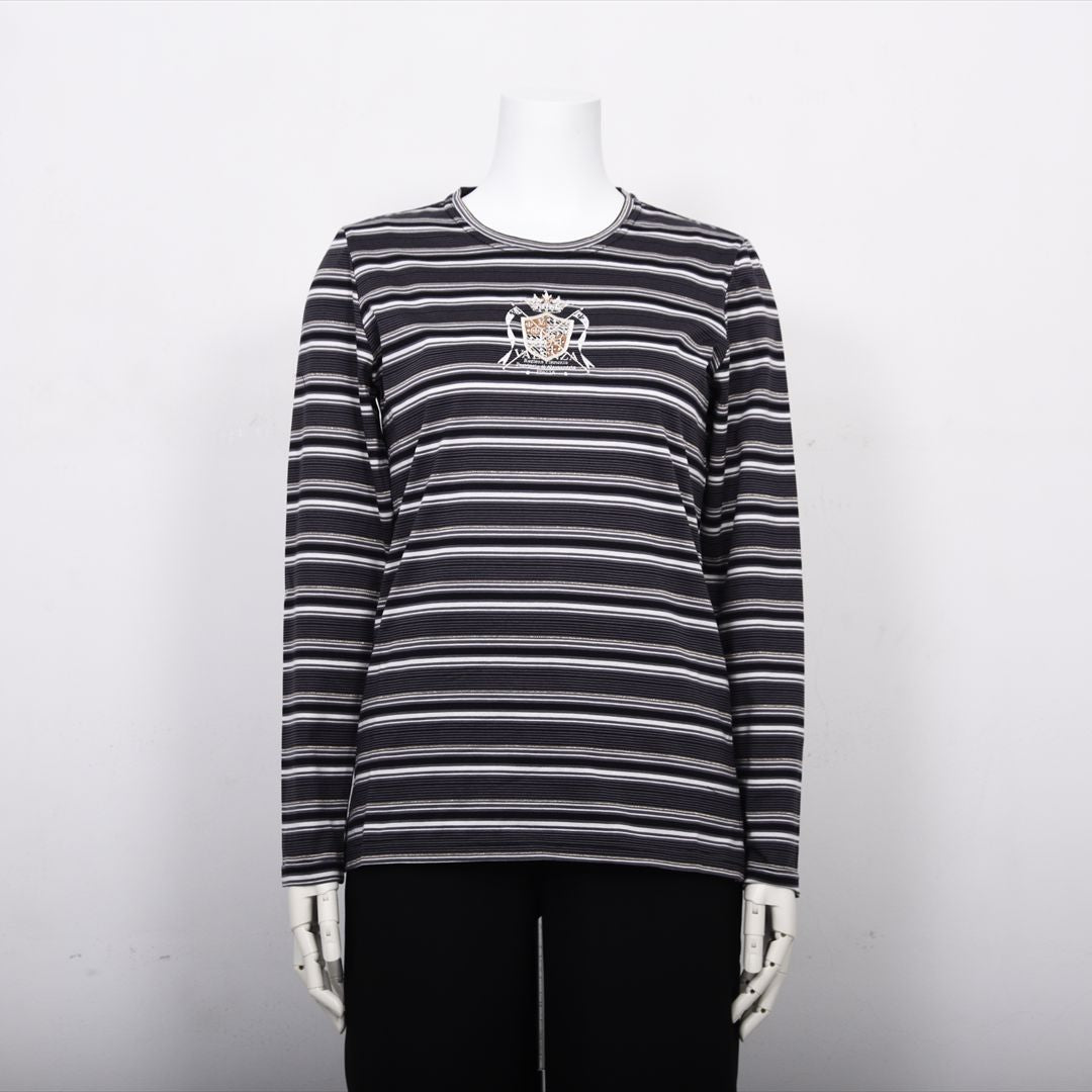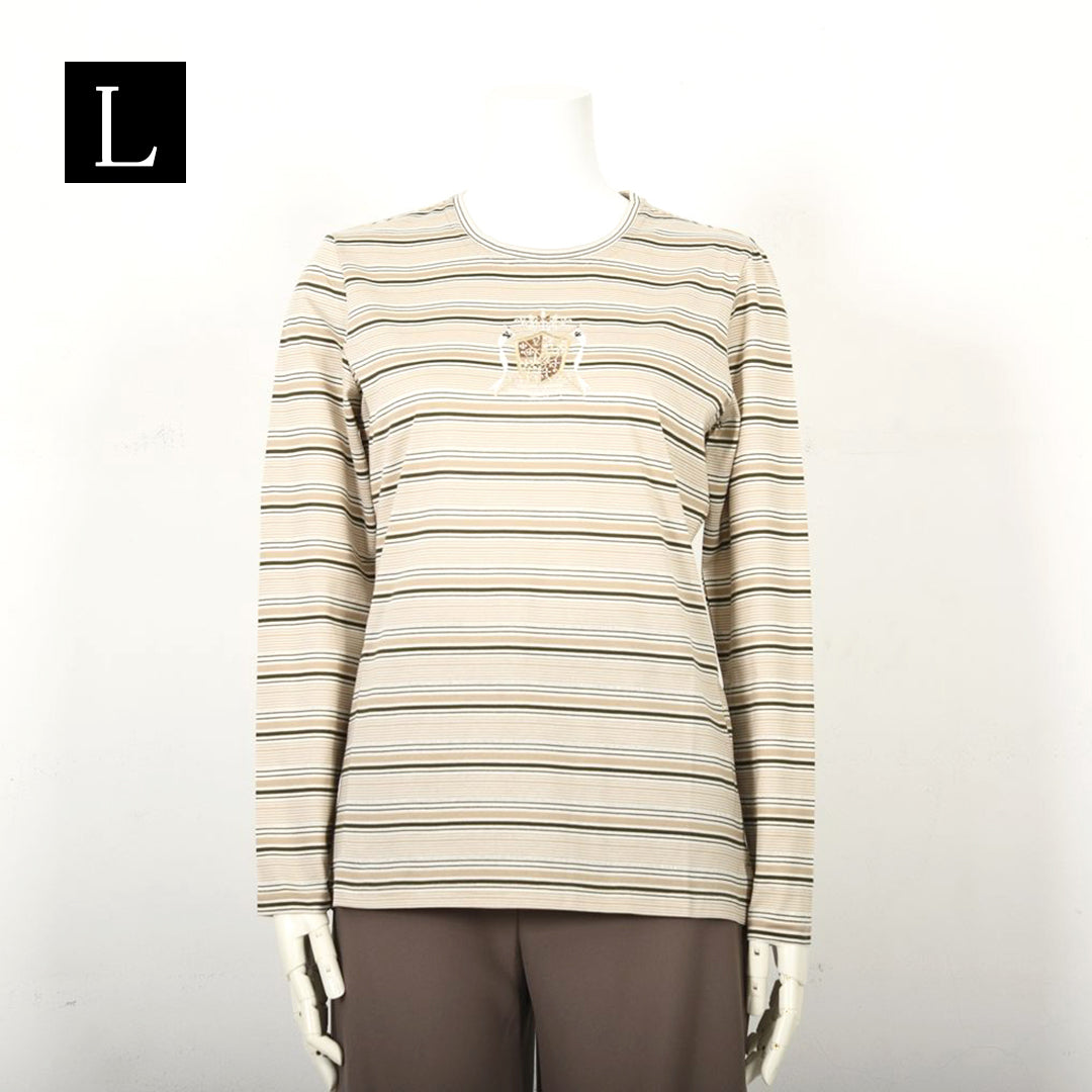 【Lサイズ】ラメ入りマルチボーダー エンブレム刺繍カットソー VALENZA 5552601