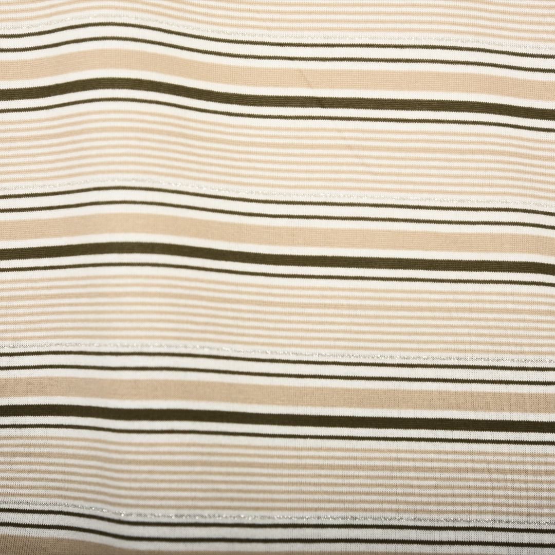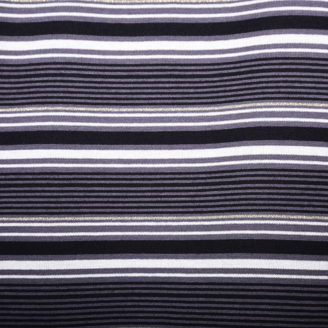 この素材は60/2の糸にシルケットを施しているのでキレイな表情に仕上がっております。またラメを使用しており上品な光沢感も魅力です。(60/2 シルケットラメボーダー)