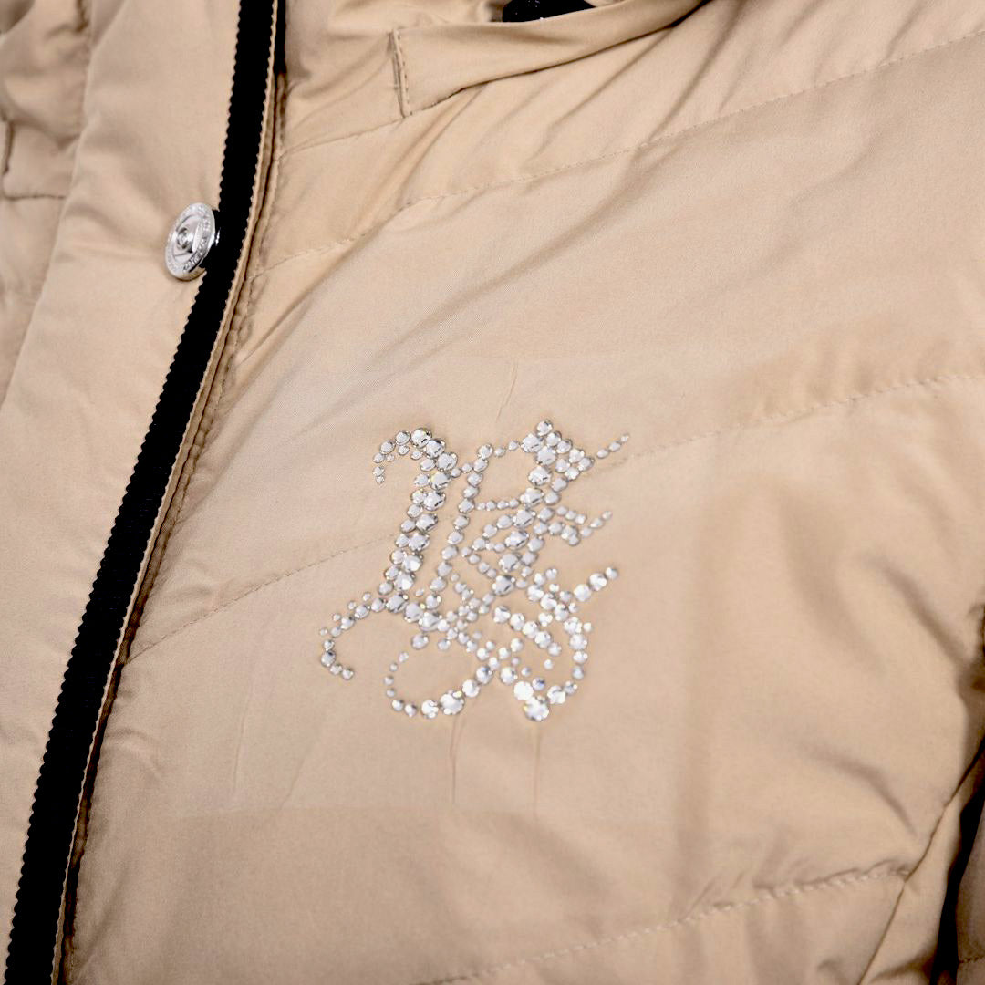 | 素材 | 表地:ポリエステル100%、【詰め物】本体:ダウン90%,フェザー10%、前立て他・中綿:ポリエステル100%、プリント部分:ポリエステル100%、裏地:ポリエステル100%、テープ部分:ポリエステル100% |