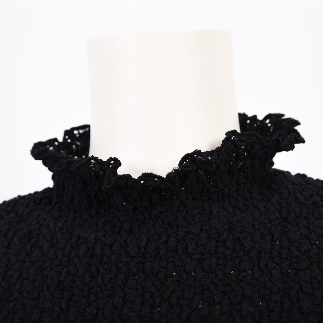 ポコポコとした表面の凹凸が特徴的なレース生地です。全方向に伸縮性があるため動きやすい素材になっています。