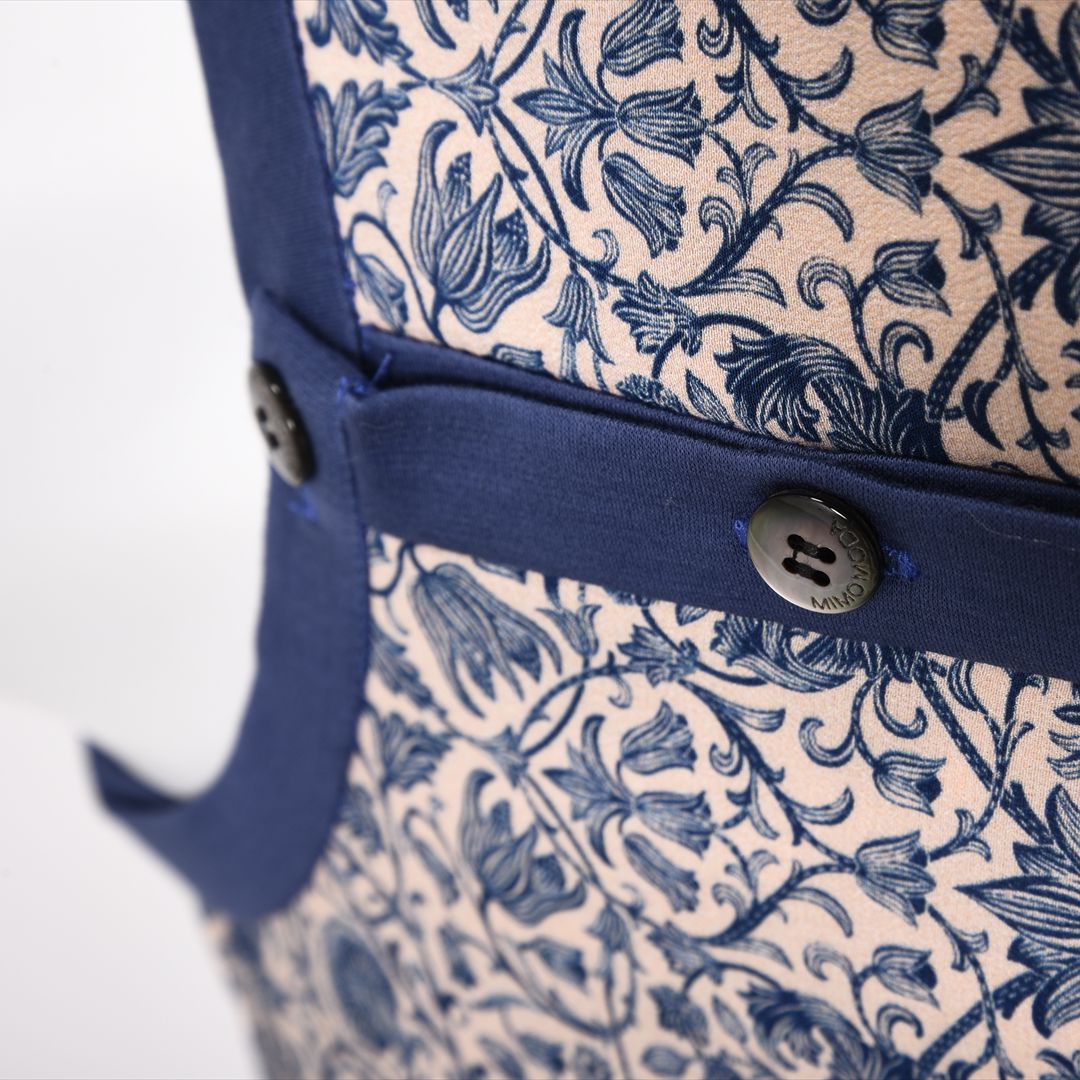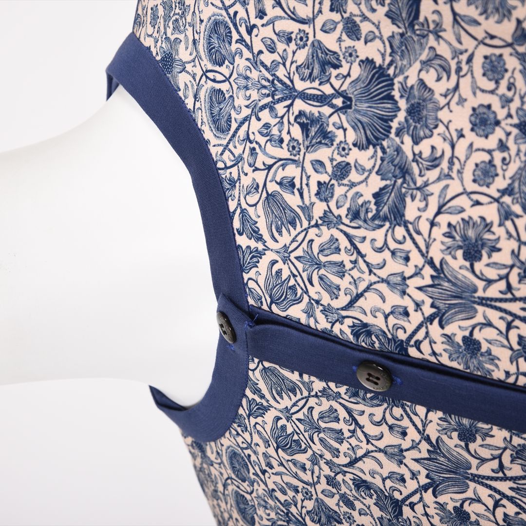 前身頃はリバティの総柄、お袖や後身頃は無地配色で切り替えました。