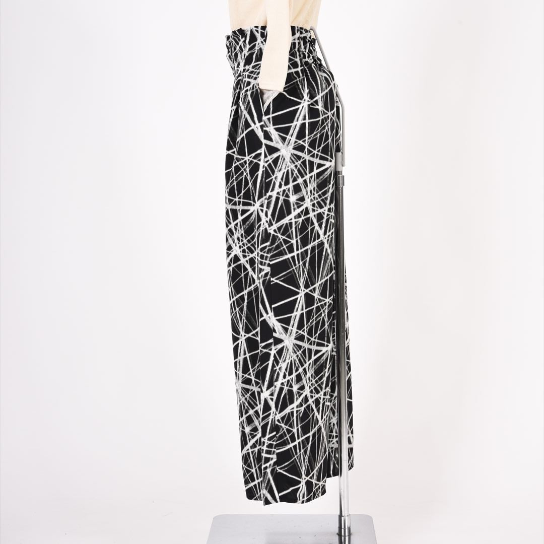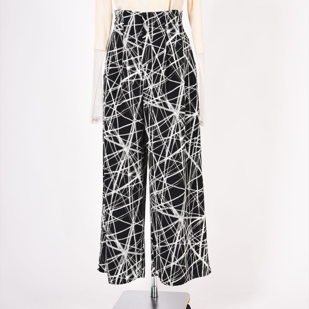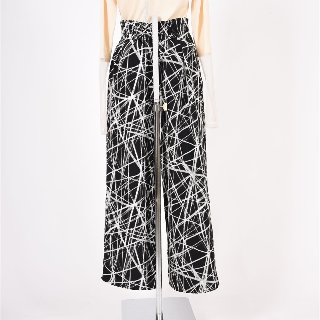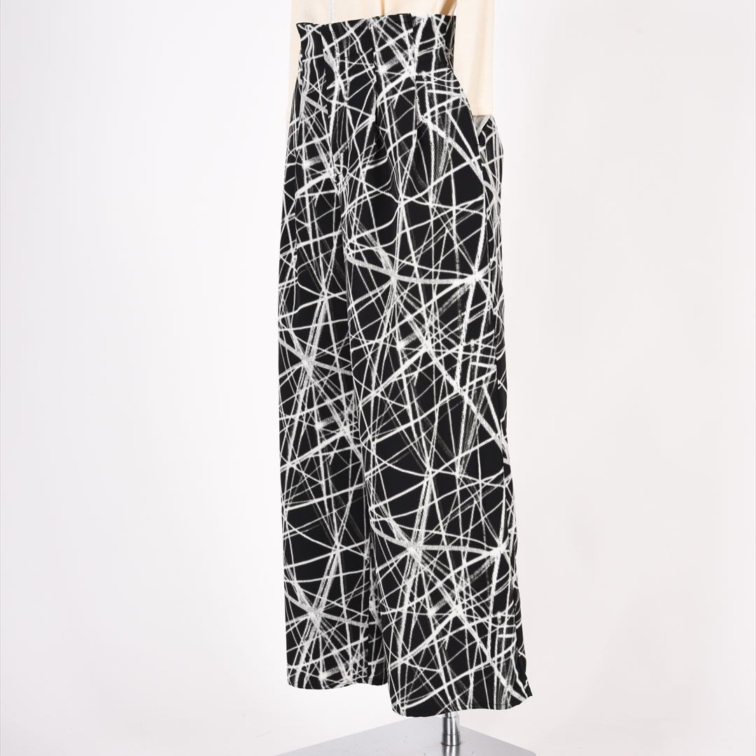 印象的な総柄でありつつモノトーンの落ち着きもあわせもつお洒落パンツ。