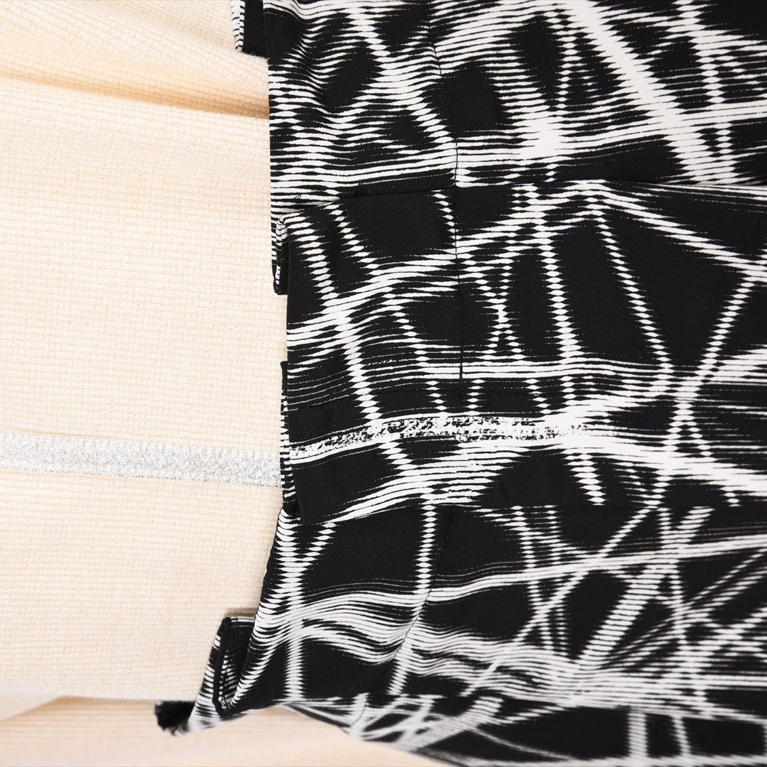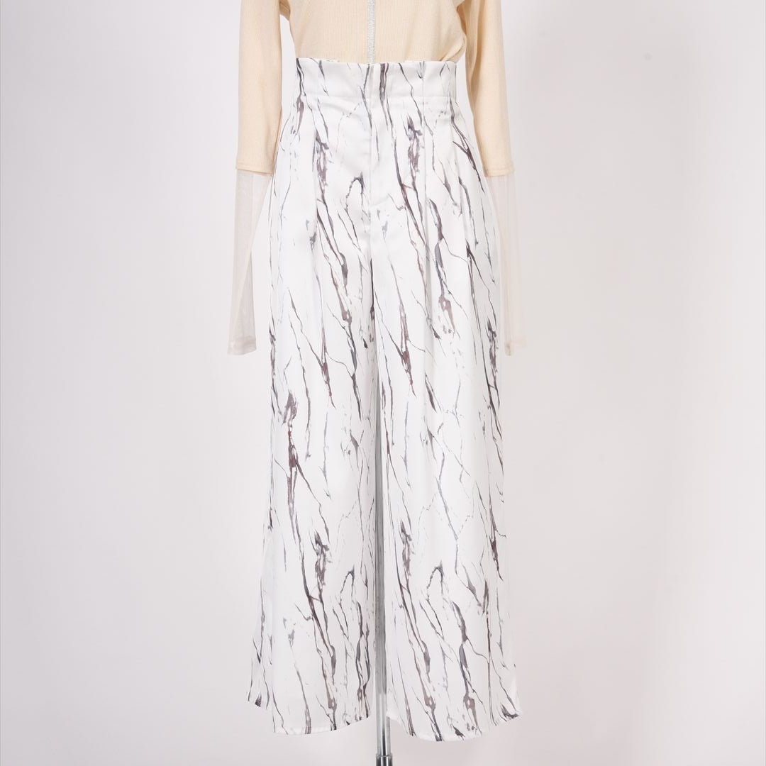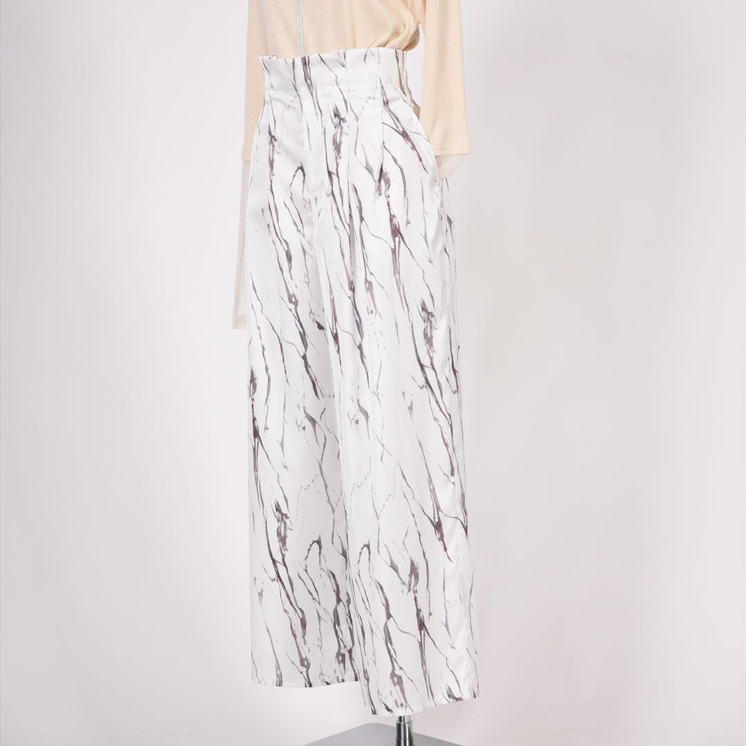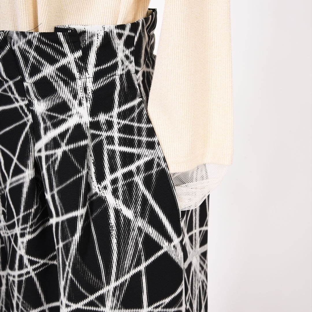 印象的な総柄でありつつモノトーンの落ち着きもあわせもつお洒落パンツ。