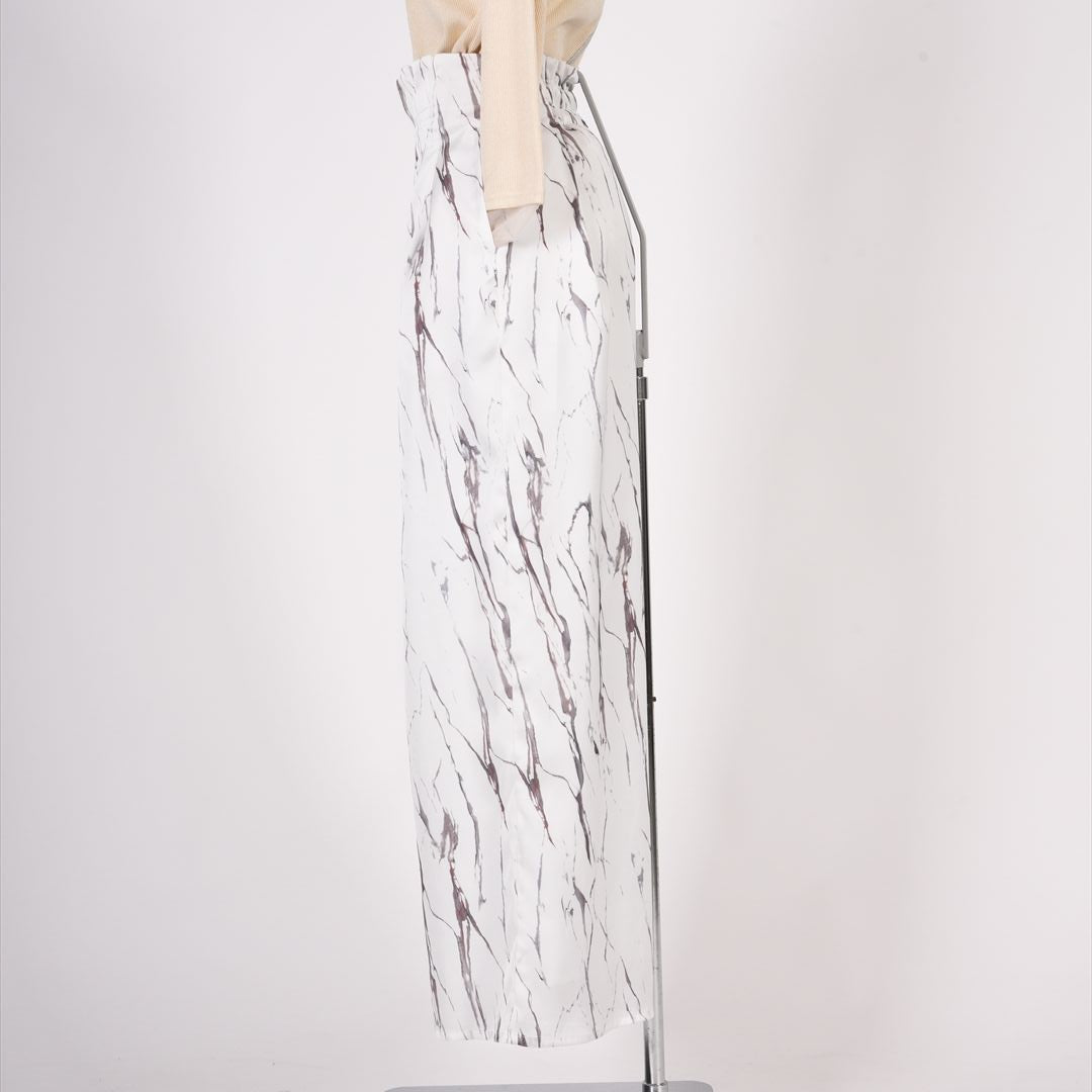 すっきりした腰まわりから裾に向かって広がるワイドシルエットが脚のラインをキレイに見せてくれます。