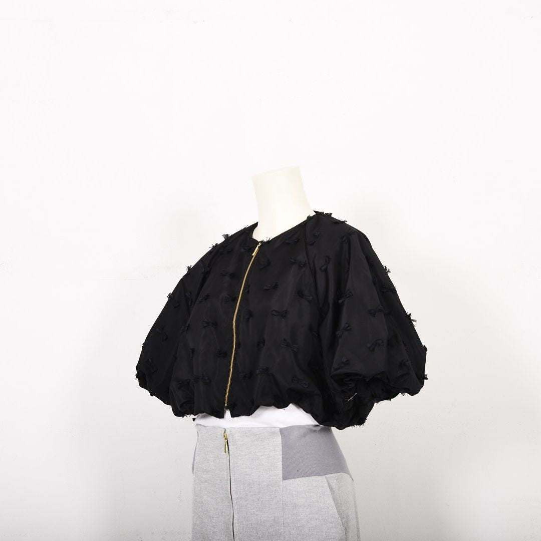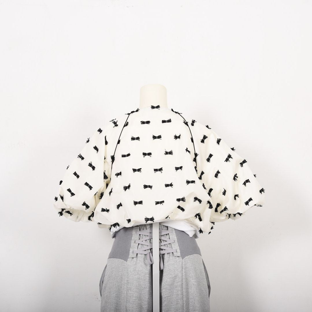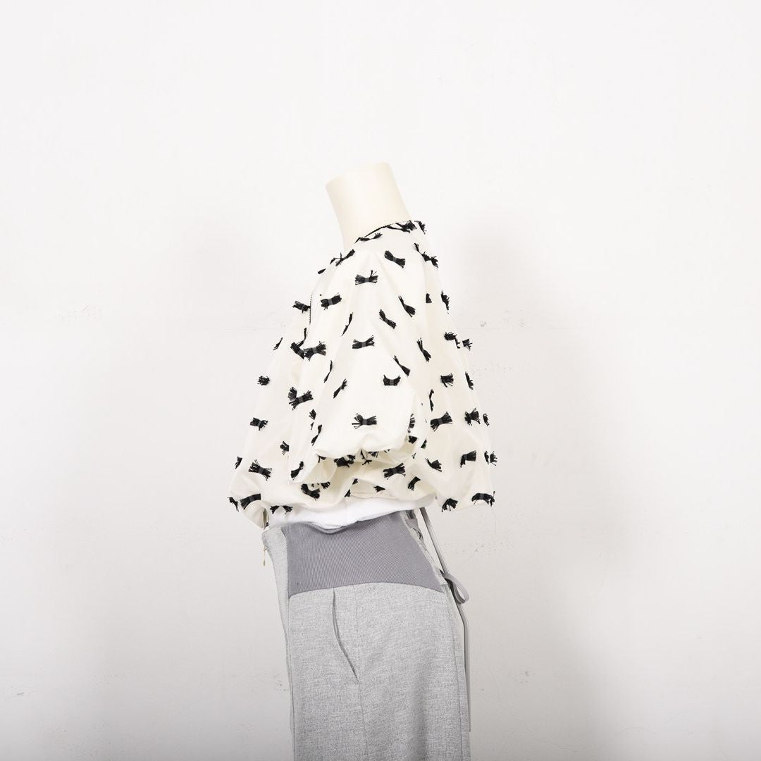 ラグランスリーブでゆとりのあるシルエットに、裾にゴムを入れた丸いフォルムが特徴です。
