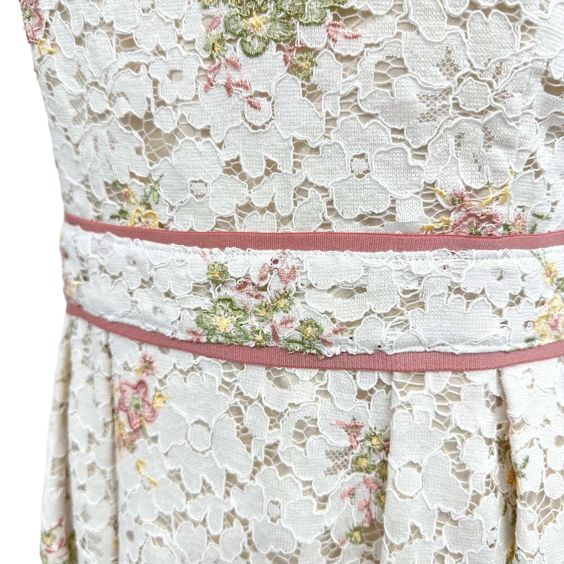 レースに花柄を施した上品で可憐なワンピースが登場です。