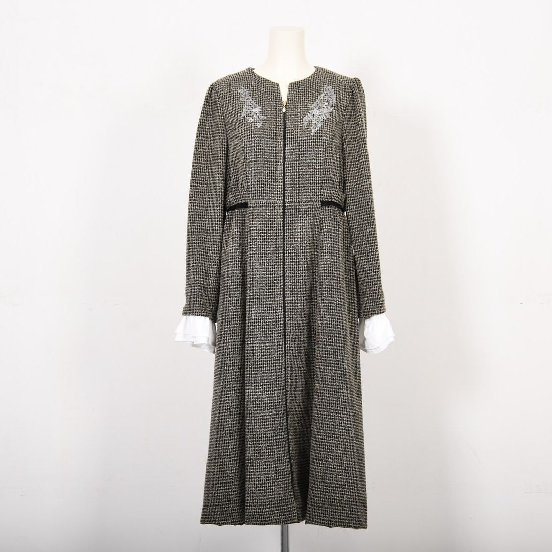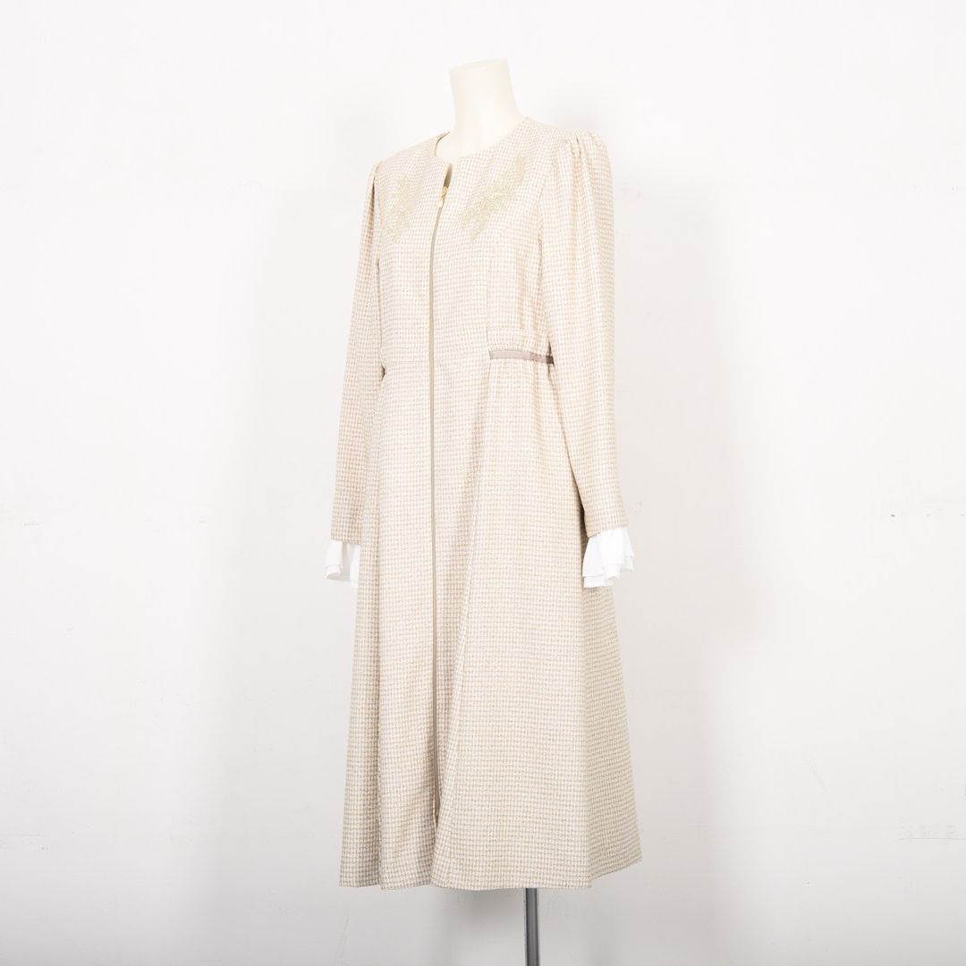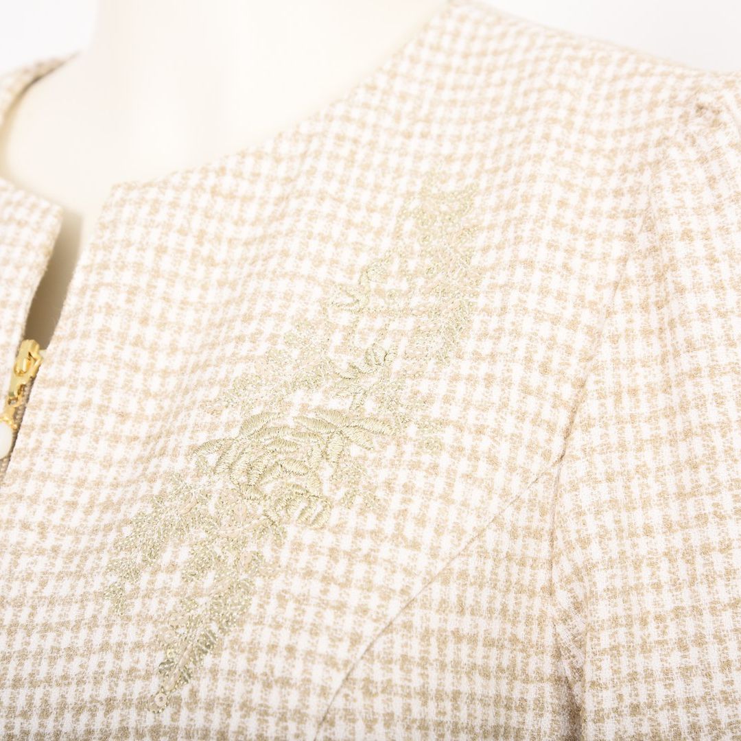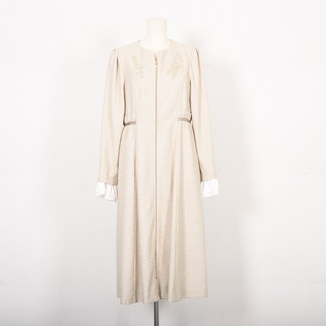 表地:ポリエステル70%,レーヨン30%、別布:ポリエステル100%、刺繍糸:ポリエステル78%,ナイロン22%、装飾:スパンコール使用、裏地:複合繊維ポリエステル54%,ポリエステル46% |
