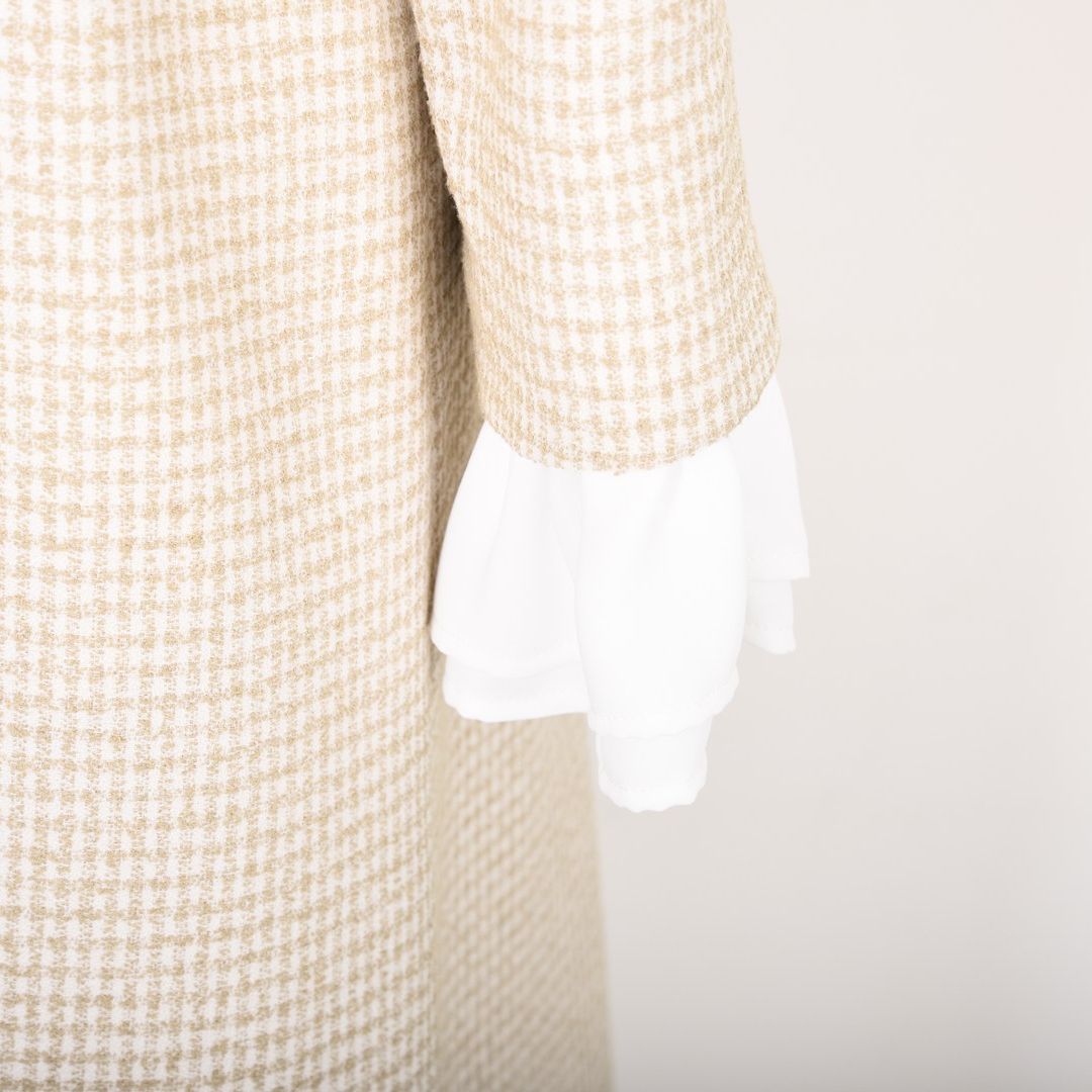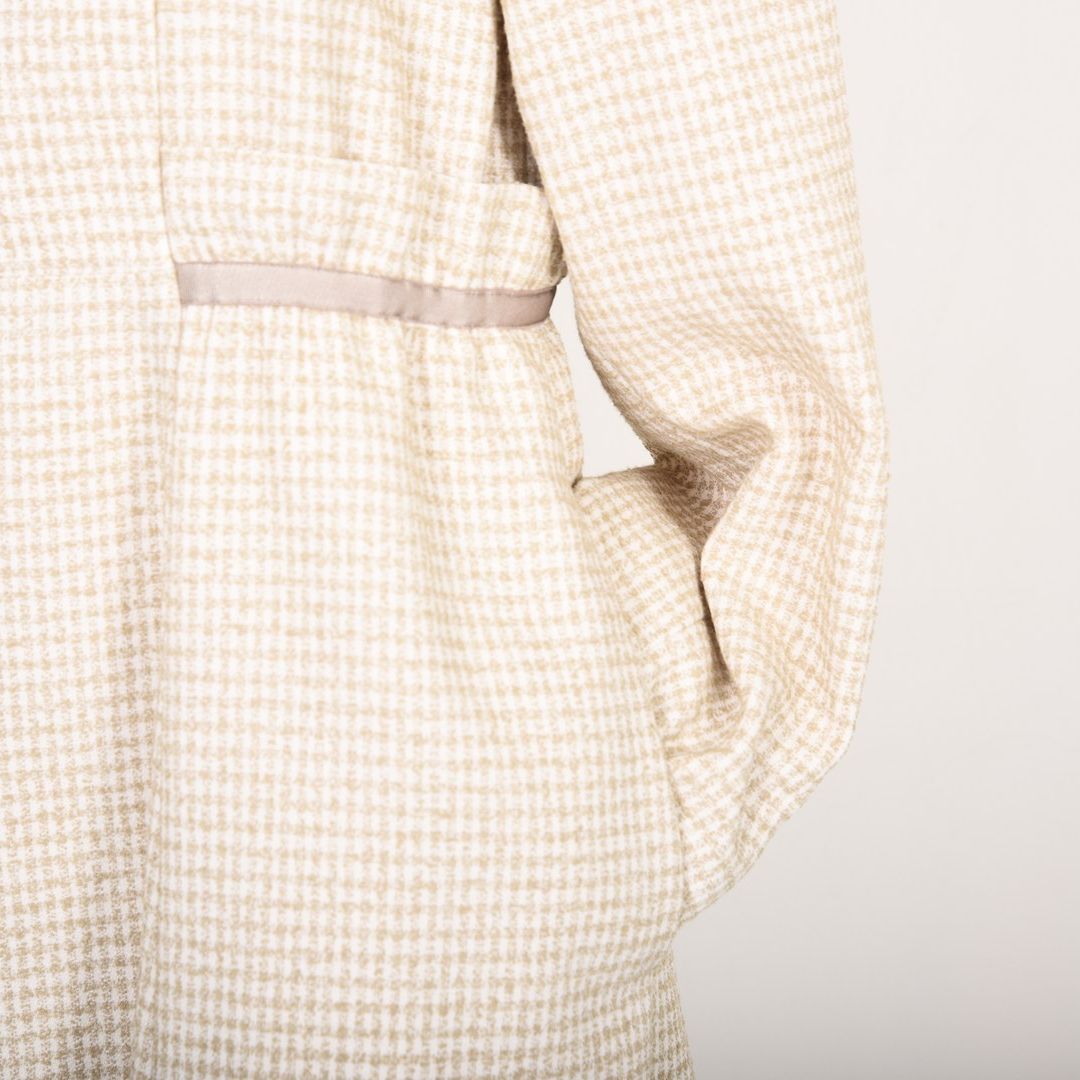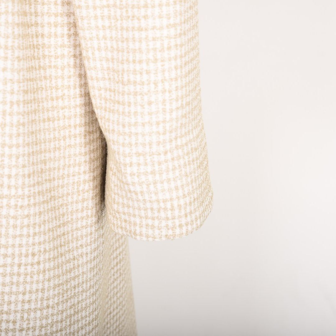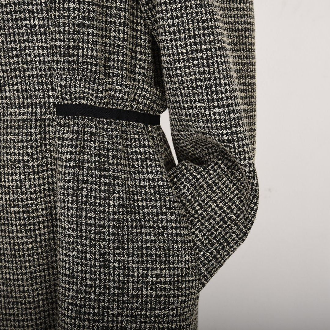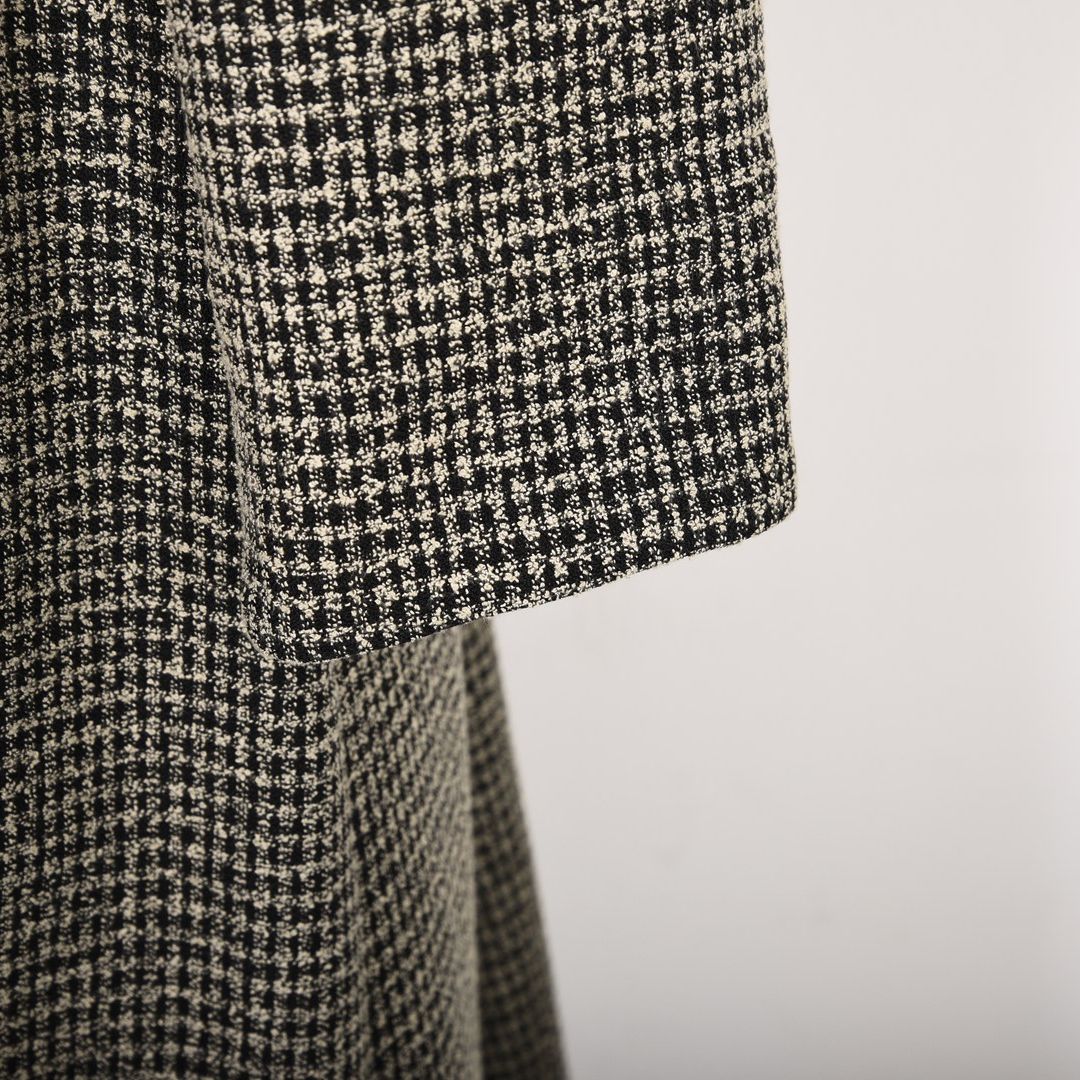 リサイクルポリエステル糸を部分的に使用し、環境と人の未来を考えたサスティナブルファブリックです。ブークレーヤーンを使用した中肉厚のツィードライク素材です。ソフトな風合いと程よい反発感がありブークレーヤーンによるポコポコとした立体的な表情感が華やかな印象を与えます。