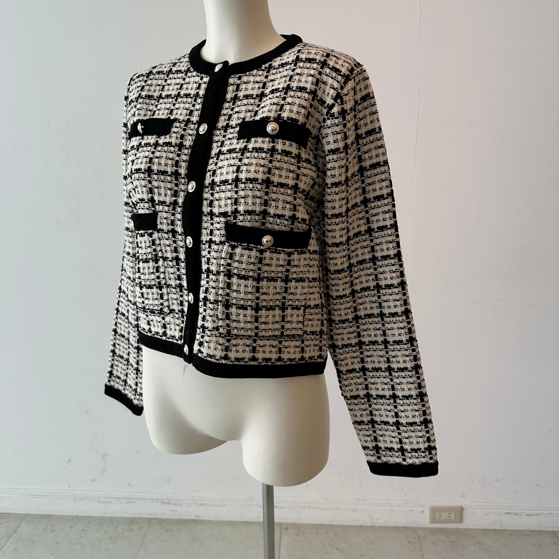 カーディガン感覚で羽織れるニットツイードジャケット。