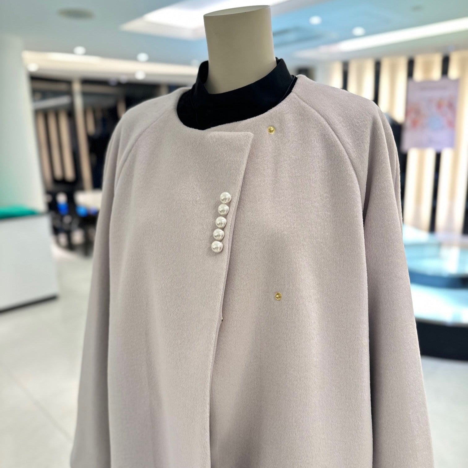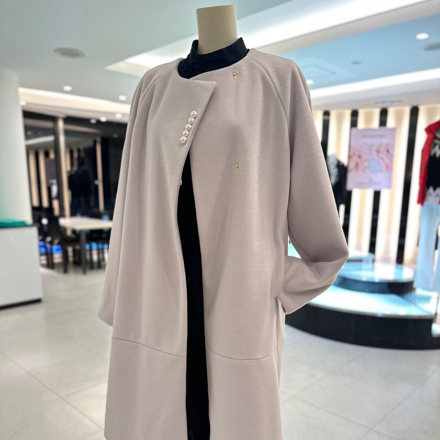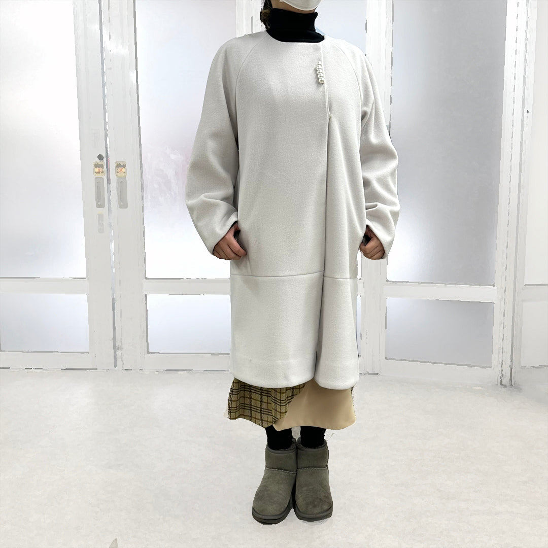 スカートでもワンピースでも、上品にまとまります。