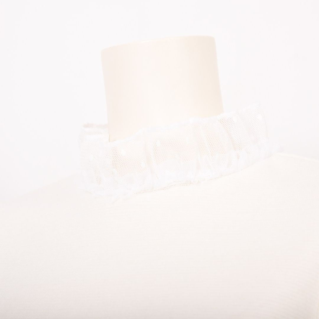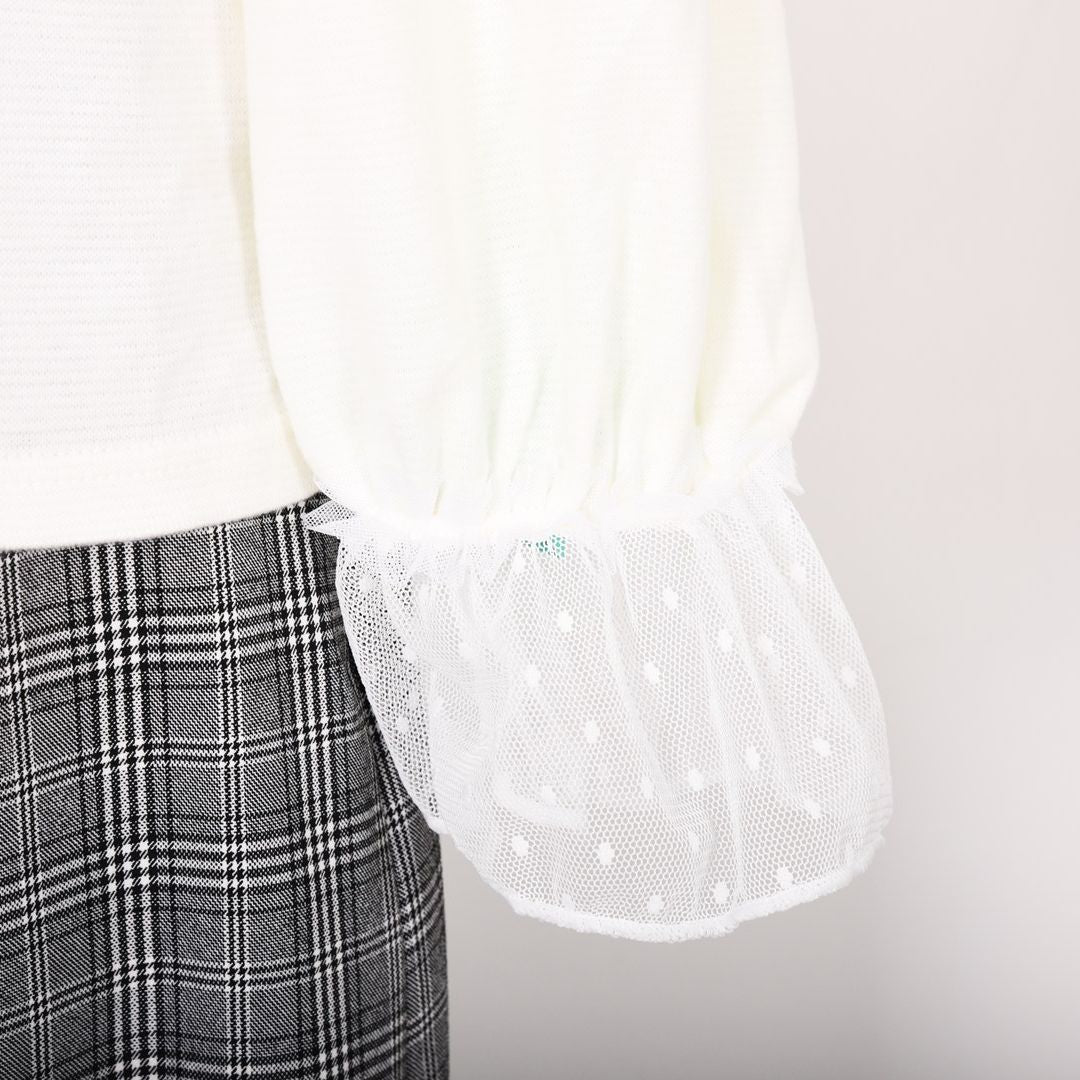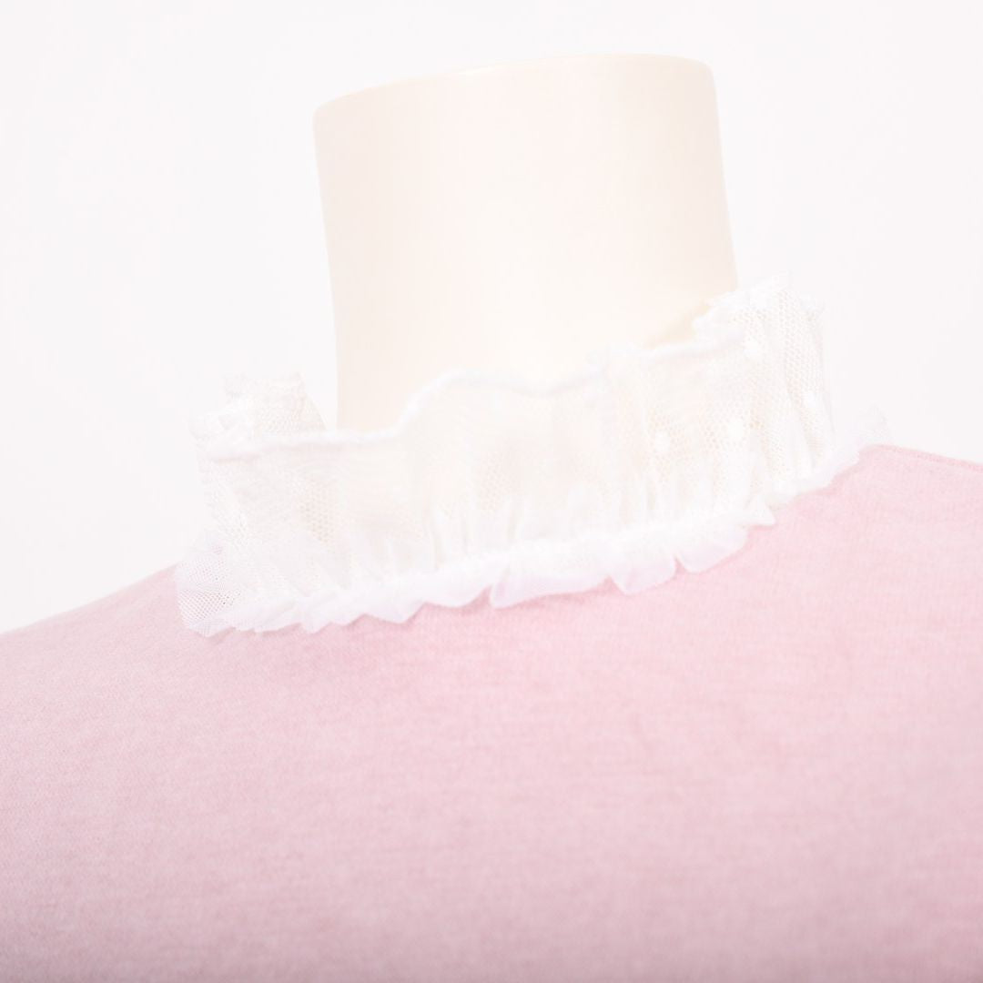カーディガンやジャケットの衿元や袖口からチュールをのぞかせるレイヤードスタイルにも◎