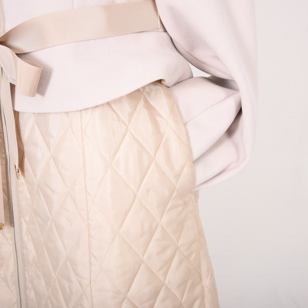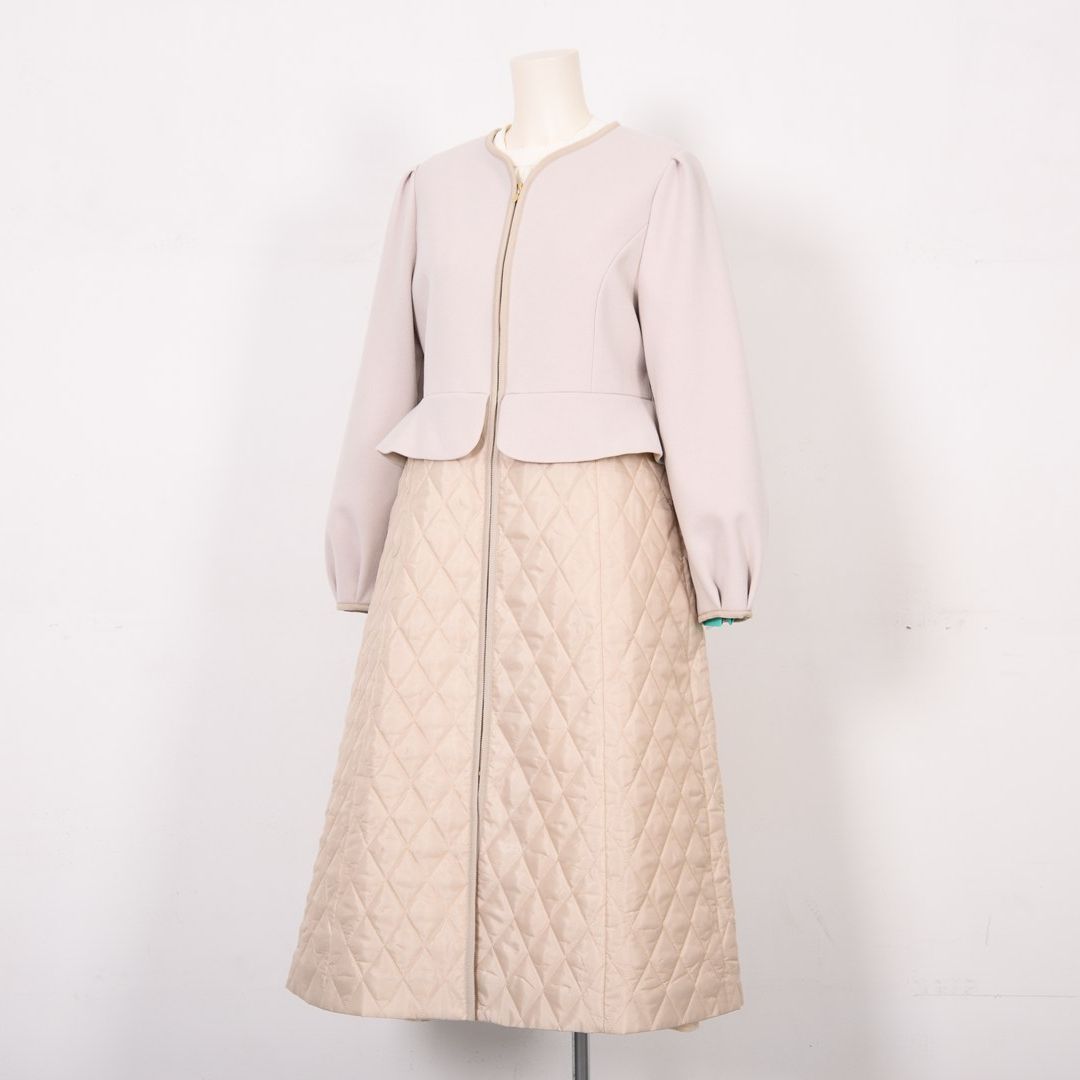 <スカート部分>不動の人気で王道のダイヤキルト素材。中綿は程よい厚みで保温性のある60gを使用しています。軽くて丈夫で、ふんわりとした優しい肌触りに仕上がっています。
