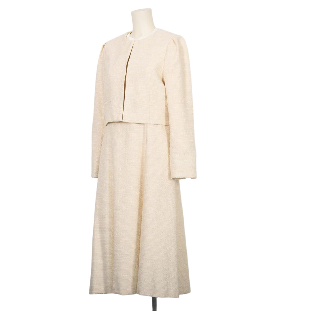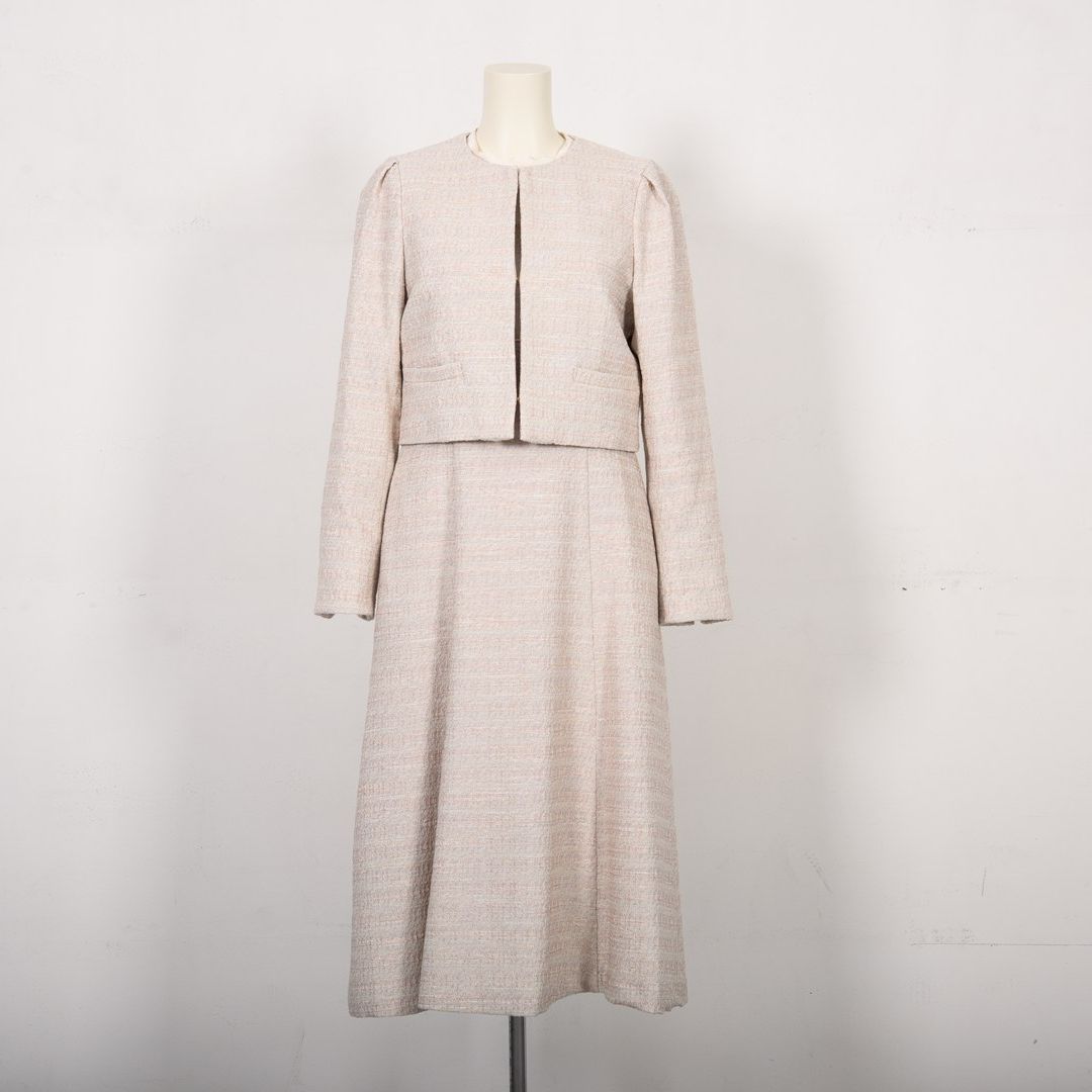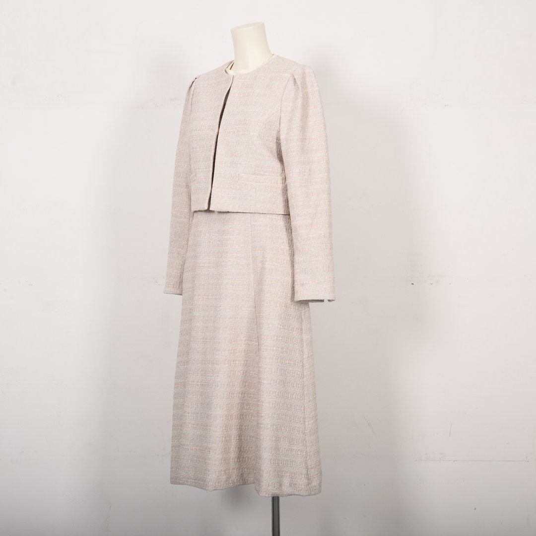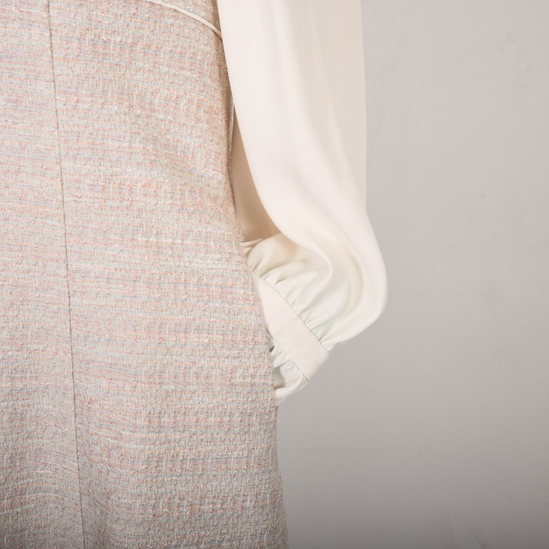 優しい配色のカラーツイード生地です。ややストレッチ性があり中肉厚の軽やかな素材です。