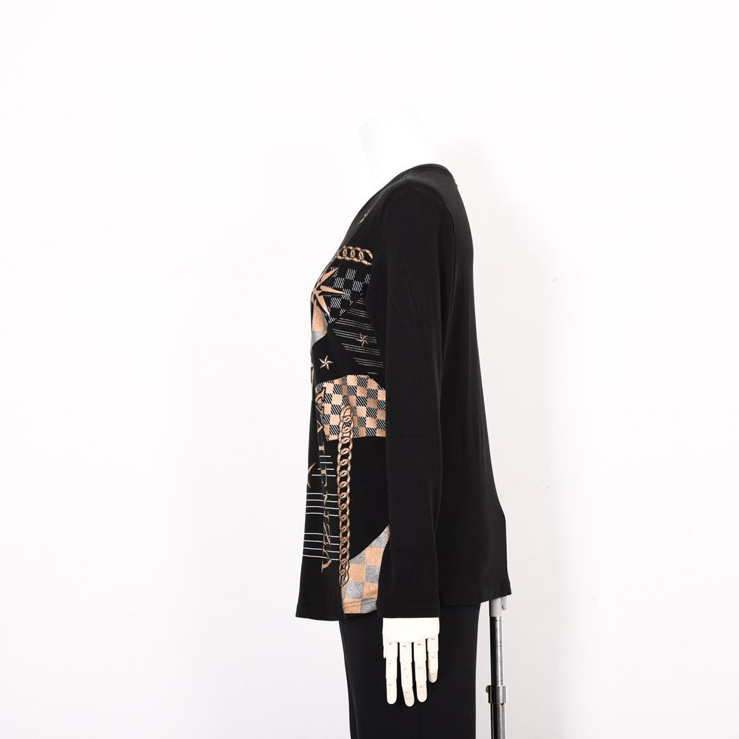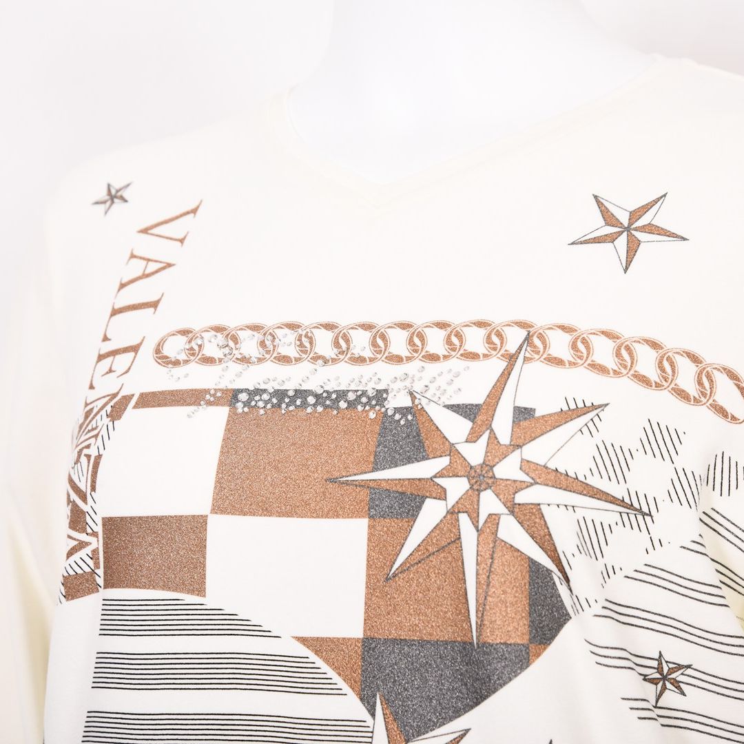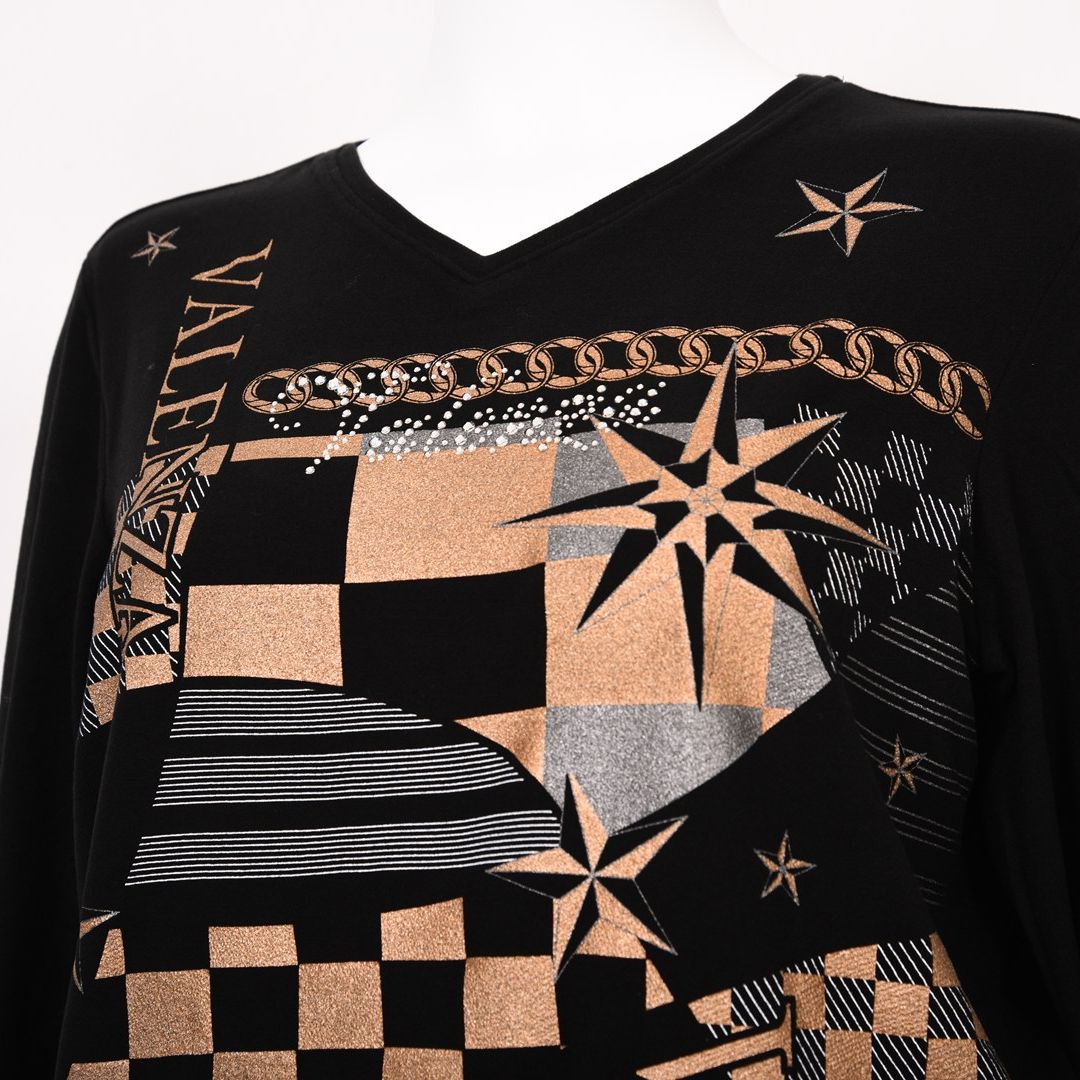 【吸湿発熱】サクラウォーム起毛ベア天 幾何学 Vネックカットソー VALENZA 5152710