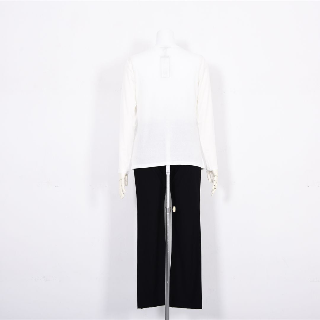 ベーシックなシルエットですね。身幅も着丈もバランスが取りやすいです。着心地もやわらかくてノンストレスでした。着丈はヒップが隠れるくらい。袖丈は甲にかかるくらい。(158cm/40号)