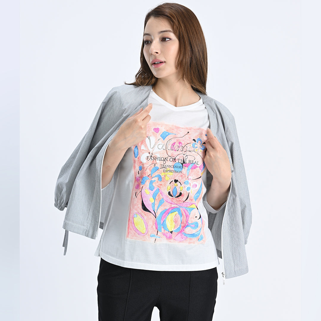 【Lサイズ】【デザイナー手描き】アーティスティックプリント カットソー VALENZA 5552526
