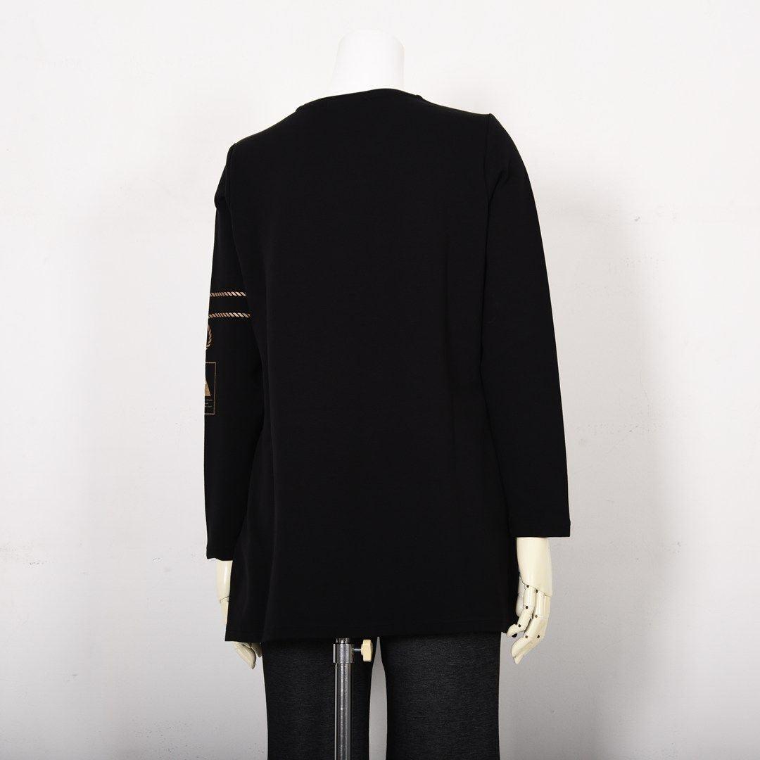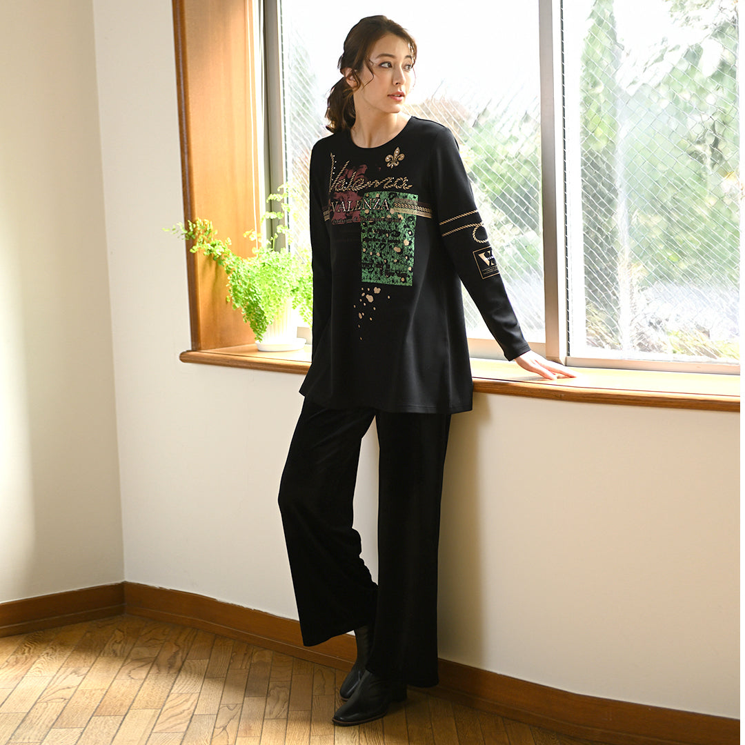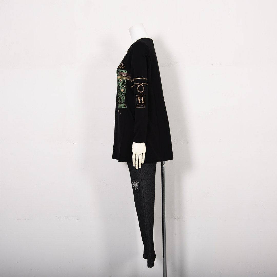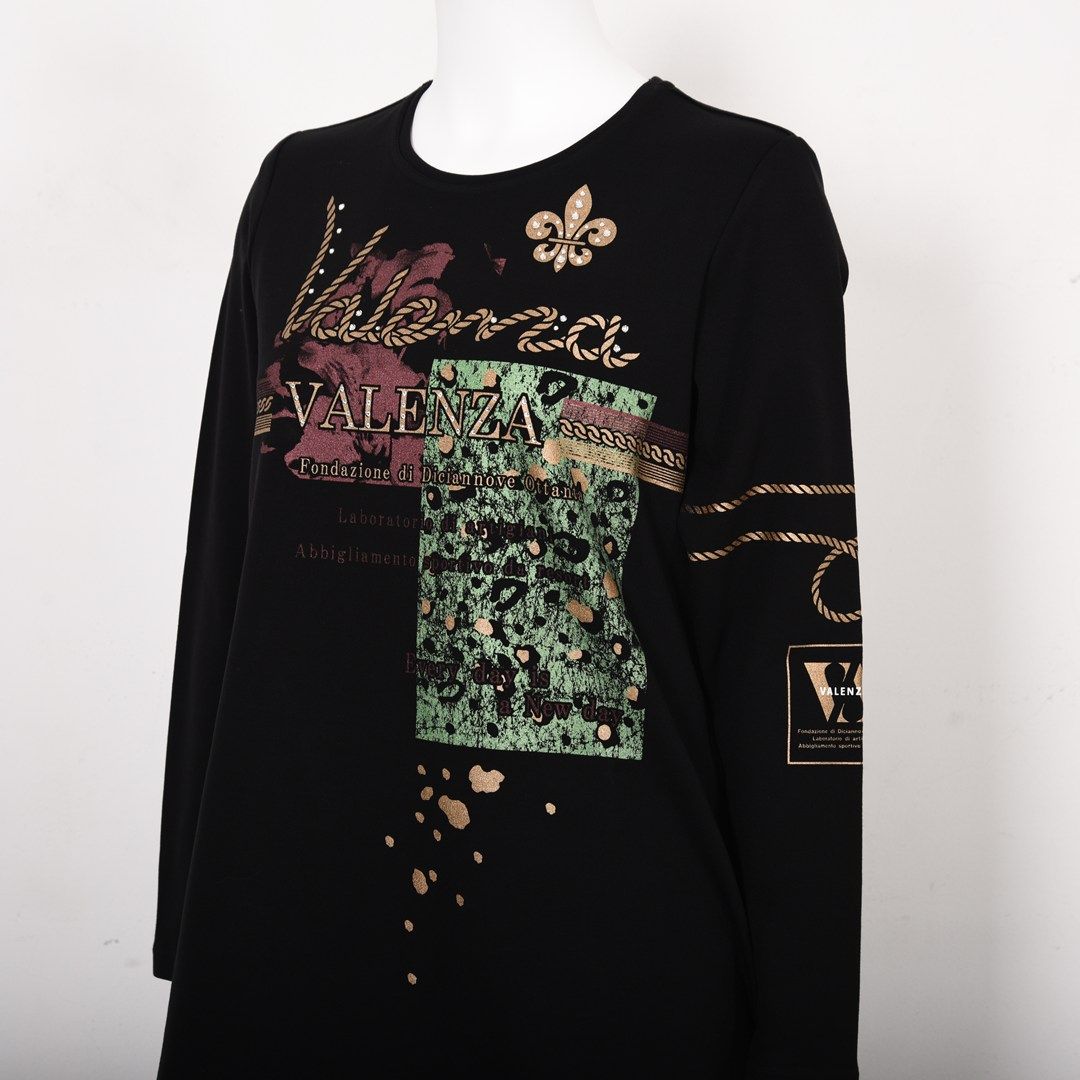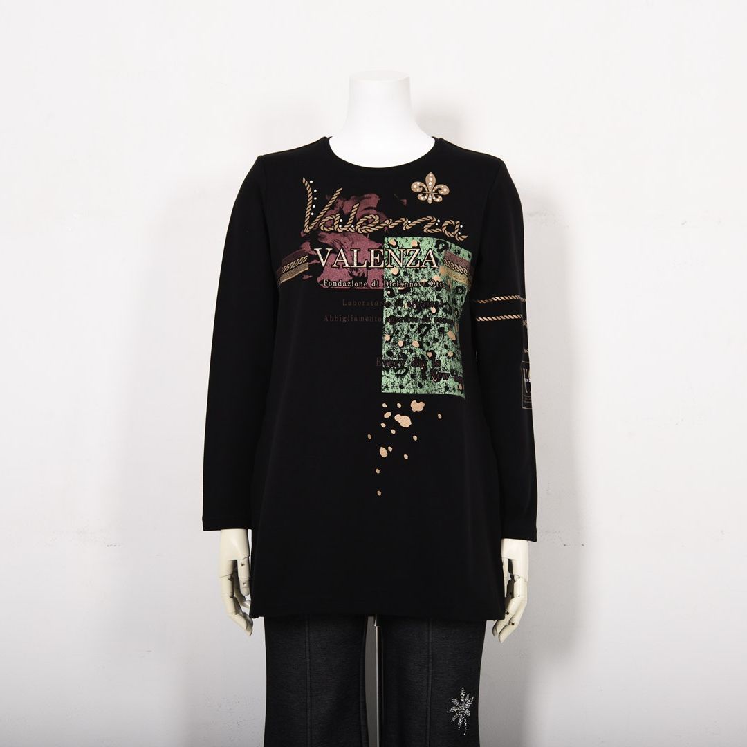 【Lサイズ】【保温】【吸湿発熱】箔プリント チュニック丈カットソー VALENZA 5552707