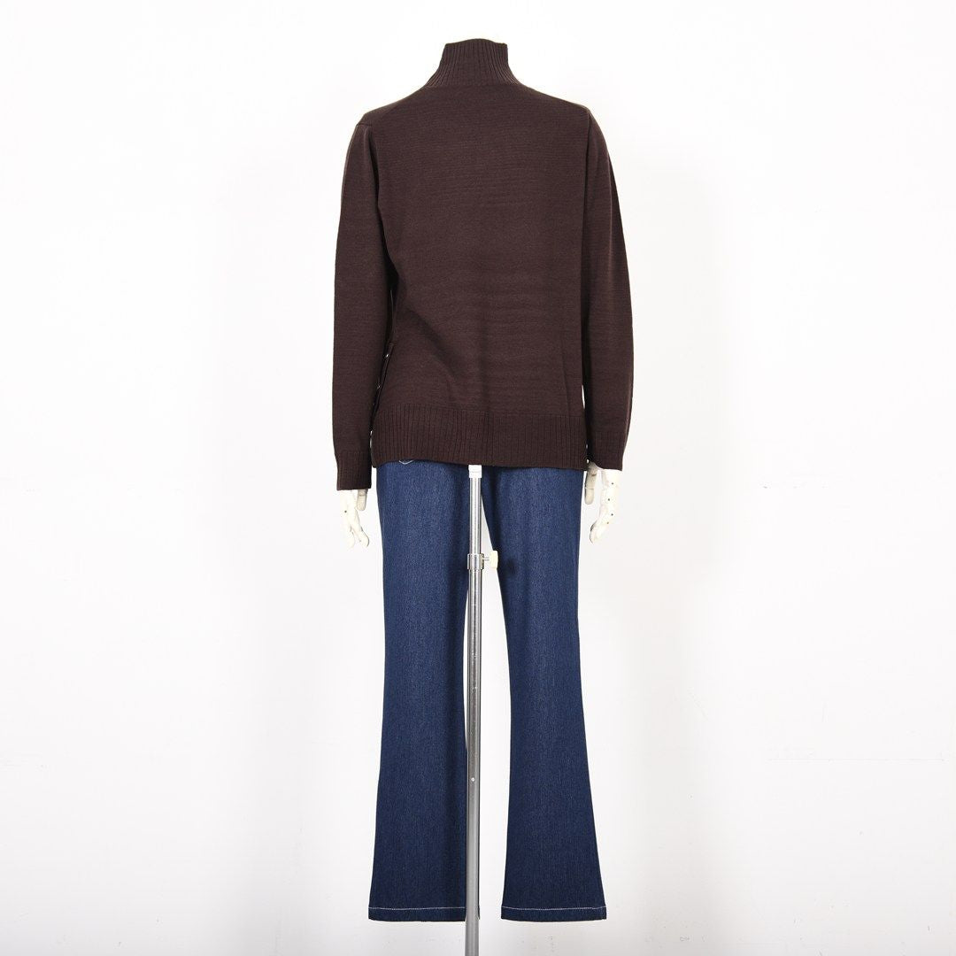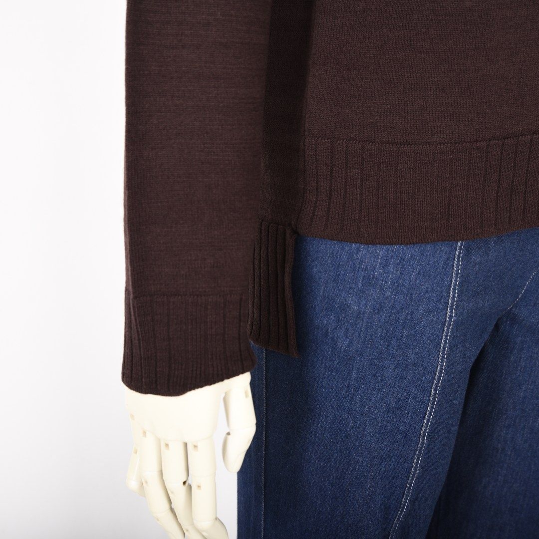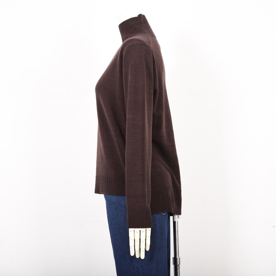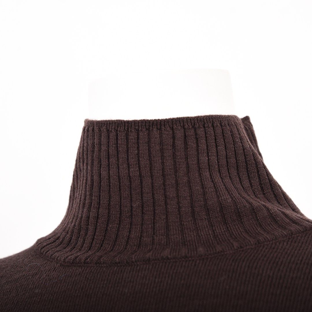 首まわりが詰まりすぎていないのでハイネックが苦手な方でも着やすいのでは…と思います。チクチクしない肌あたりの良いやわらかさでした。着丈はヒップが隠れるくらい。袖丈は甲にかかるくらい。(158cm/40号)