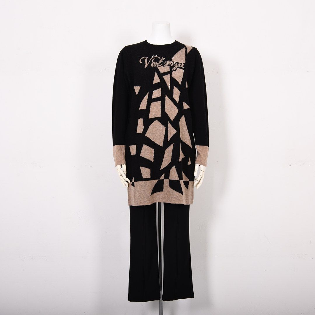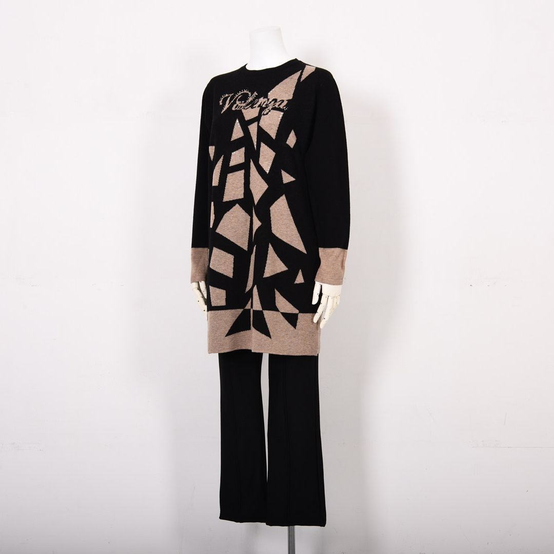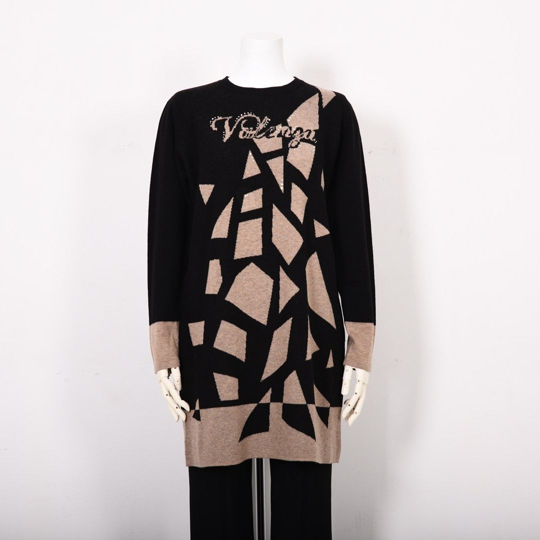 【Lサイズ】アニマル風 幾何学柄 ロングニット VALENZA 5553701