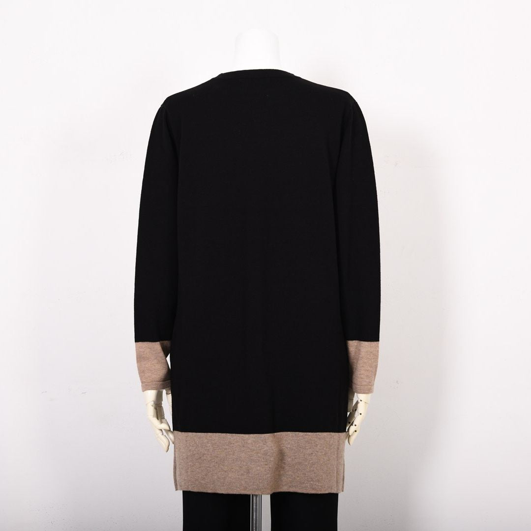 安心のロング丈ですね。体型カバーできるのが嬉しいです。毛50%の暖かさも感じます。インナーも着れそうなサイズ感なのでレイヤードも楽しめると思います。着丈はヒップがすっぽり隠れるくらい。(158cm/40号)