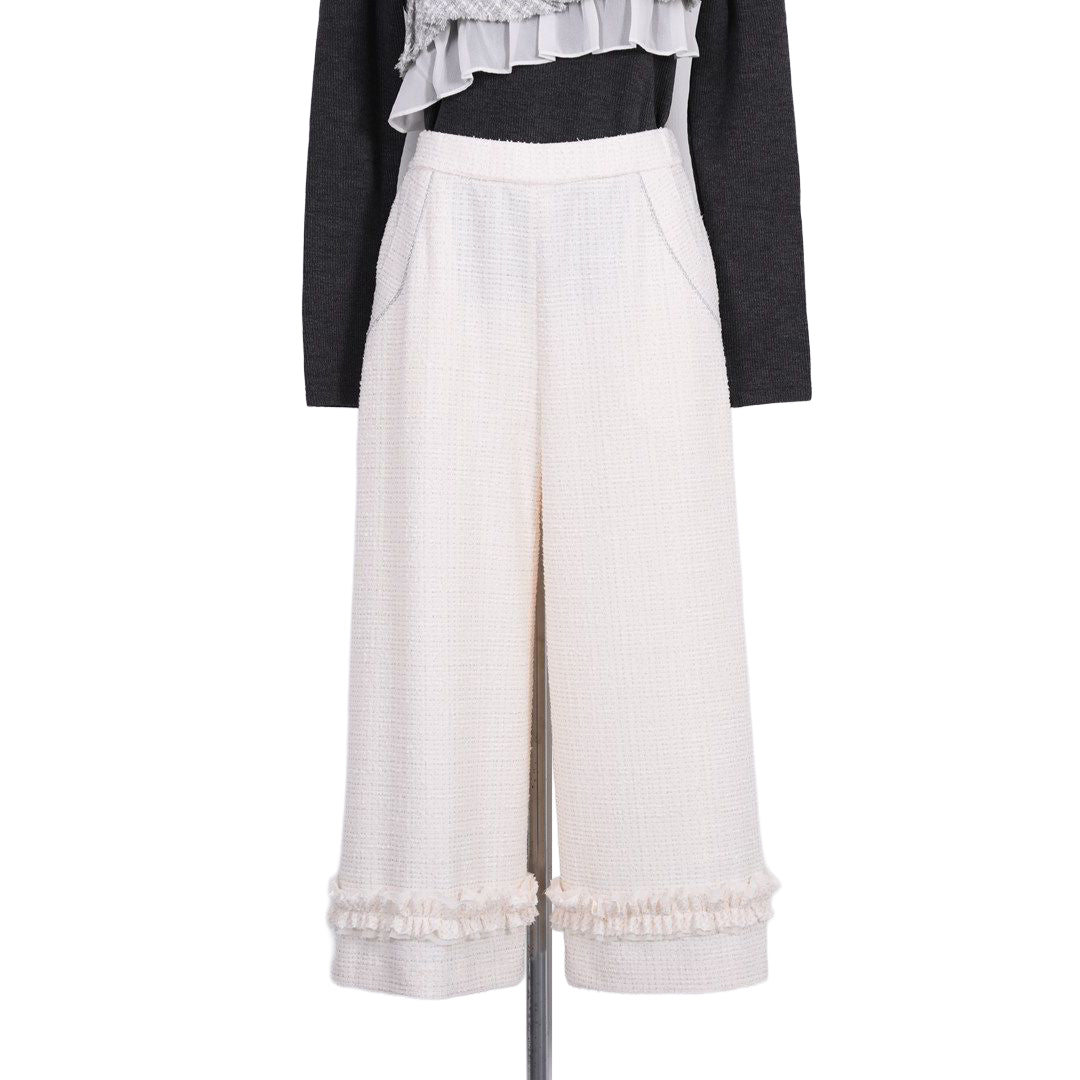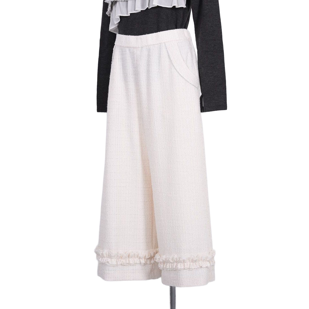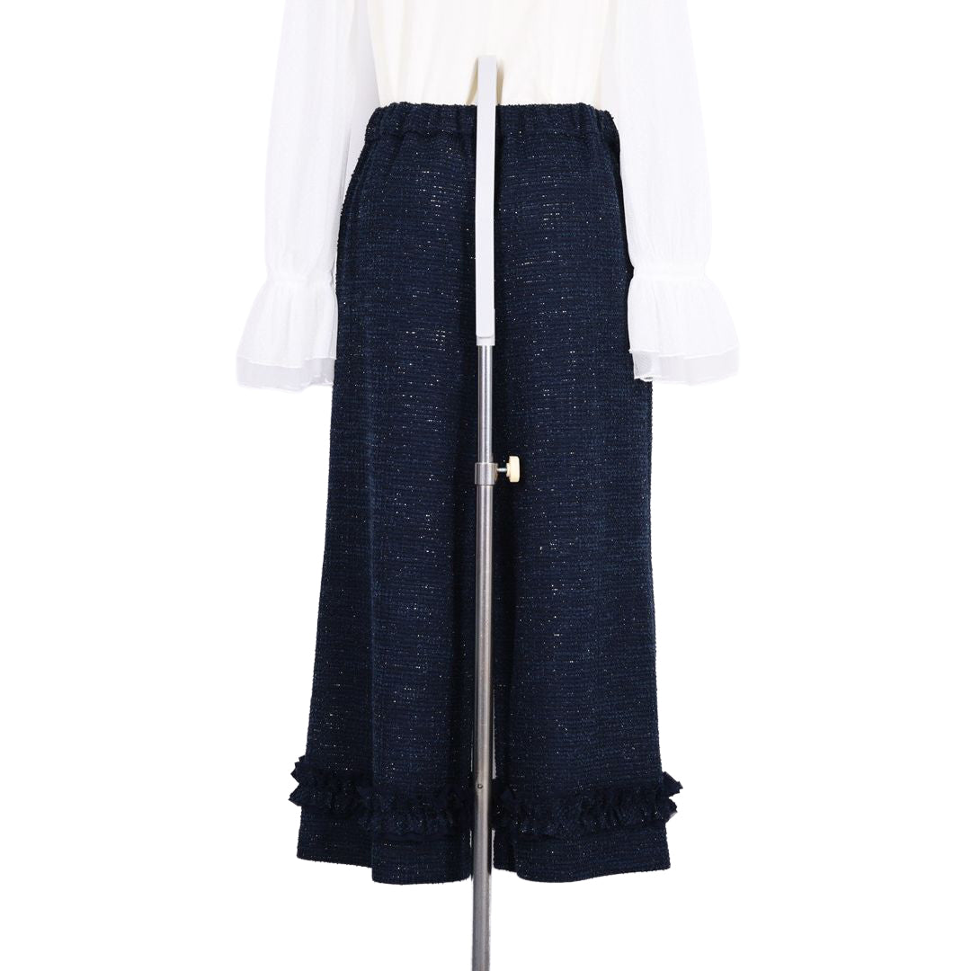「気軽にドレスアップ」ファンシーツィード調のジャージ素材が登場。ジャージならではのストレッチ性で上品さと快適さを兼ね備えた極上の素材となっています。丁度良い肉感により、軽くてさらりと落ち感のある綺麗なシルエットを演出。さりげない表面感と光沢感で“今っぽさ”を表現。(ラメファンシージャージ)
