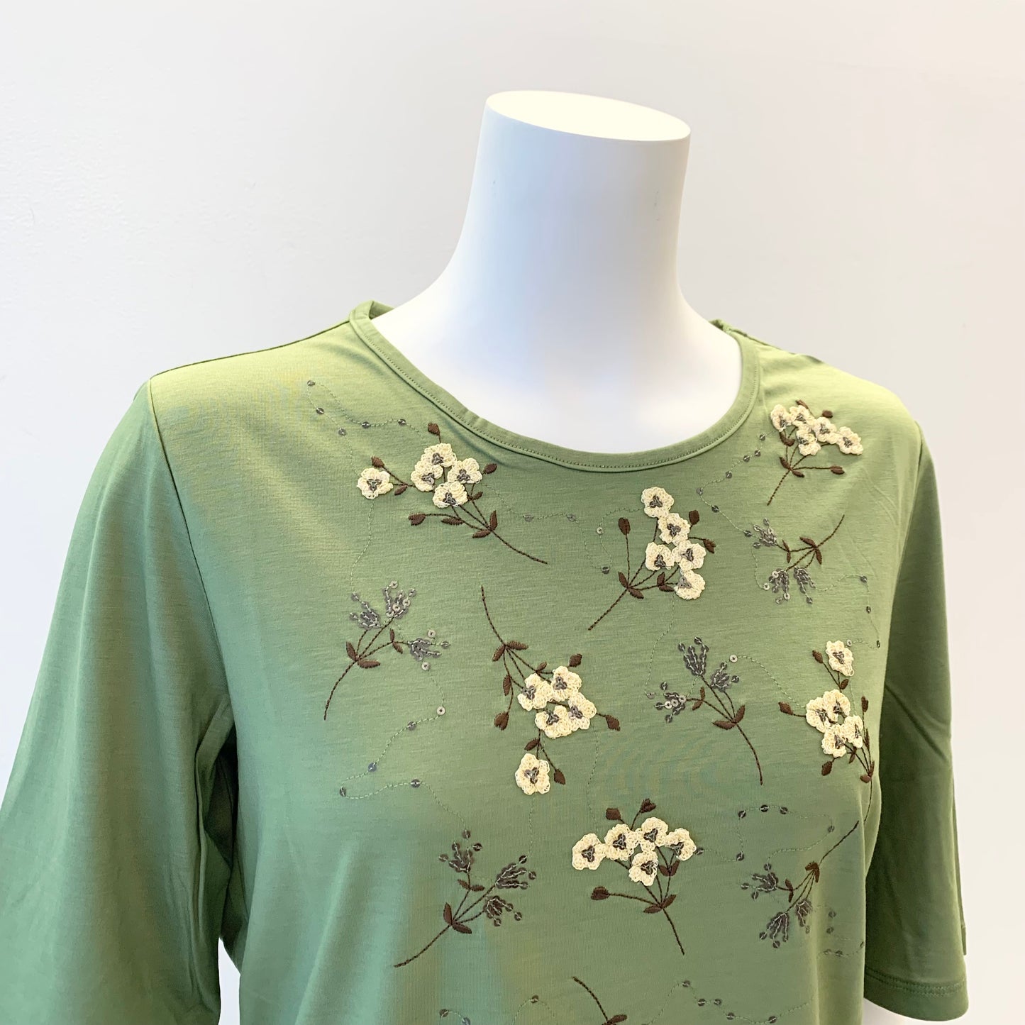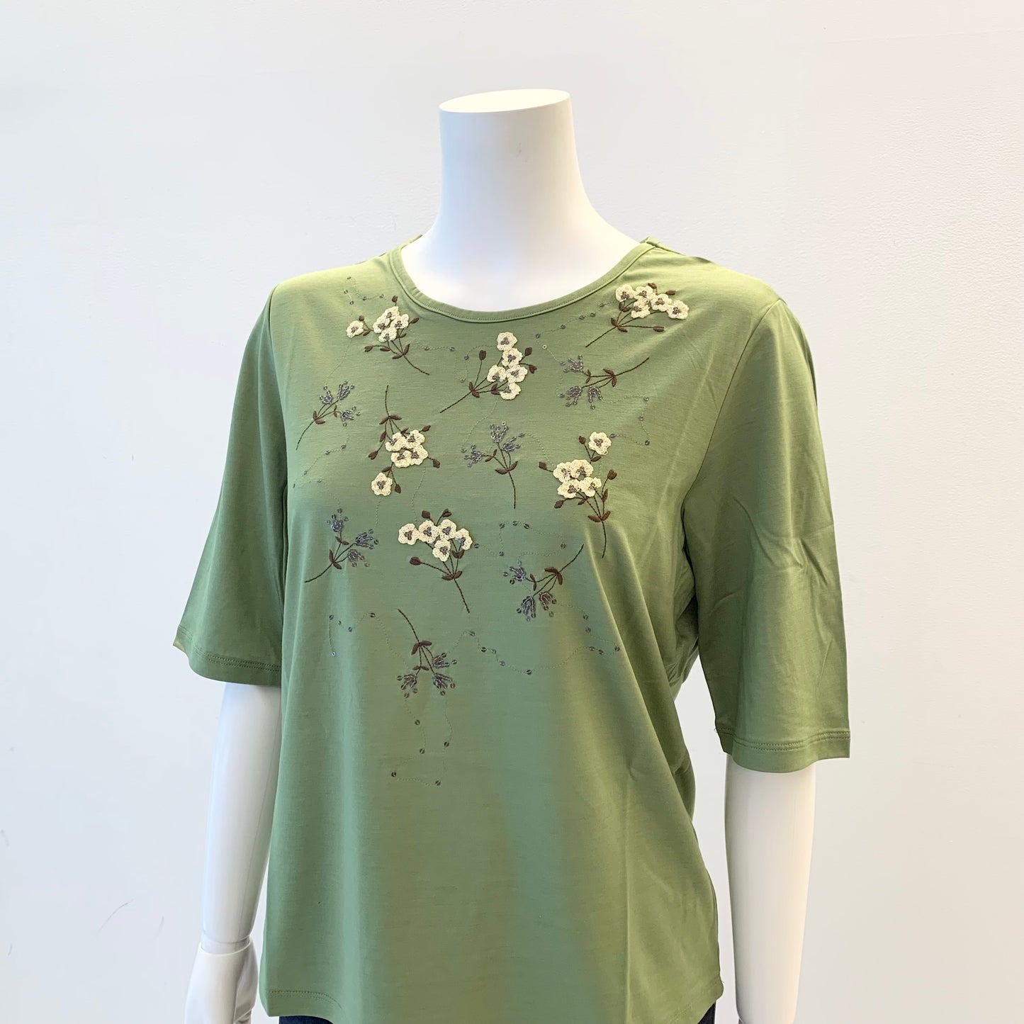 【OUTLET】五分袖 花刺しゅうカットソー MIMO MODA 2542500