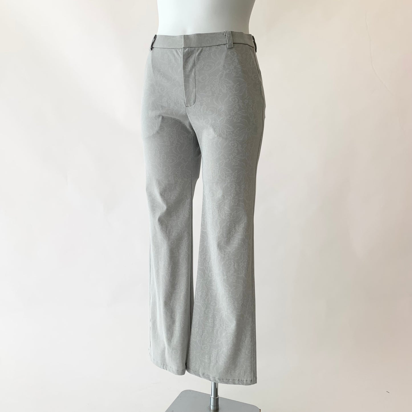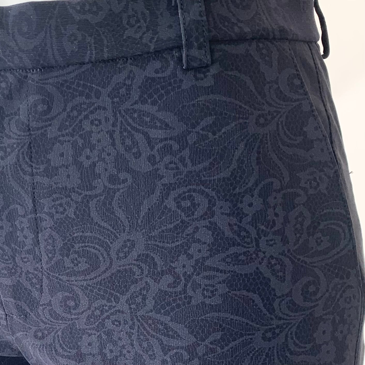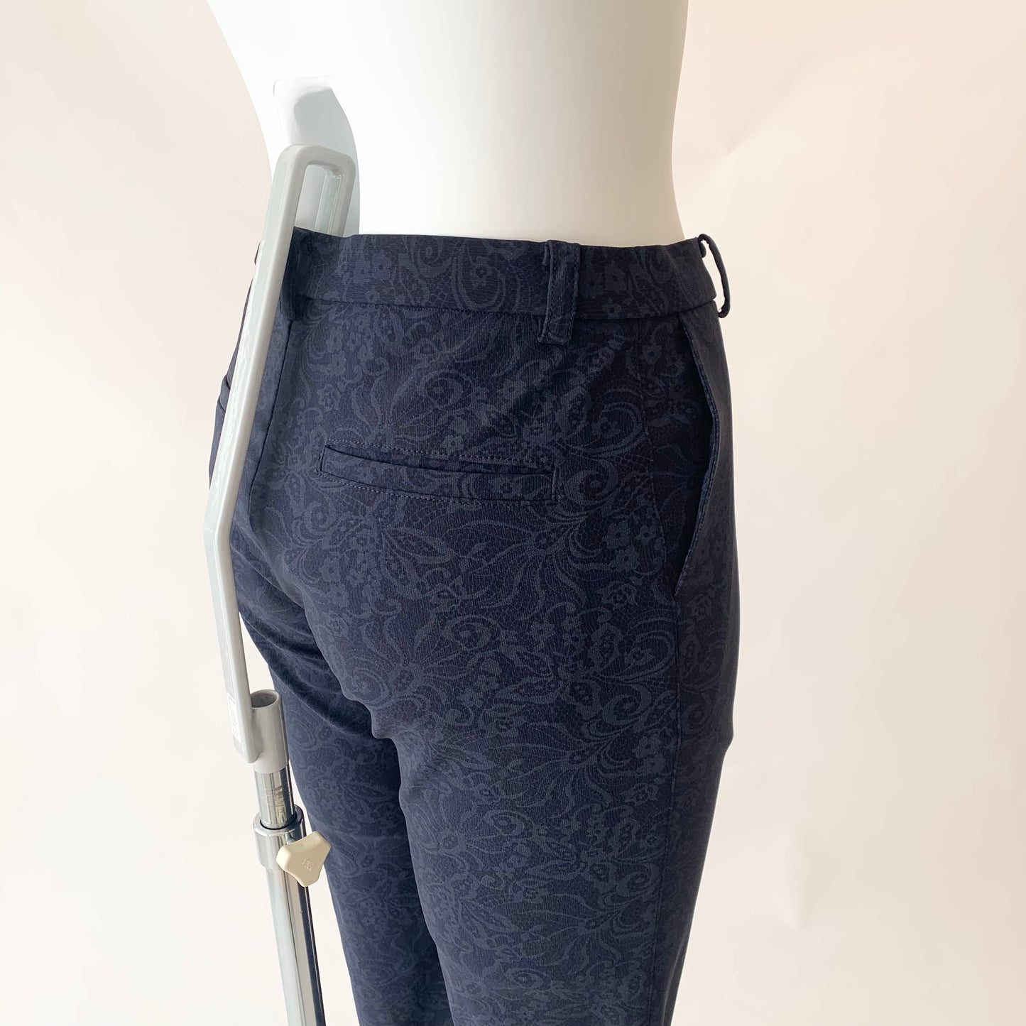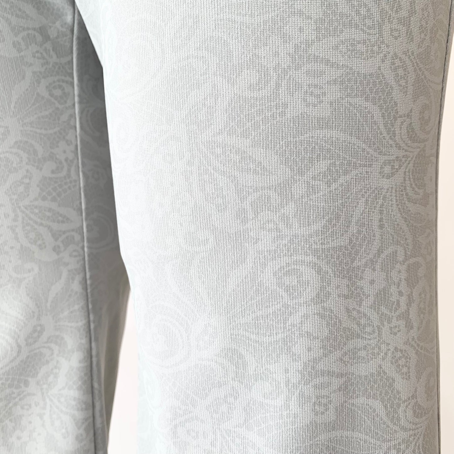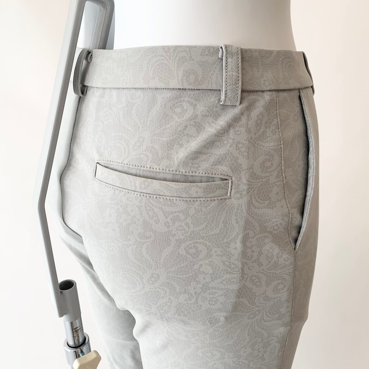 花柄プリントが目を惹くストレートパンツ。
