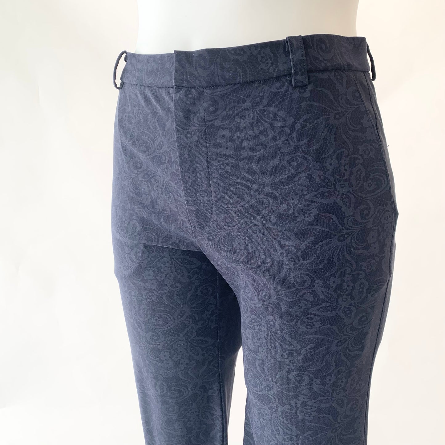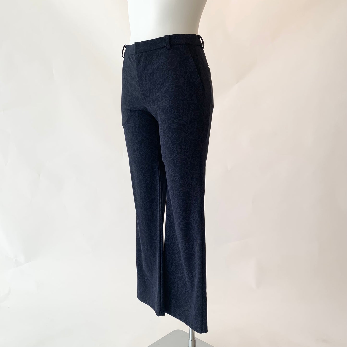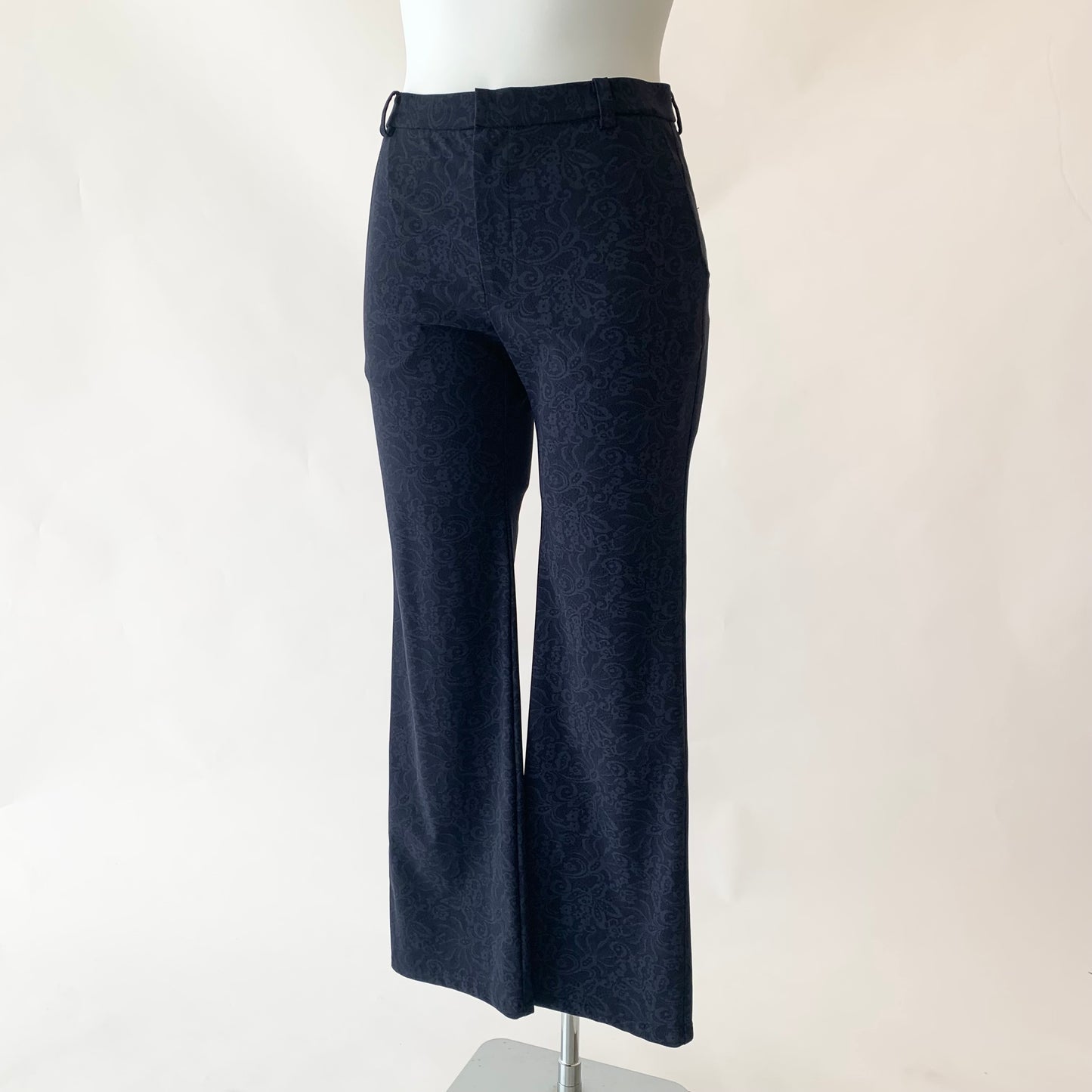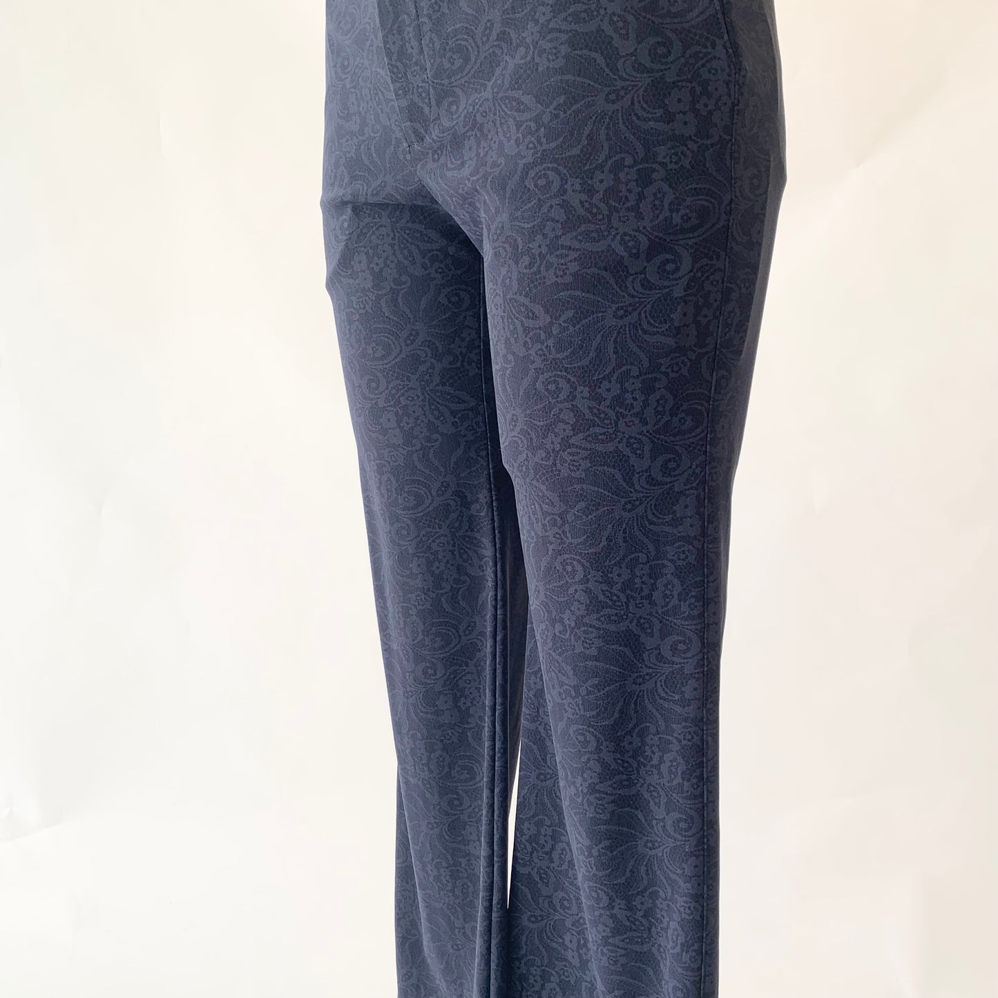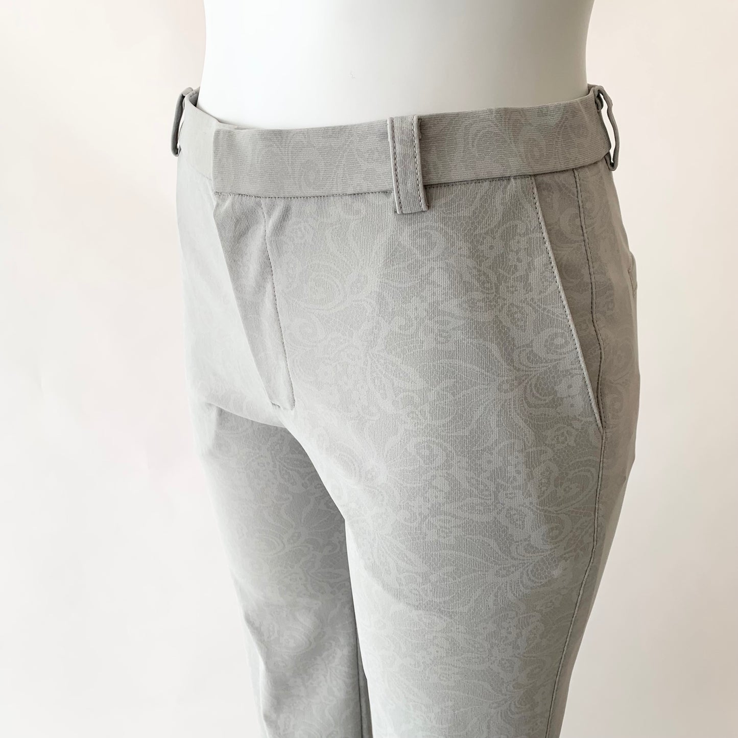 花柄プリントが目を惹くストレートパンツ。