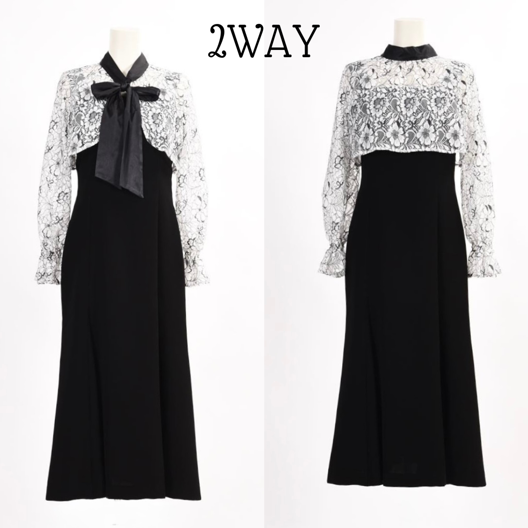 華やかなラッセルレースのボレロと上品素材のマーメイドワンピースの豪華なセットアイテム。単品でも着回せるからデイリー使いにもオススメ。ワンピースは裾のマーメイドラインが歩くたびに美しく揺れ動きウエストシェイプでスッキリ魅せも◎
