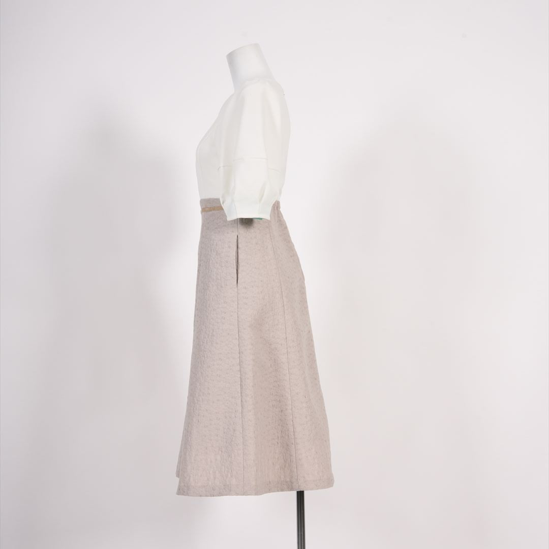 フレアラインのスカート部分が揺れ動くたび、エレガントな女性に演出。